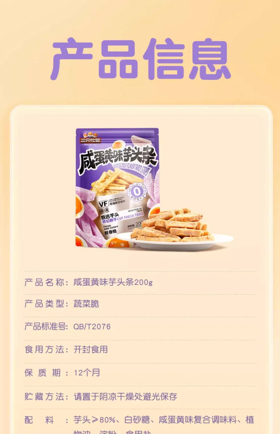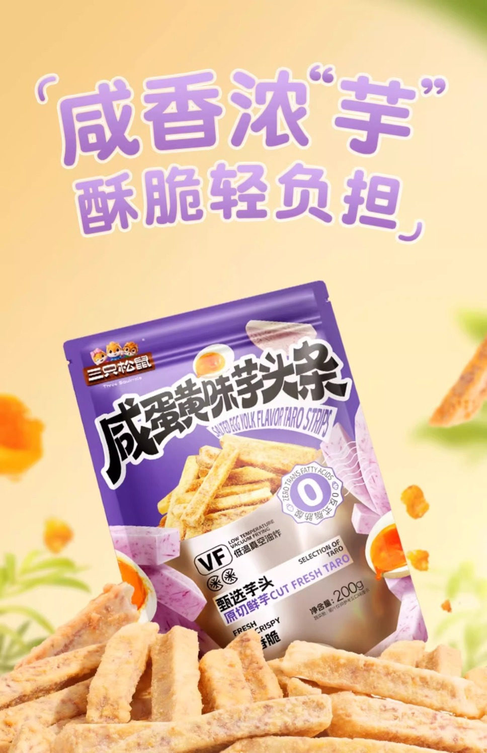Three Squirrels Salted Egg Yolk Flavored Taro Sticks 200g Daily Snack for Relaxation and Craving Relief, Crispy Snack for Watching Shows