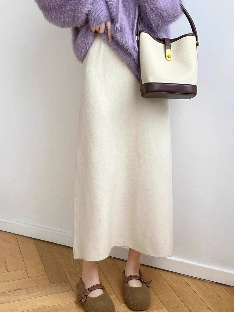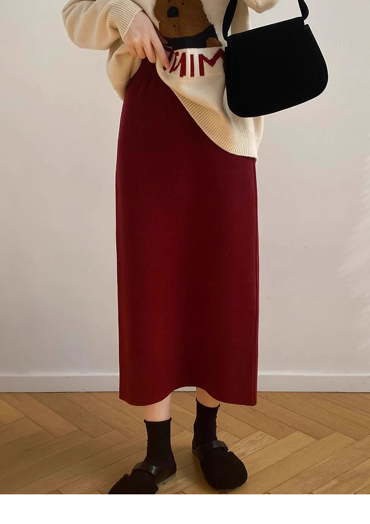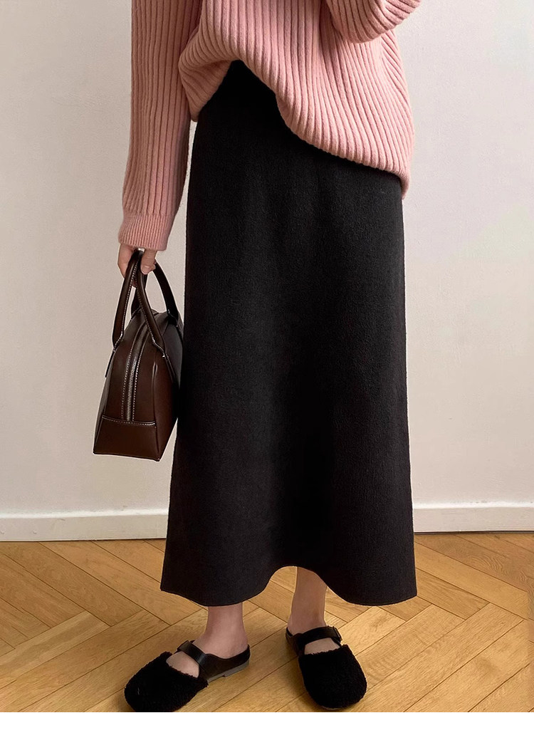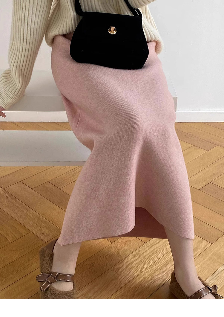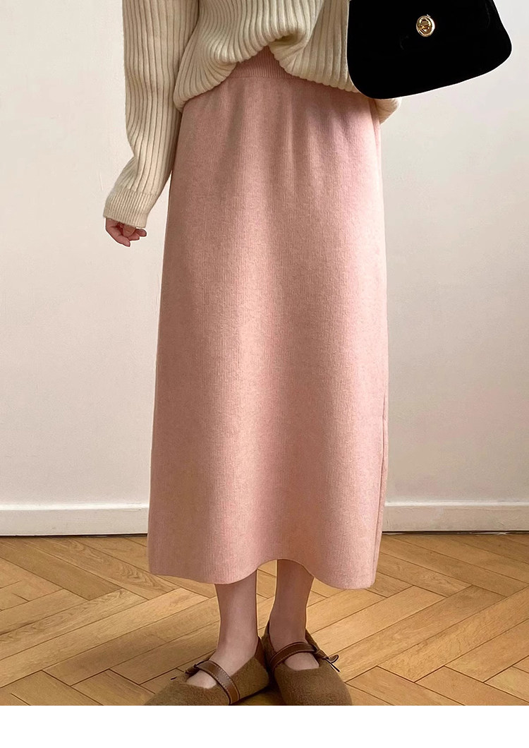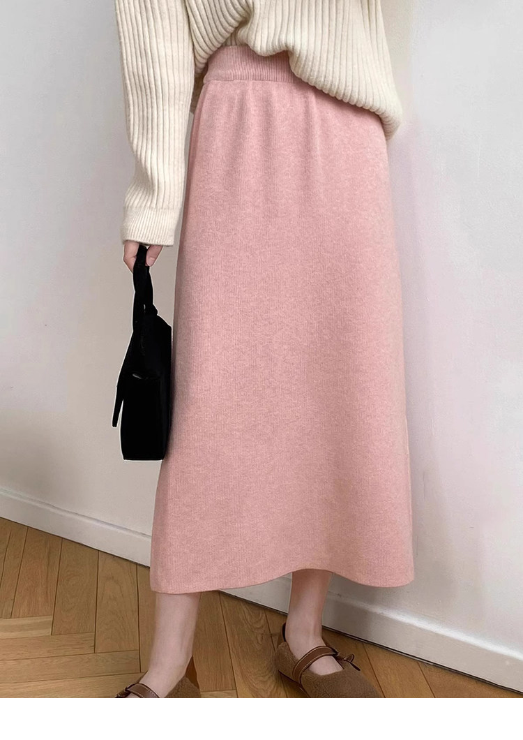 Gentle Pink Knitted Skirt for Women, Autumn and Winter Mid-Length Style, Elegant Straight-Cut Hip-Hugging Skirt, Slimming A-Line Skirt
