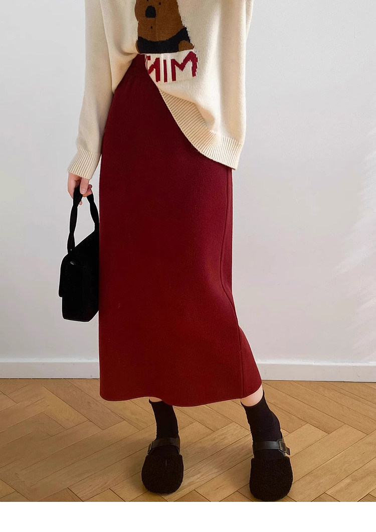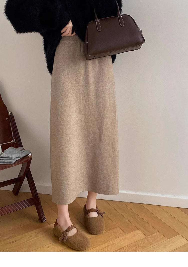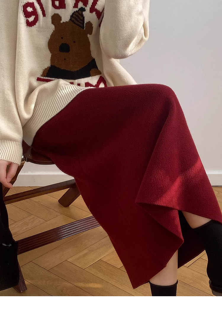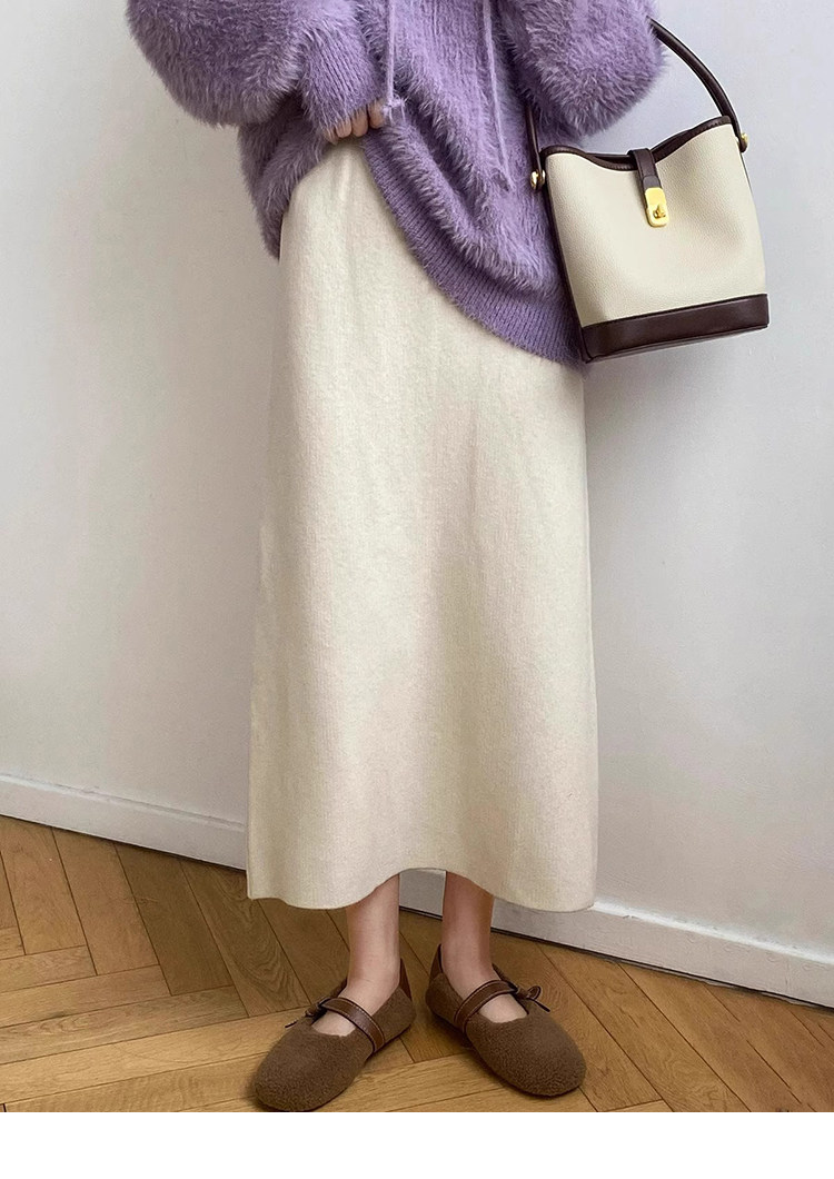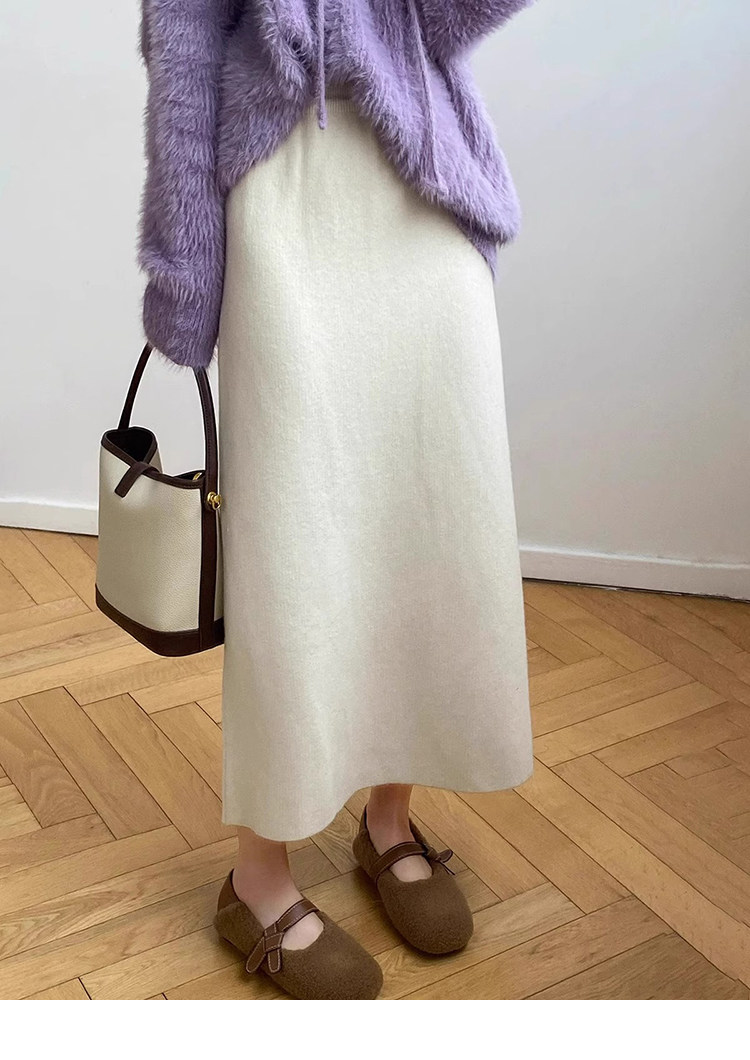 Gentle Pink Knitted Skirt for Women, Autumn and Winter Mid-Length Style, Elegant Straight-Cut Hip-Hugging Skirt, Slimming A-Line Skirt