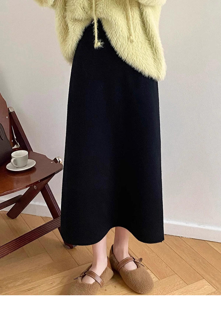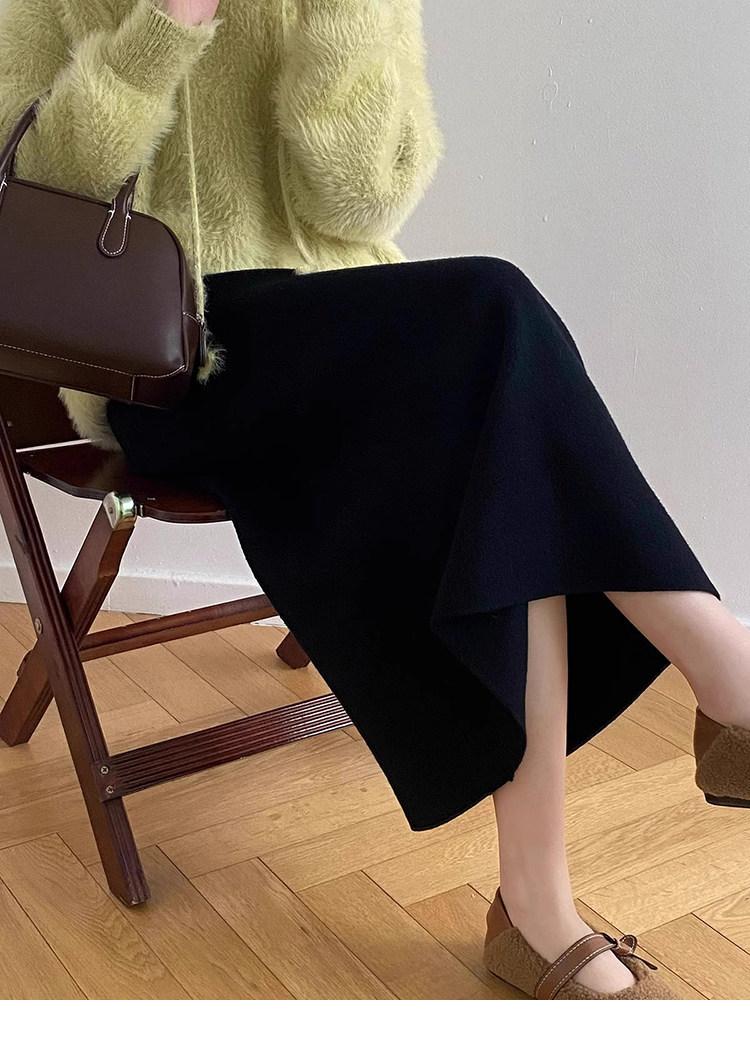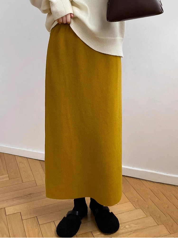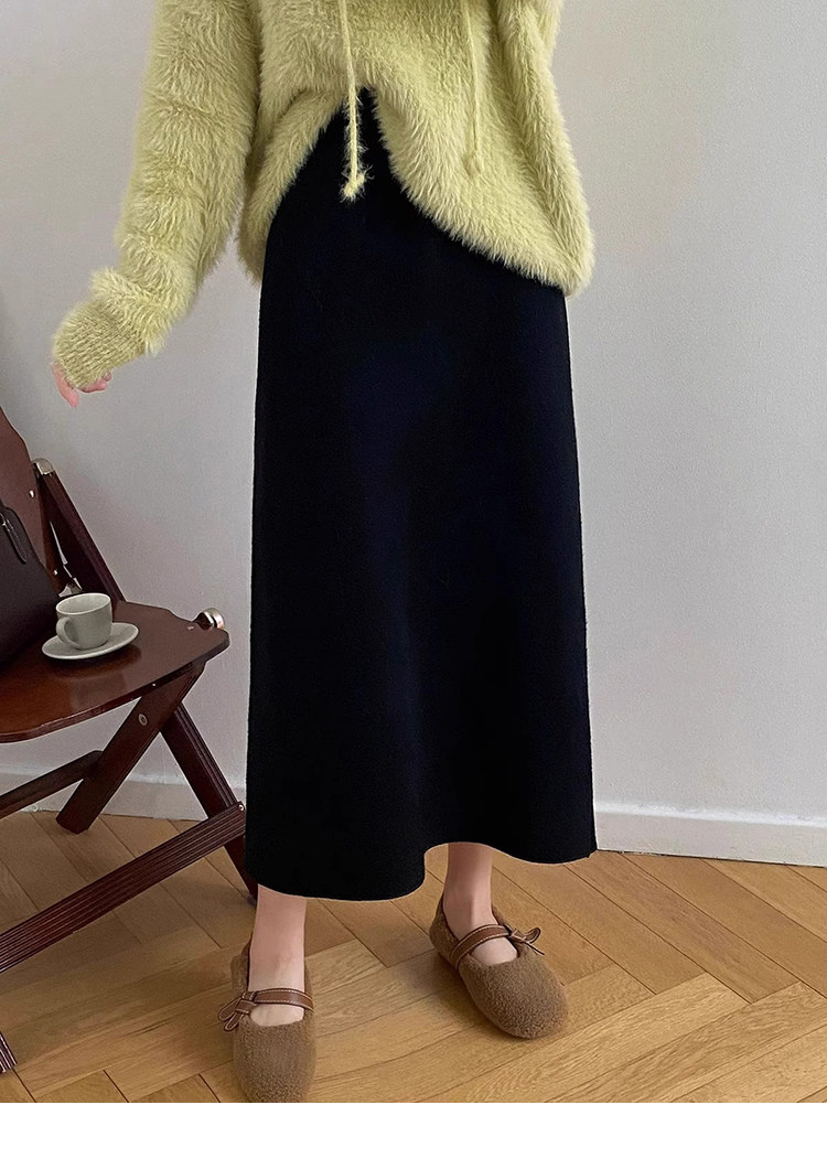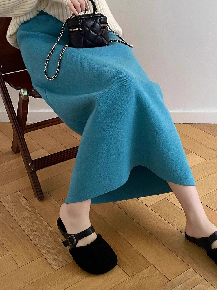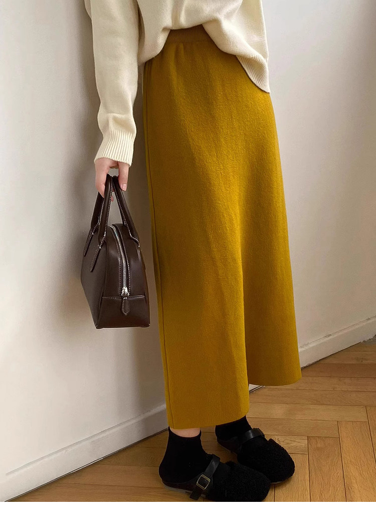 Gentle Pink Knitted Skirt for Women, Autumn and Winter Mid-Length Style, Elegant Straight-Cut Hip-Hugging Skirt, Slimming A-Line Skirt