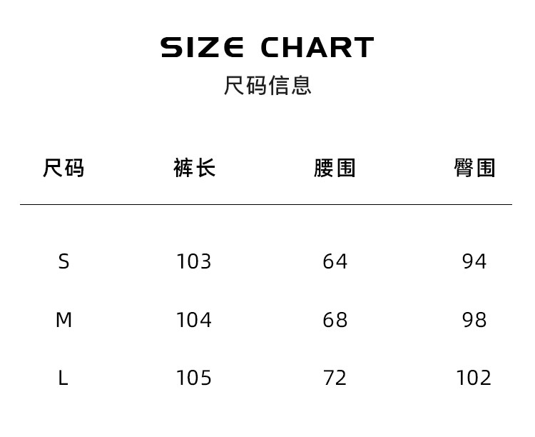Outseam (cm) 99 cm 101.5 cm 104 cm 106.5 cm 109 cm