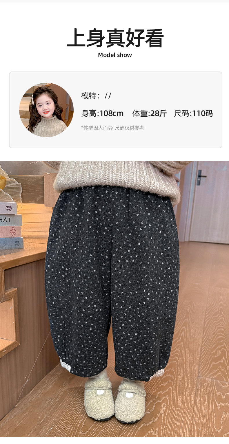 Girls' Fleece-Lined Pants Autumn and Winter 2025 New Children's Fleece-Lined Long Pants Thickened Casual Lantern Pants for Little Girls