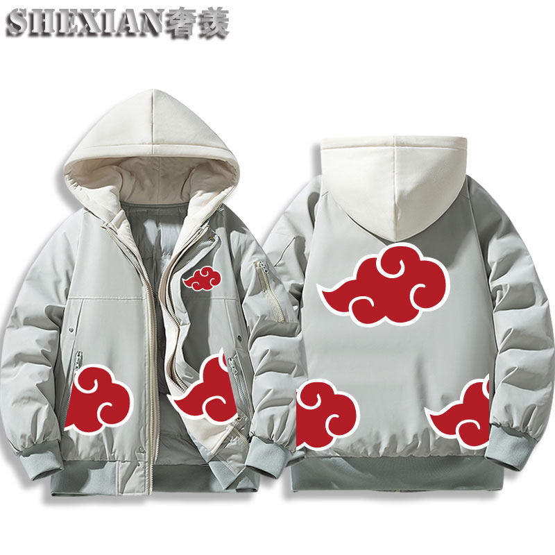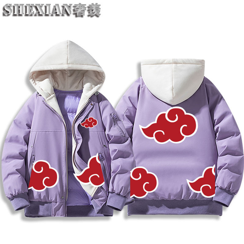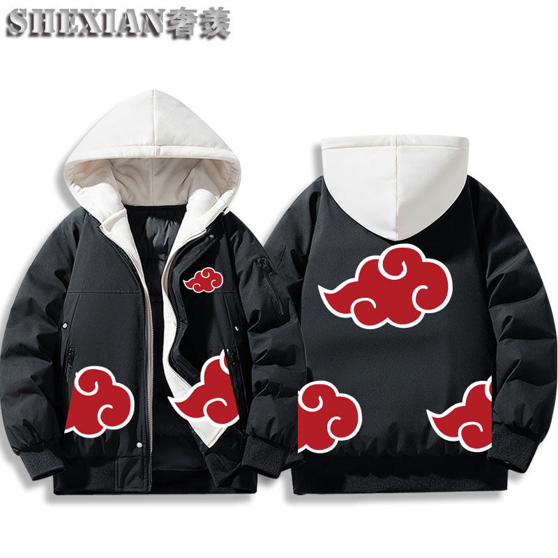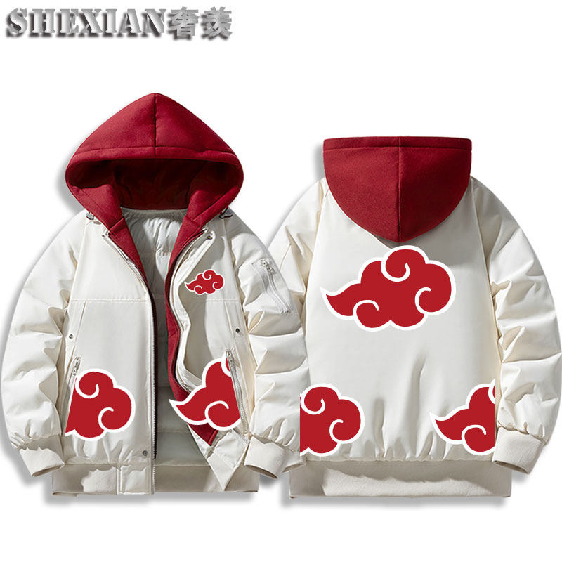 Naruto Akatsuki Organization Style Red Cloud Robe Uchiha Itachi down Cotton Jacket Coat for Men and Women