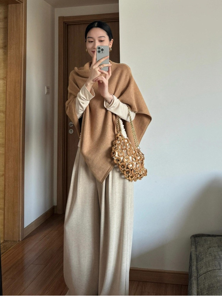 Early Autumn Outfit: Korean Style, Lazy and Elegant, Super Pretty Cape Sweater for Women, Outerwear Shawl, Very Nice Top