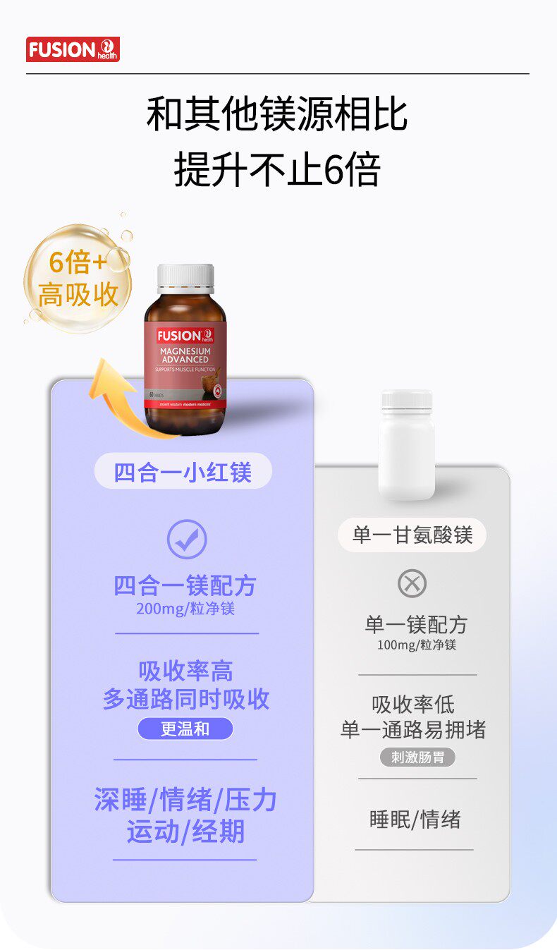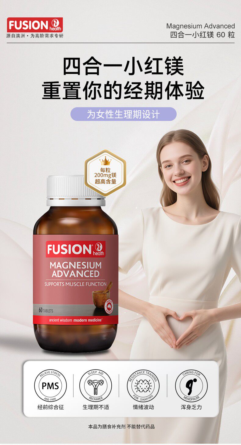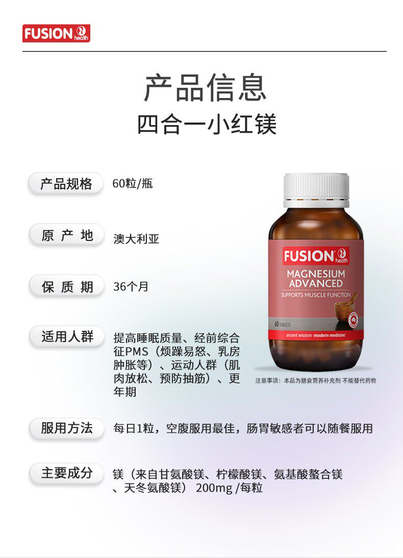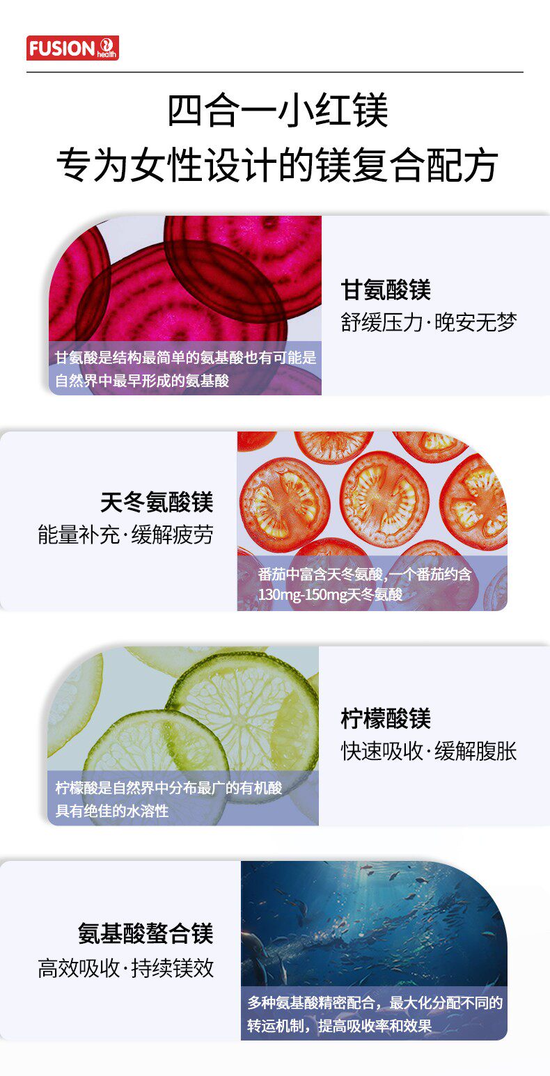 [Four-In-One Little Red Magnesium]Fusionhealth Advanced Magnesium Glycinate for Women Adults Relief