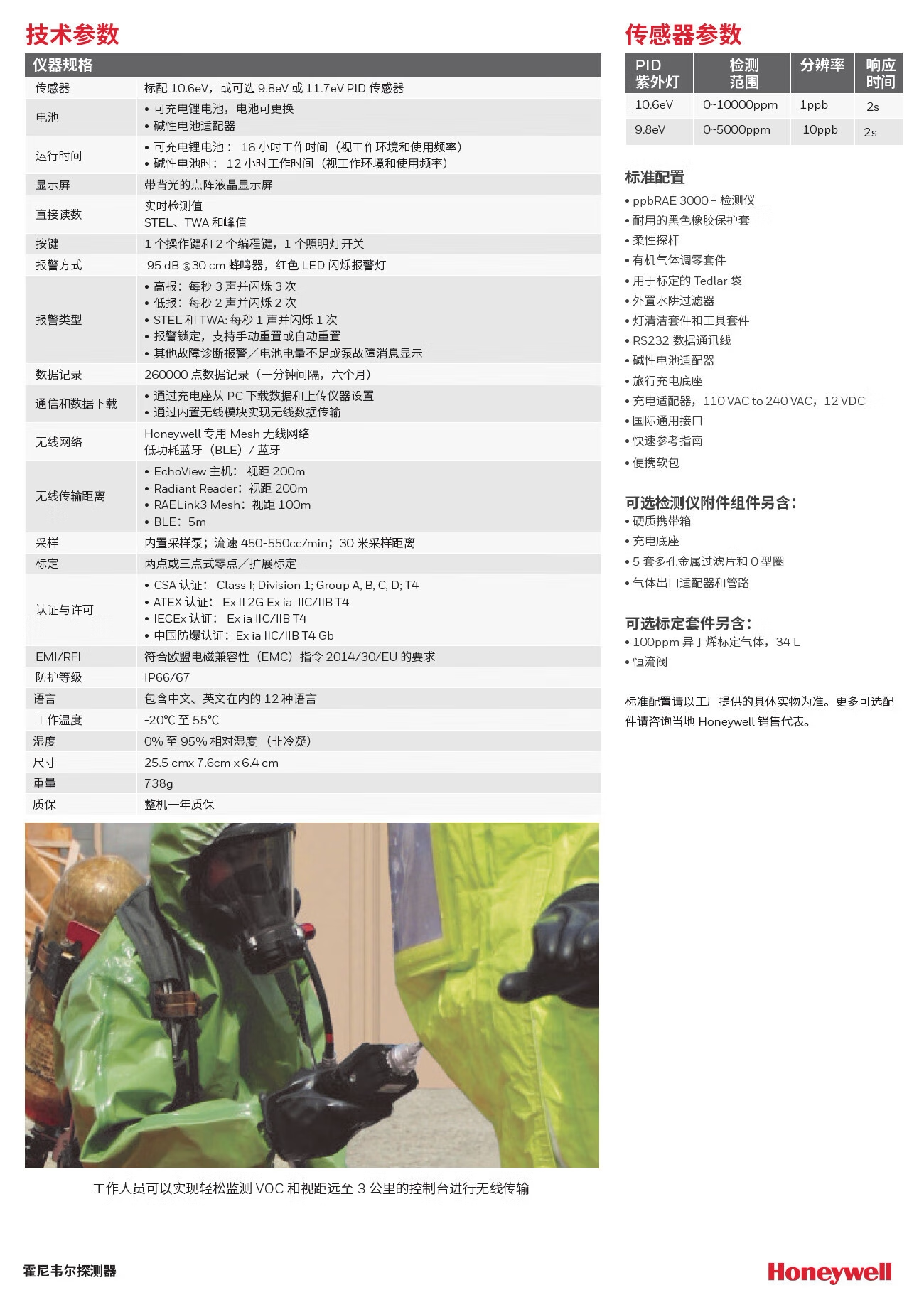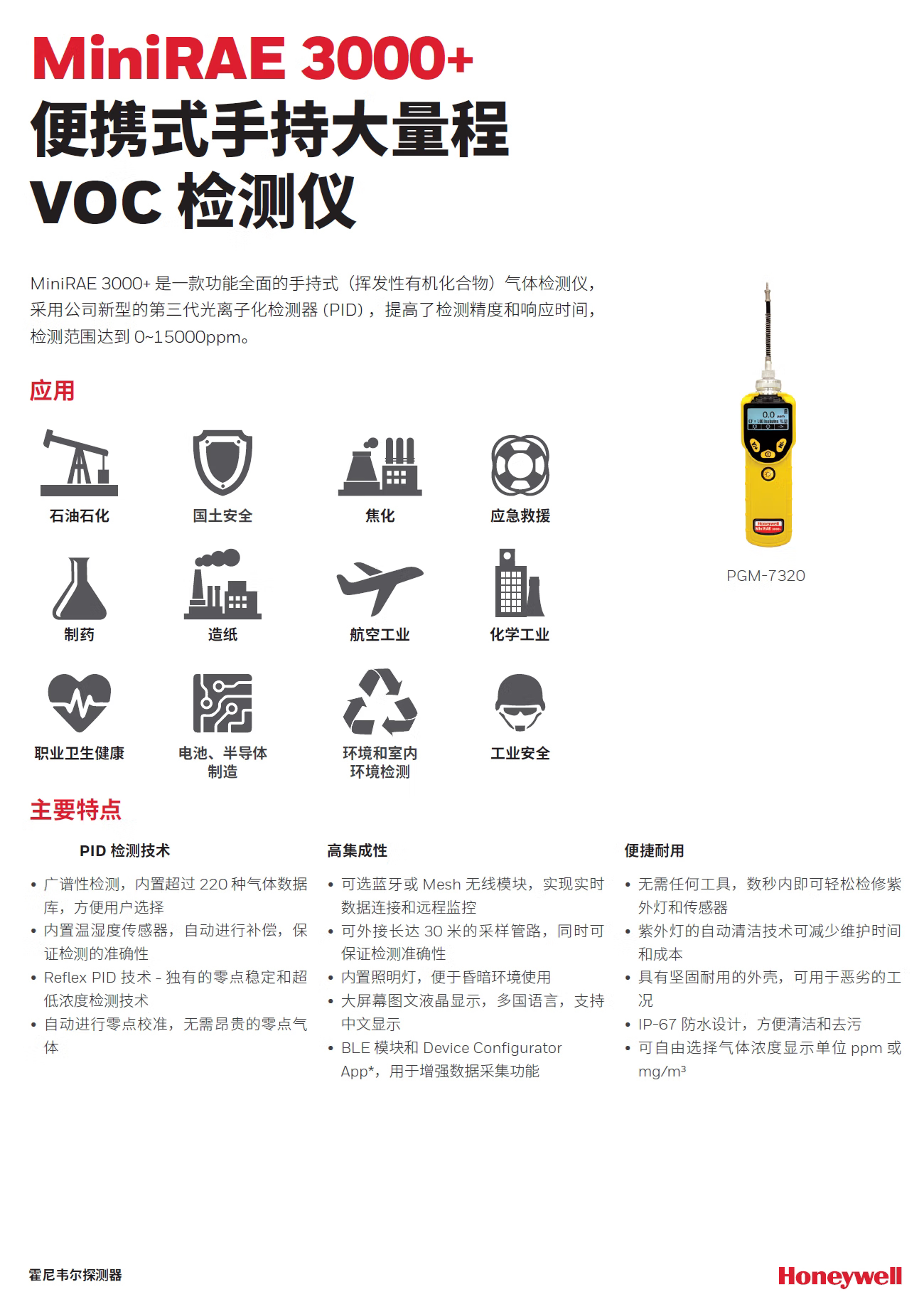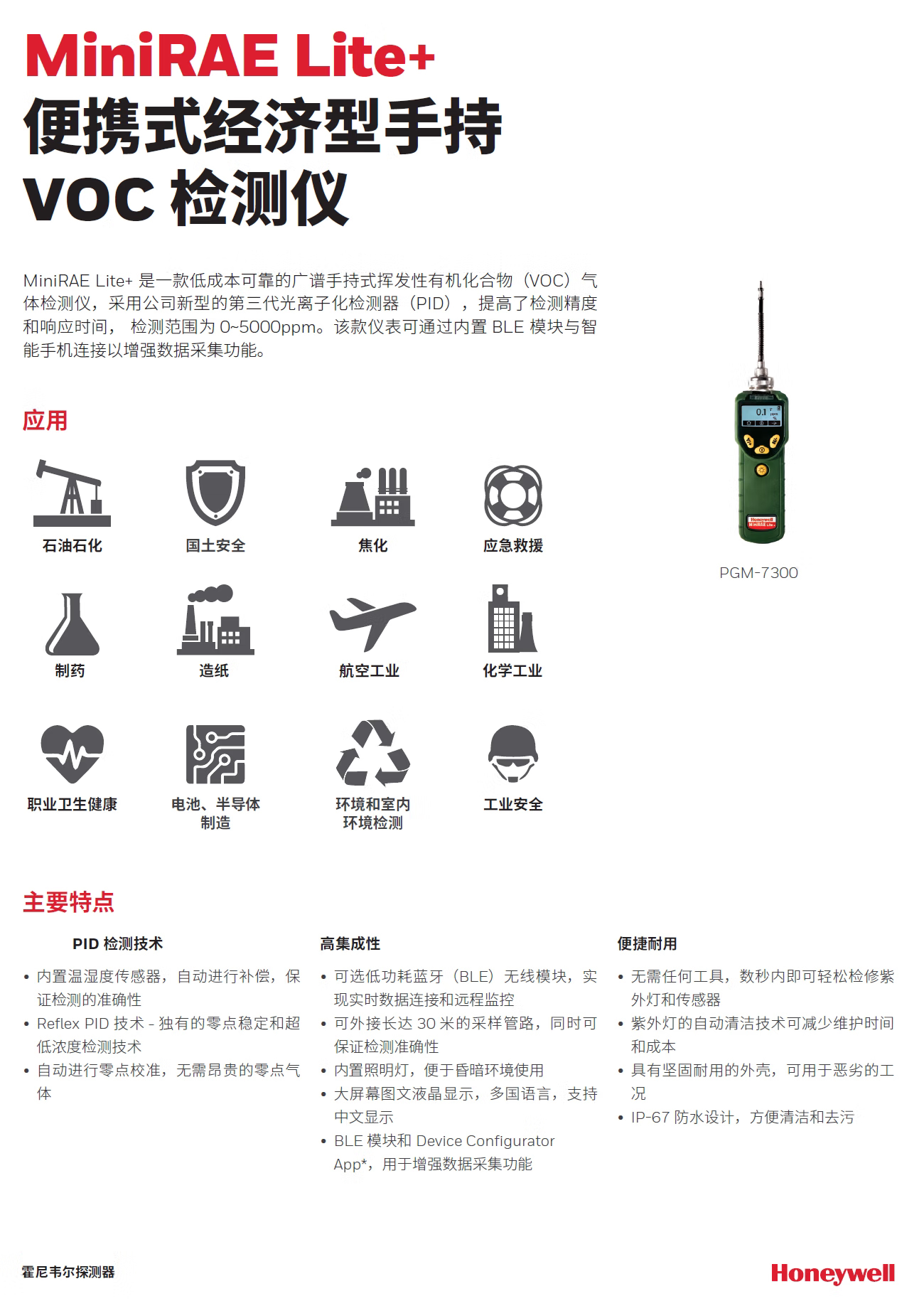 Honeywell Huarui Pgm-7300/7320 Portable Handheld Voc Gas Detector Pump-Type Detector