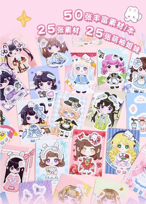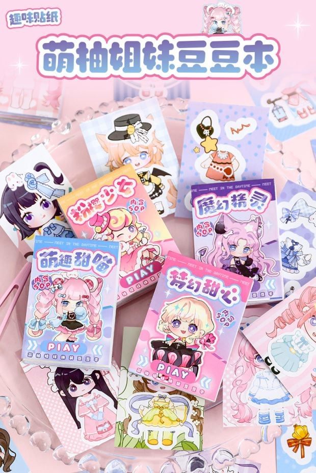 2025 New Cute Sisters Anime Dress-Up Sticker Book Girls Princess Story Book Children's DIY Handmade Dress-Up