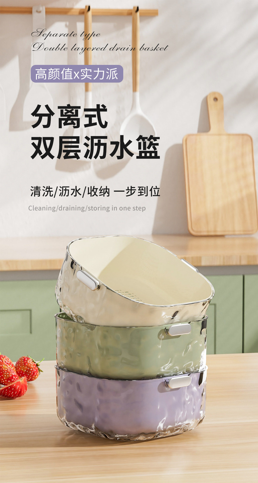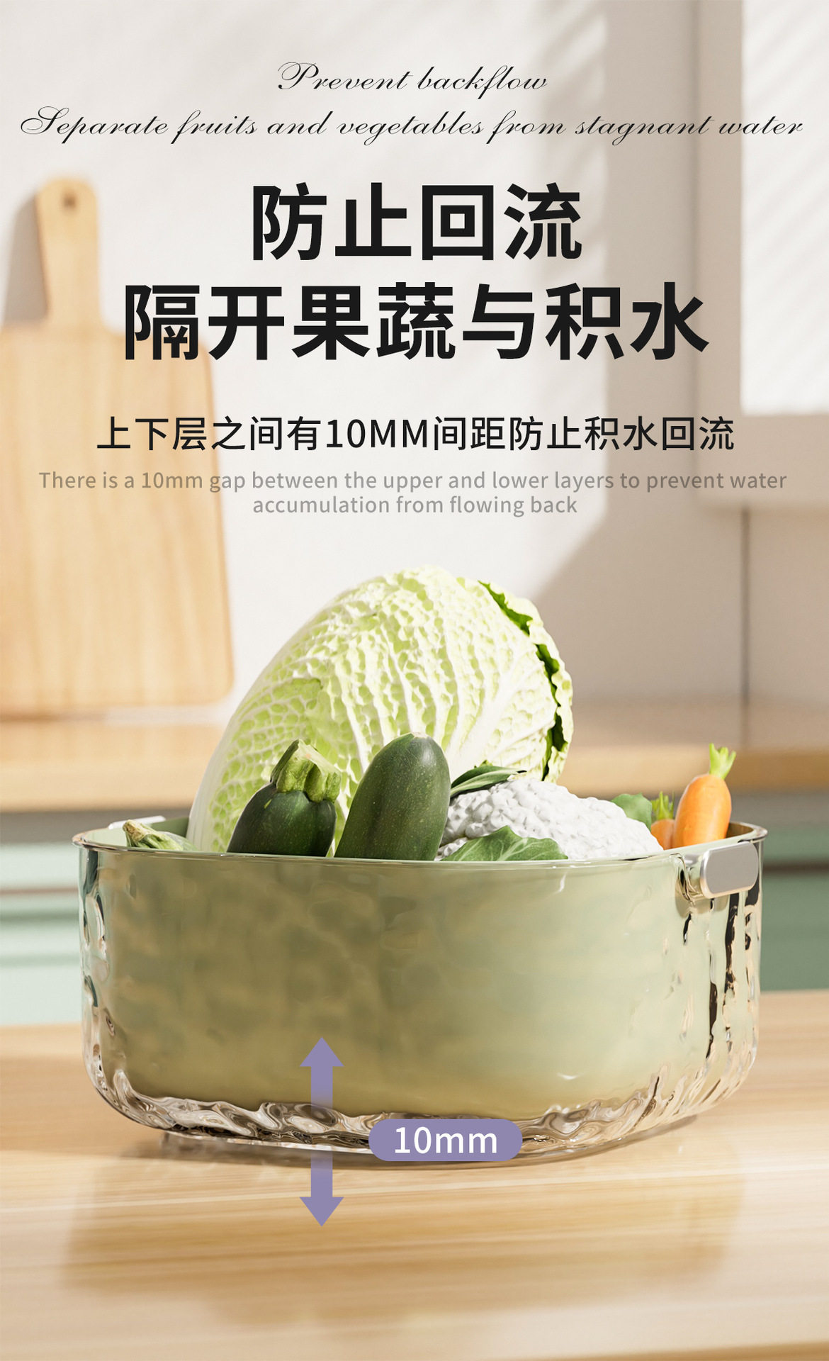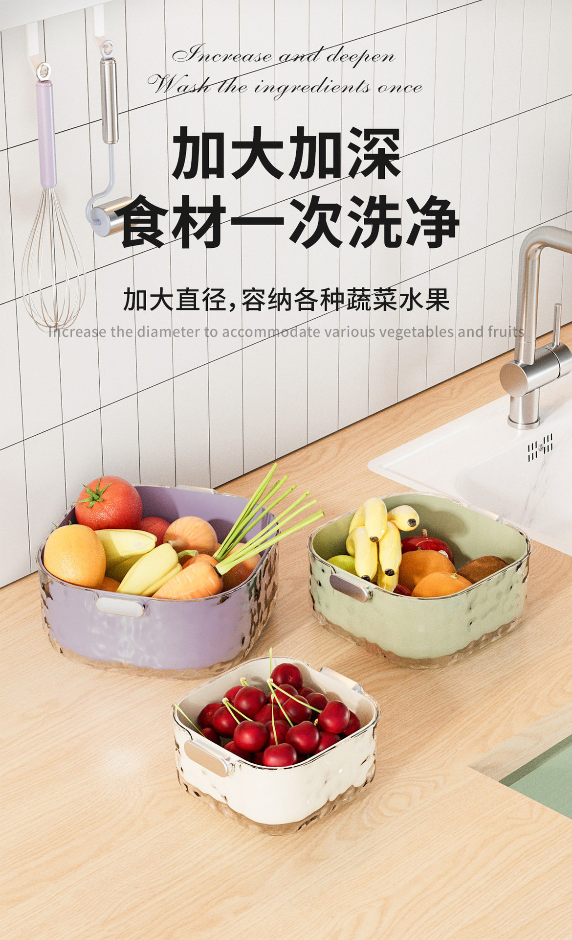 Double-Layer Vegetable Washing Basin with Draining Basket, Kitchen Supplies, Fruit Tray Basket for Living Room, Vegetable Washing Basin, Household Storage for Tea Table