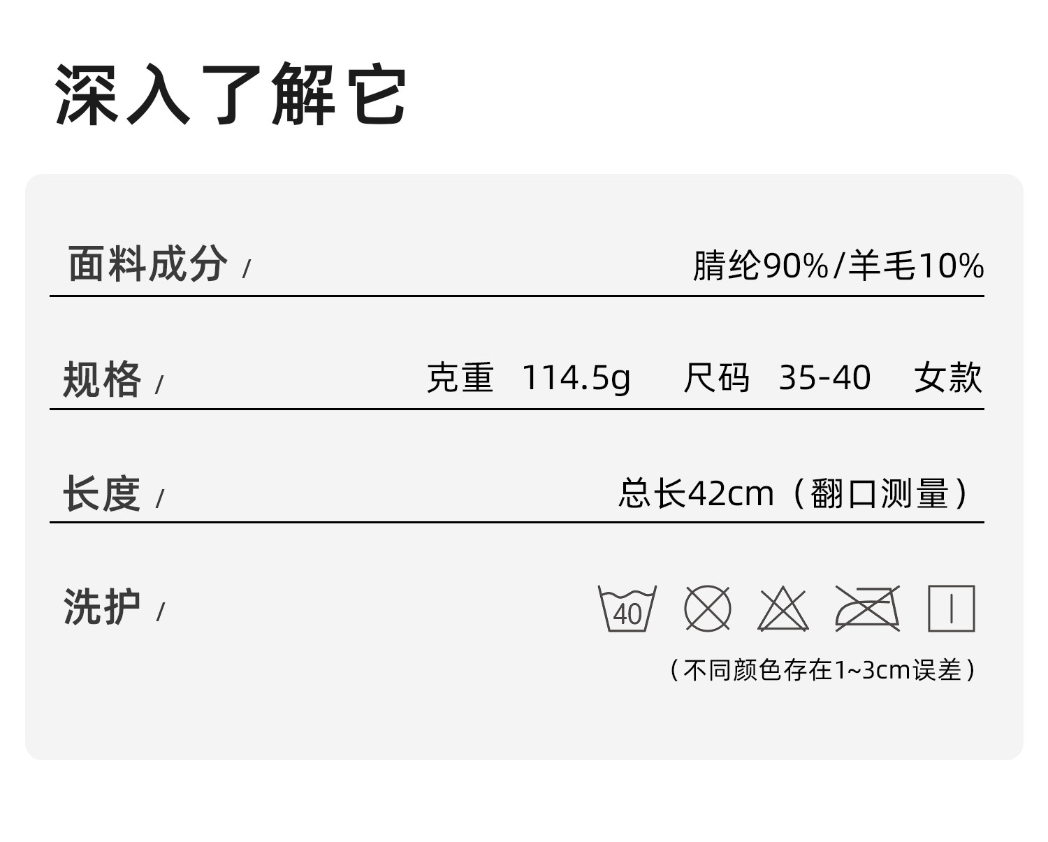 Fabric material ingredients Polyacrylonitrile fiber (acrylic fiber) 90% wool 10%