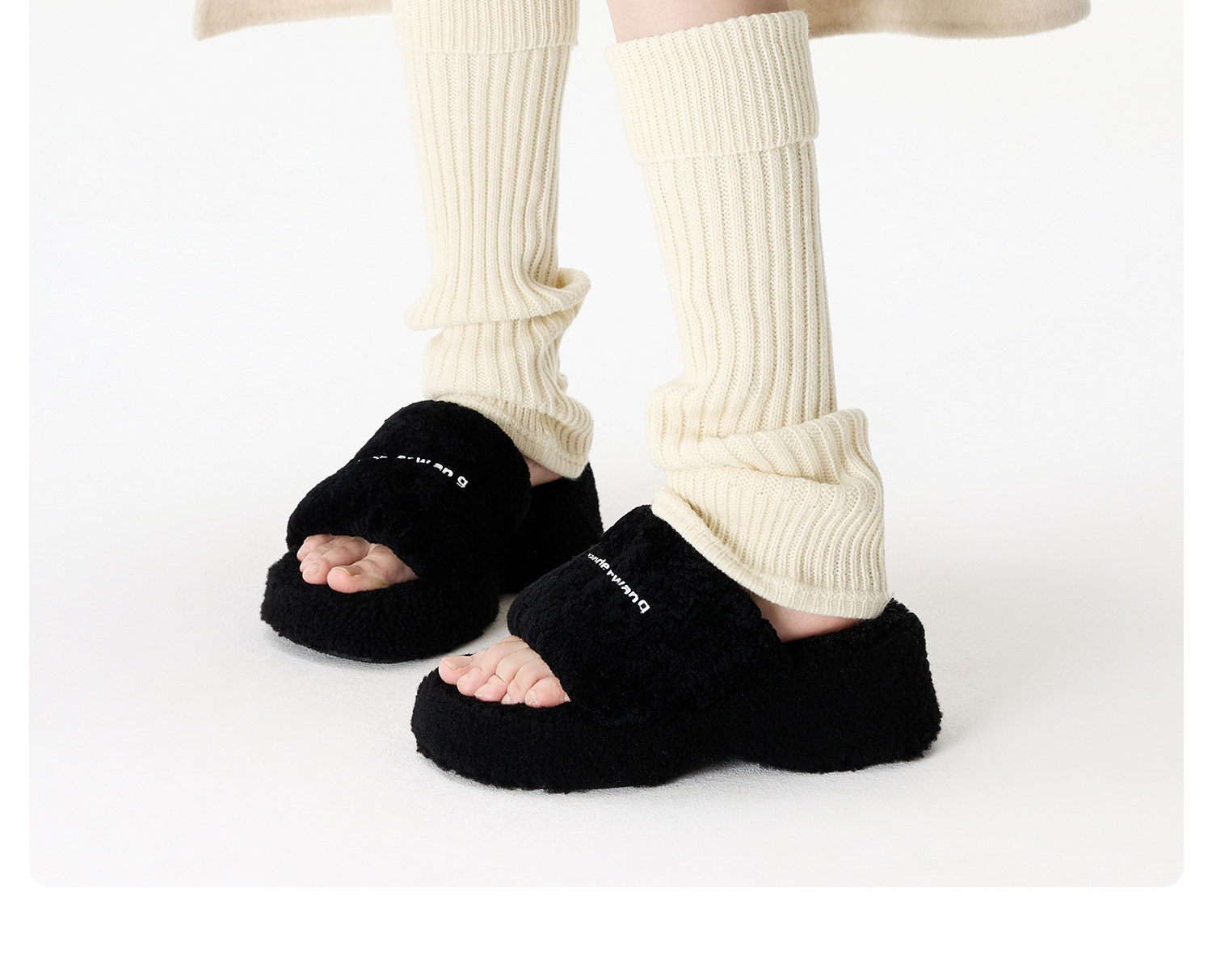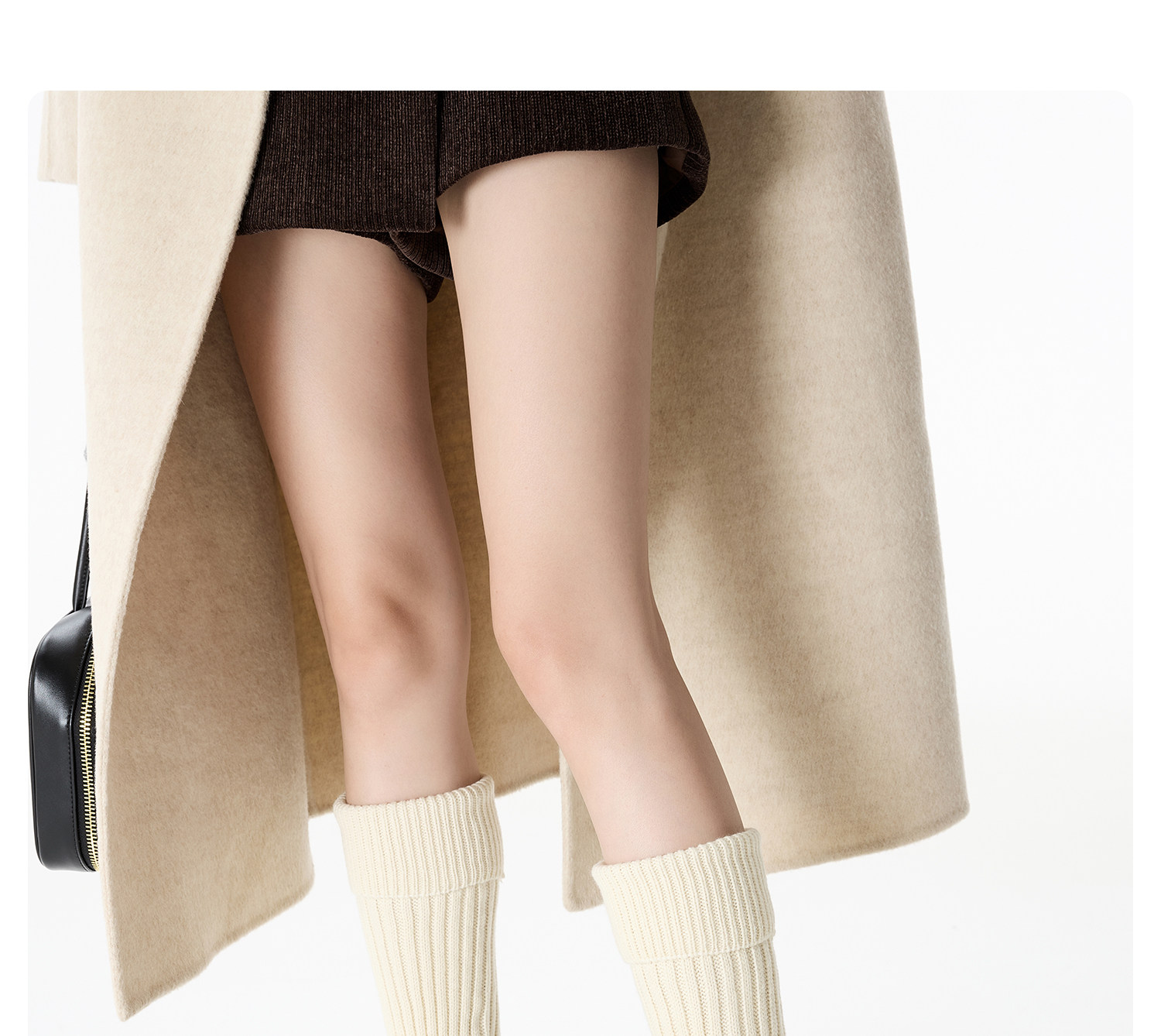 Cuffed and lengthened wool thick-thread socks for women in autumn and winter with vertical stripes, white warm and thickened calf and leg covers, pile socks