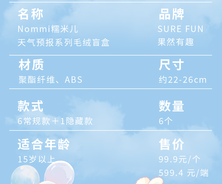 Nommi Weather Forecast Series Plush Pendant Blind Box Doll Toy Valentine's Day Gift for Girls