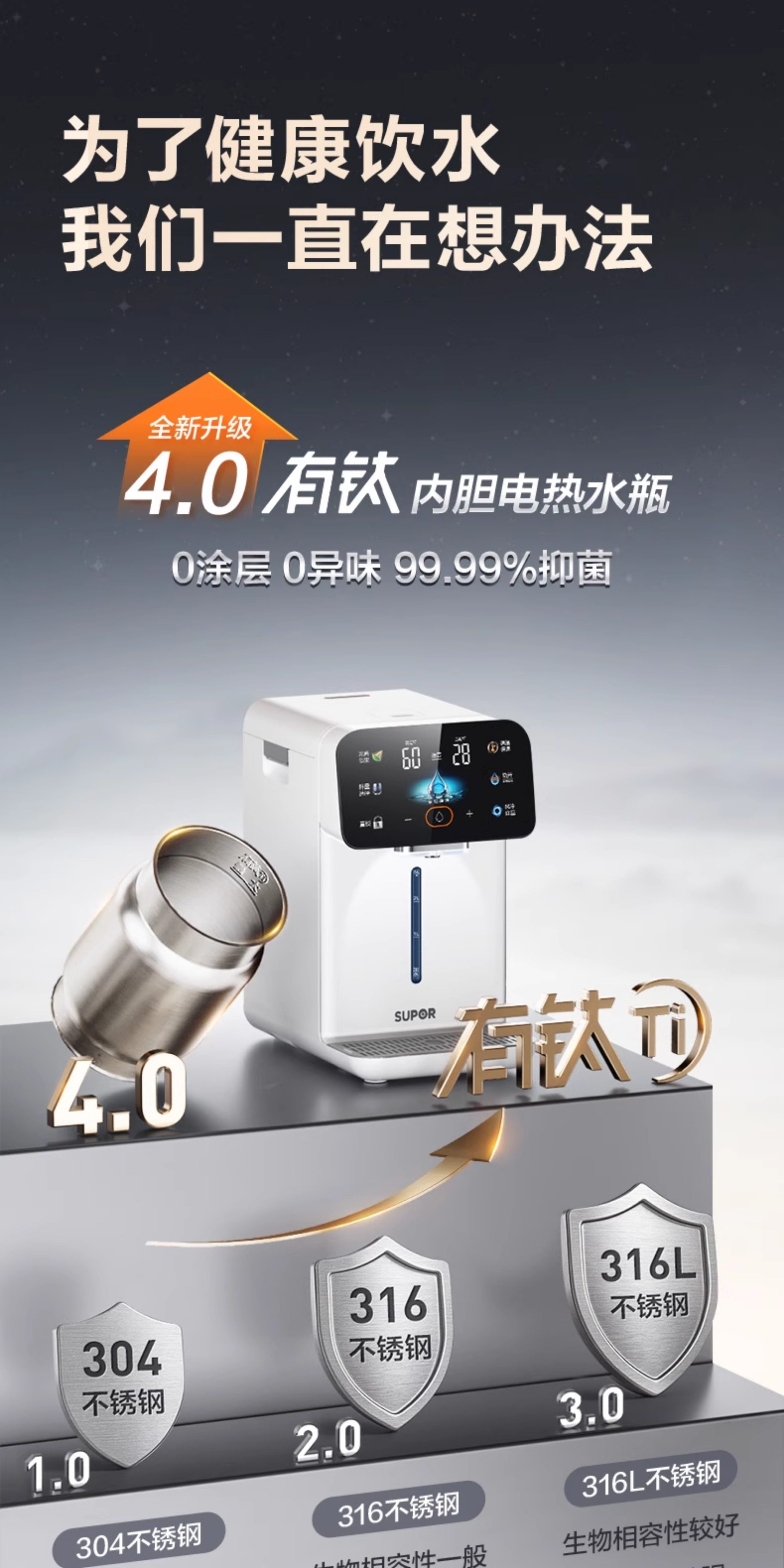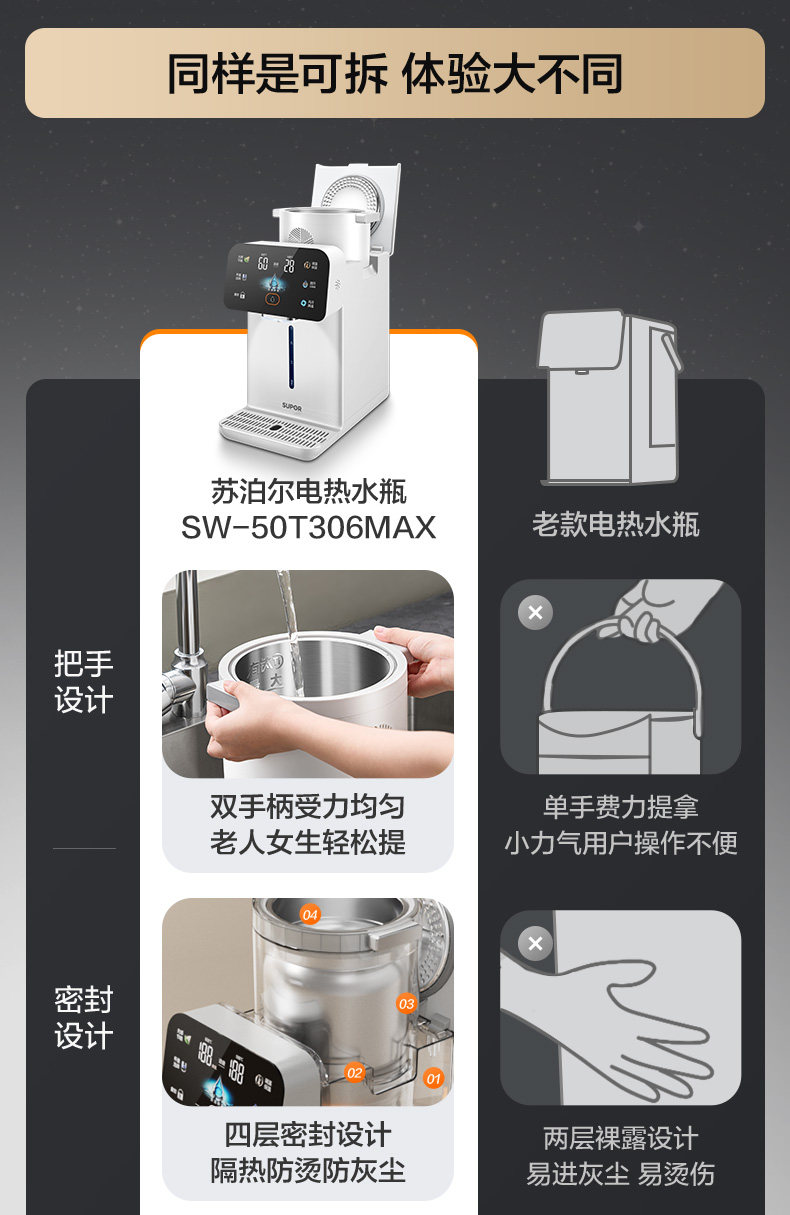 Supor electric kettle air-cooled removable and washable titanium liner water dispenser antibacterial smart electric kettle kettle