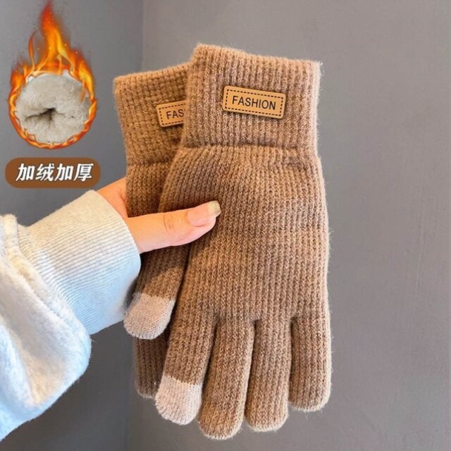 Gloves for women, winter warm plus velvet and thickened cycling knitted non-slip touch screen anti-cold cycling gloves and sports socks