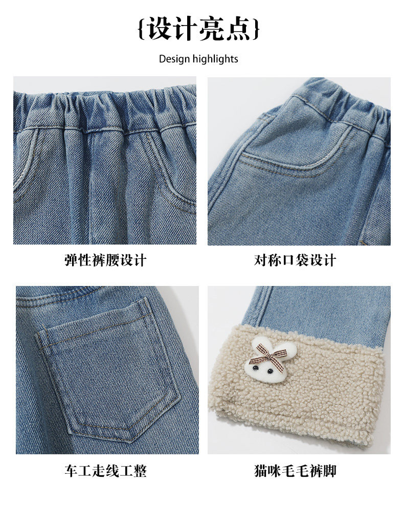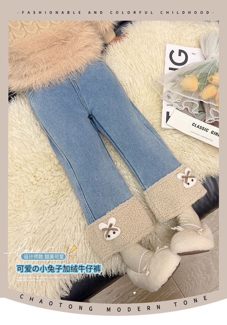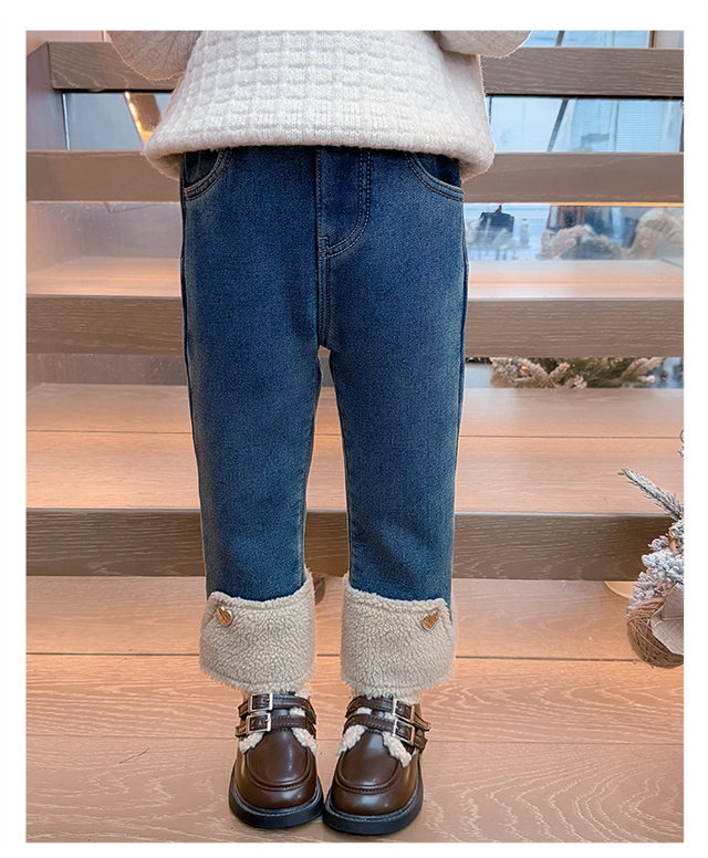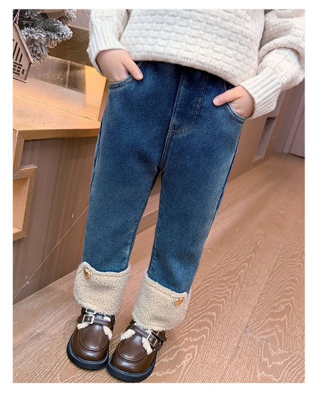 [Fleece-Lined]Girls' Fleece-Lined Jeans 2025 Autumn and Winter New Style Super Stylish and Trendy Children's Thickened Pants