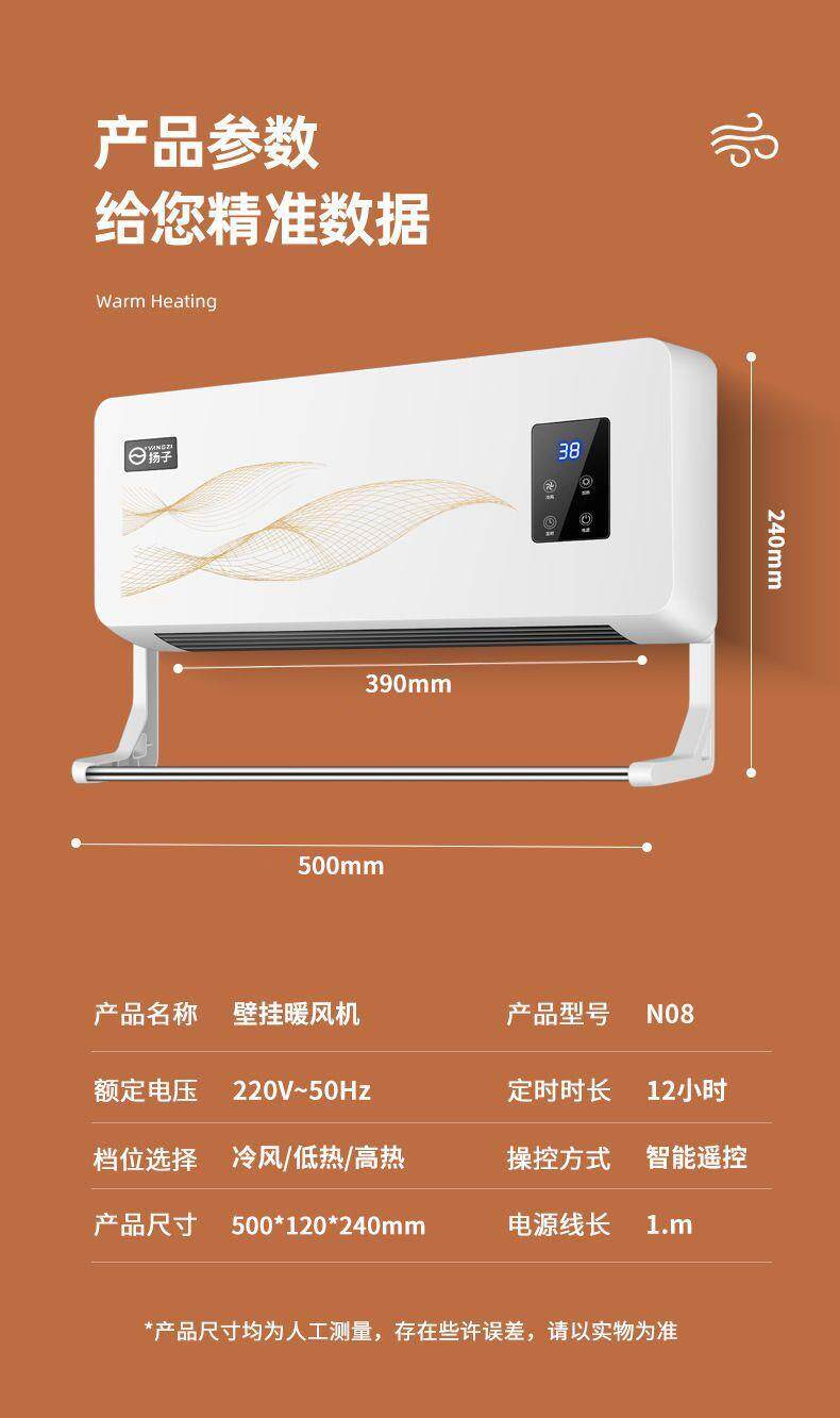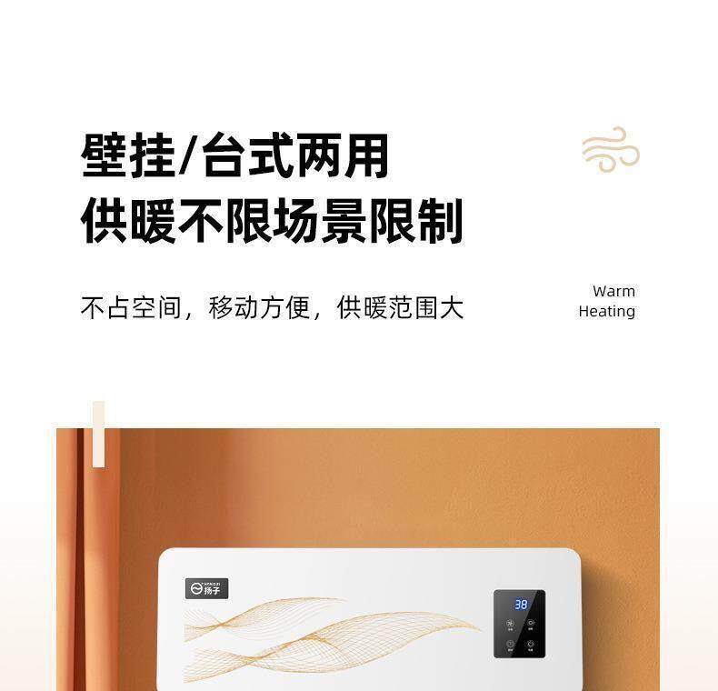 Yangzi Wall-Mounted Heater for Home Use, Waterproof, Suitable for Dormitory, Bedroom, Bathroom, Energy-Saving Electric Heater