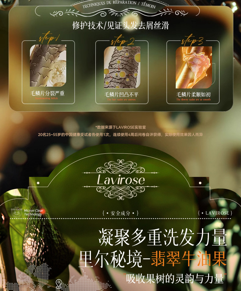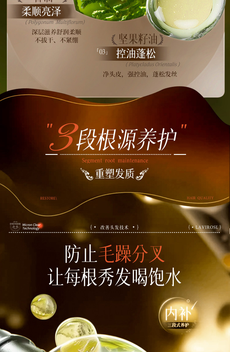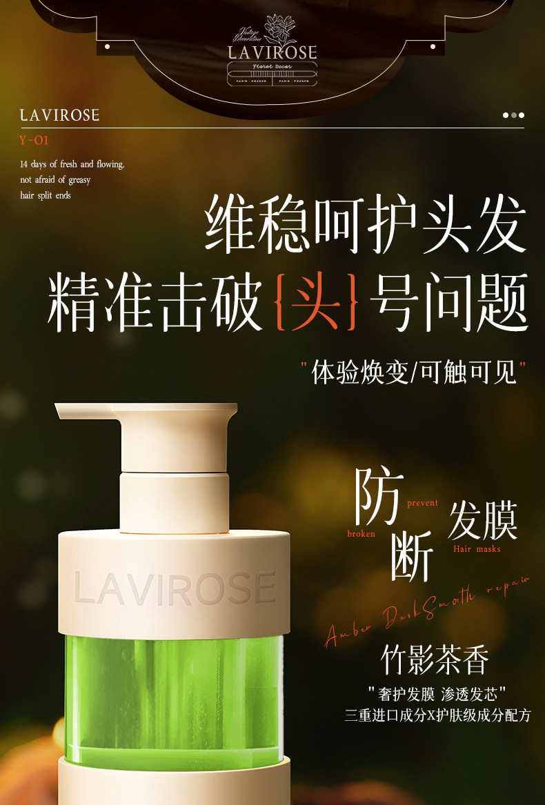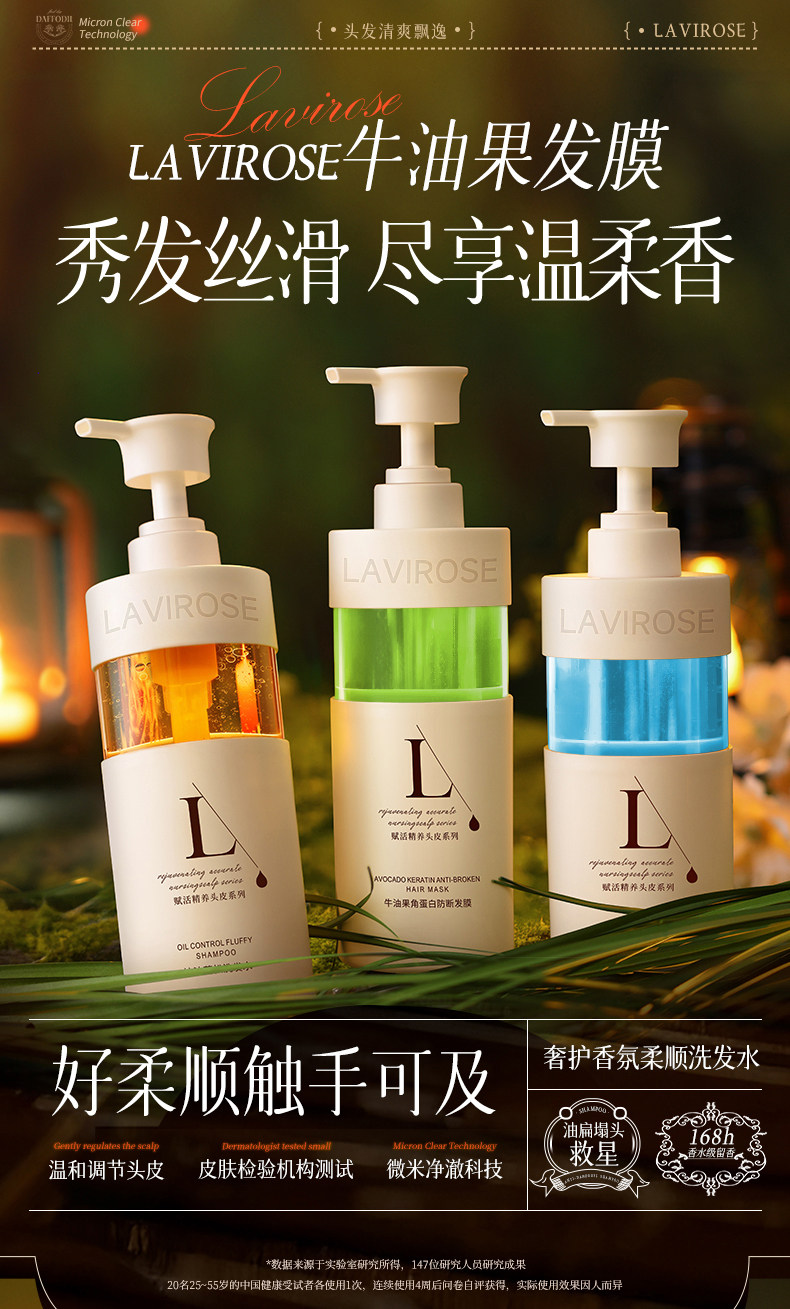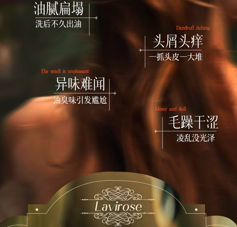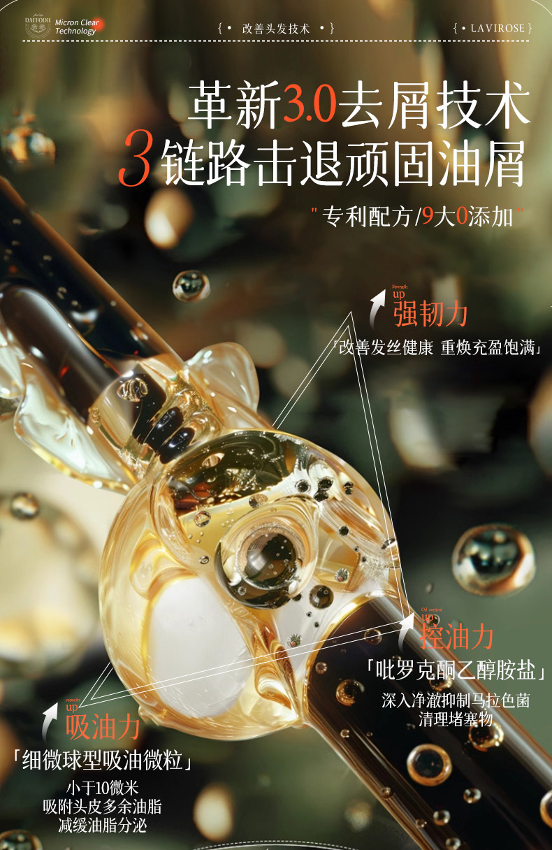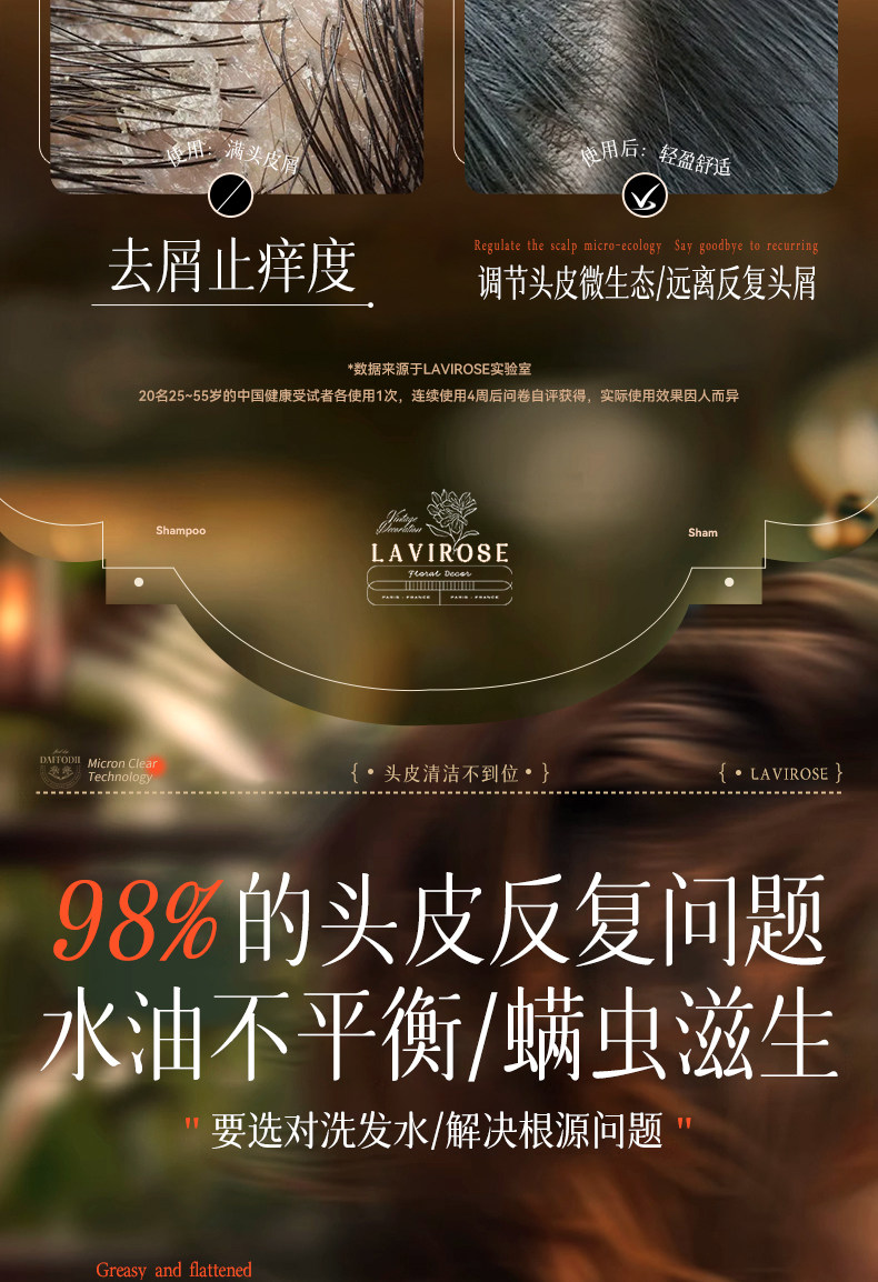 LAVIROSE shampoo, oil-controlling, fluffy, anti-dandruff, anti-itch, silicone-free, repairing shampoo for men and women