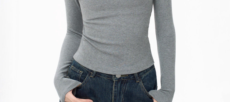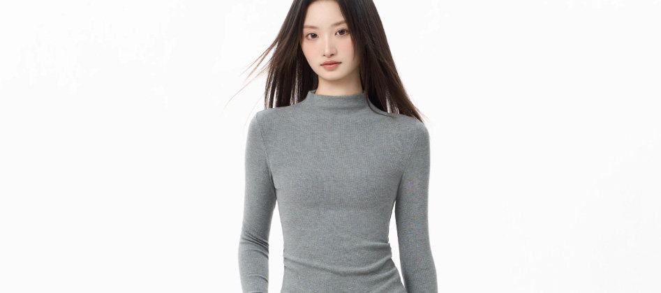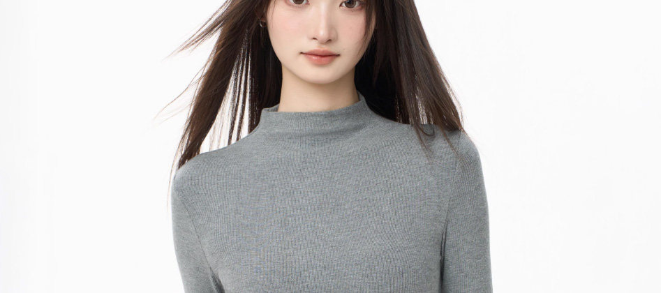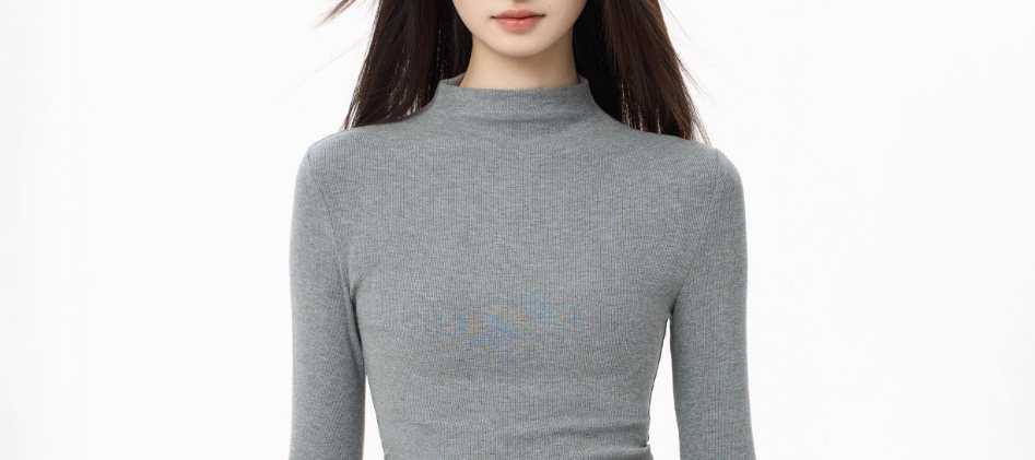 Tight-Fitting Half-High Collar Long-Sleeve Base Layer Top for Women, Autumn and Winter Stylish Slim-Fit Mid-Neck Top That Enhances the Figure