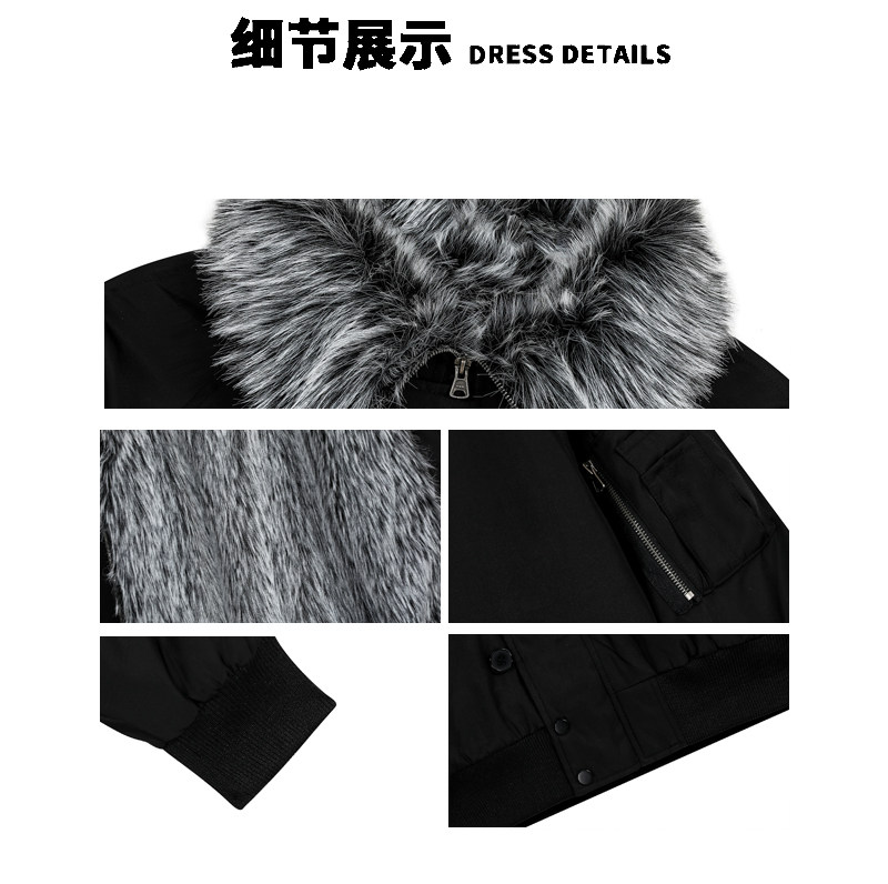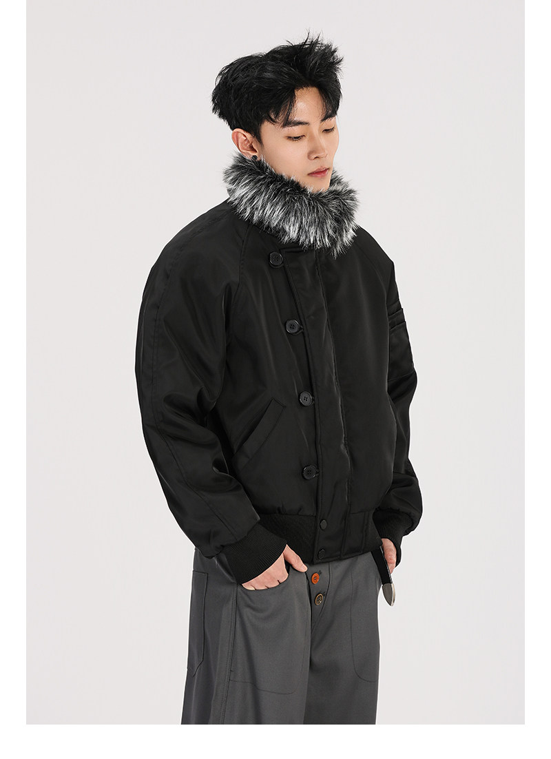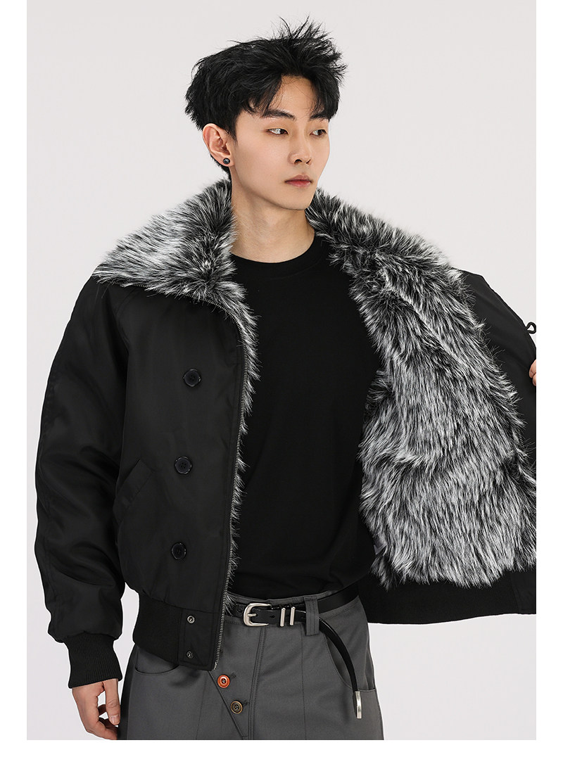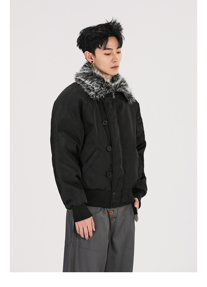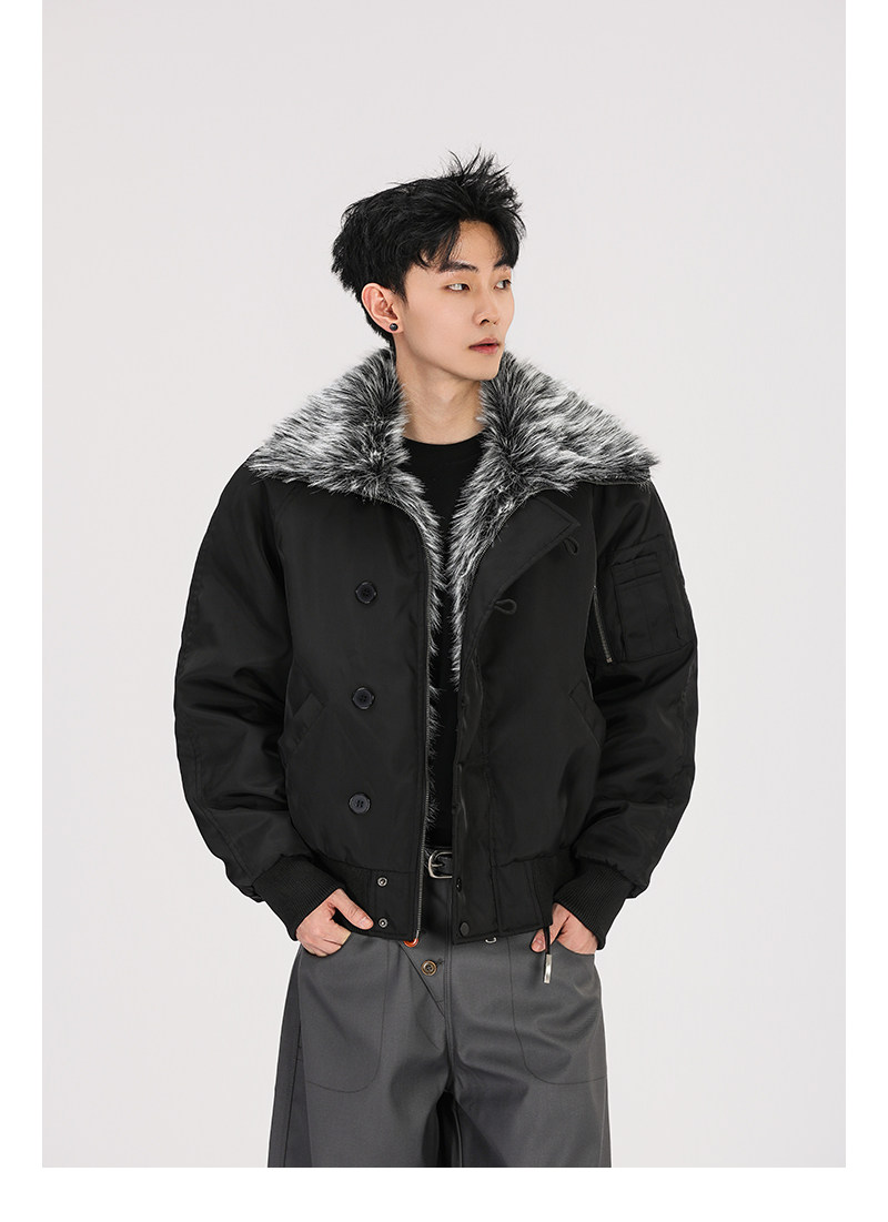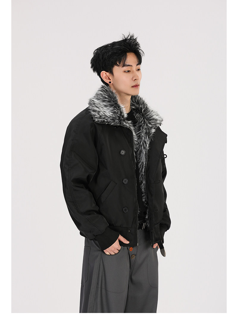 A Carton American-Style Fur Collar Jacket, Mountain Carving Cotton Coat, Unisex Winter Design, Thickened Jacket, Casual Cotton Clothing