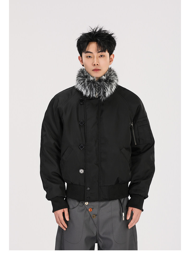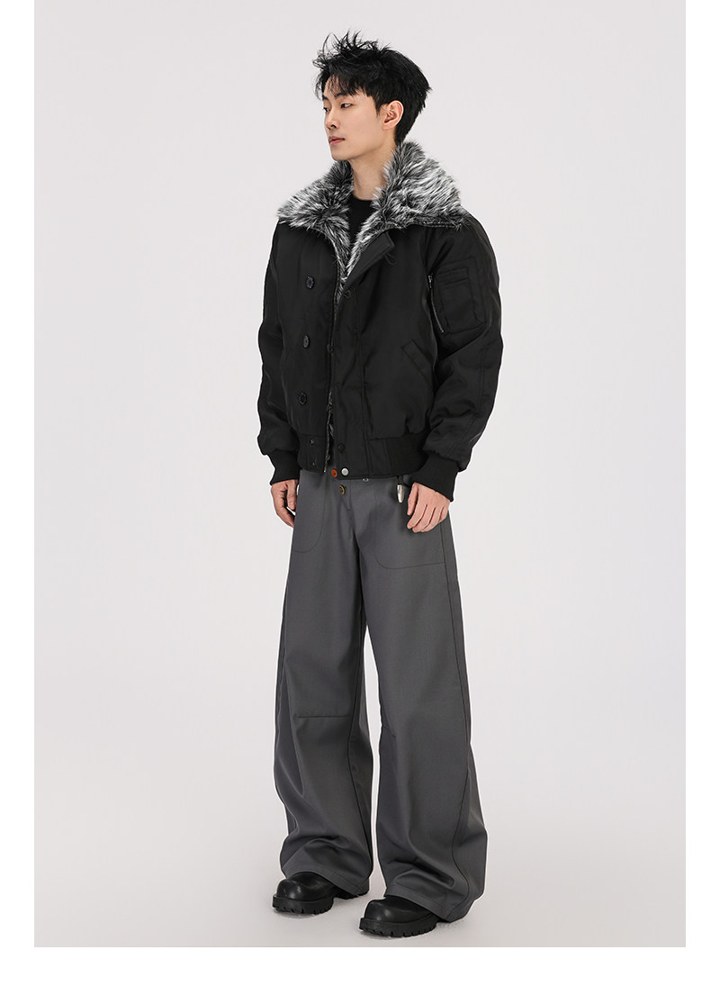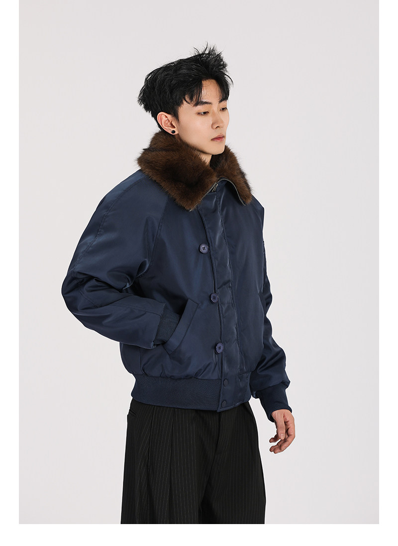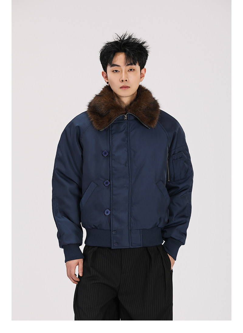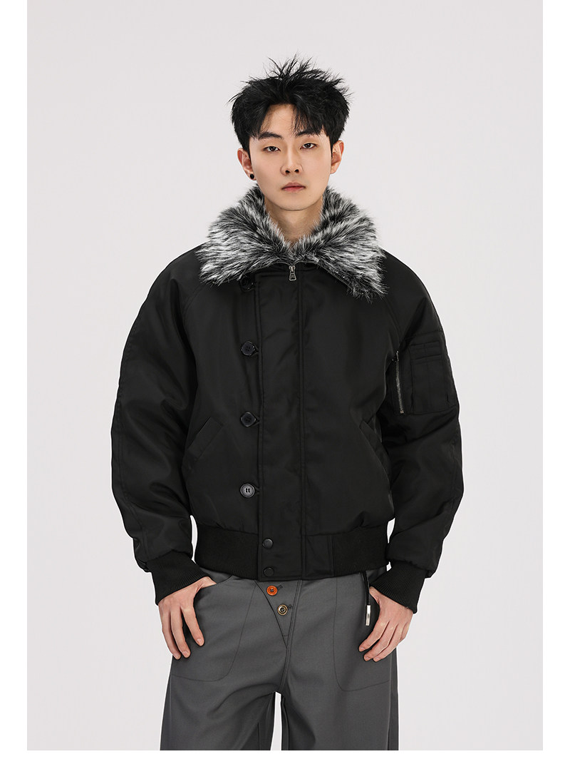 A Carton American-Style Fur Collar Jacket, Mountain Carving Cotton Coat, Unisex Winter Design, Thickened Jacket, Casual Cotton Clothing