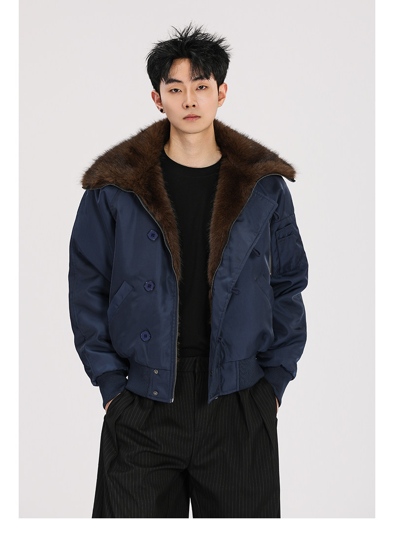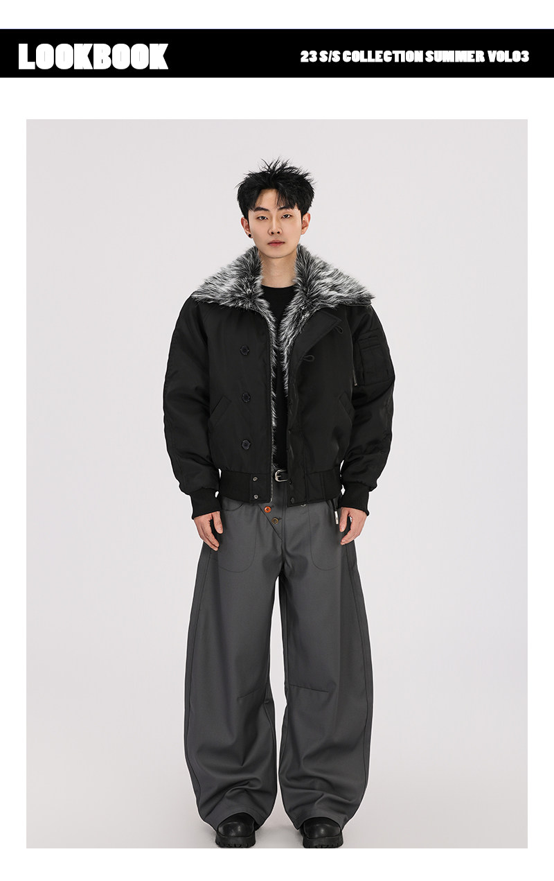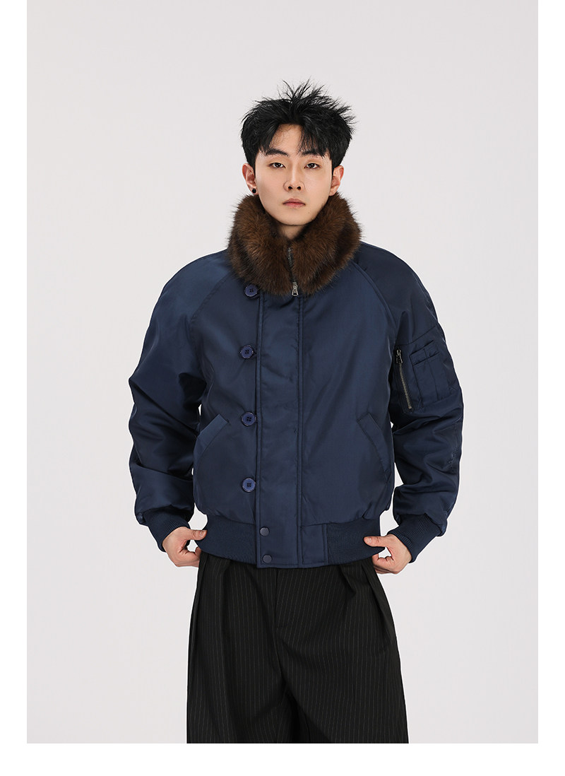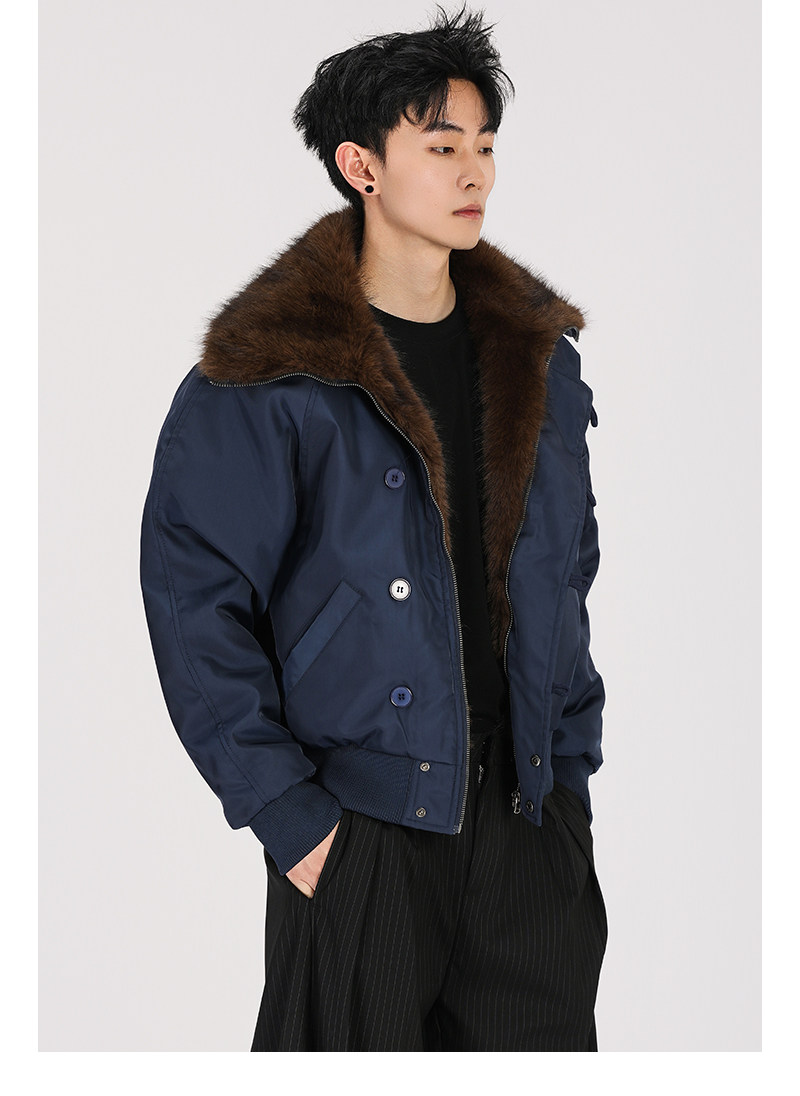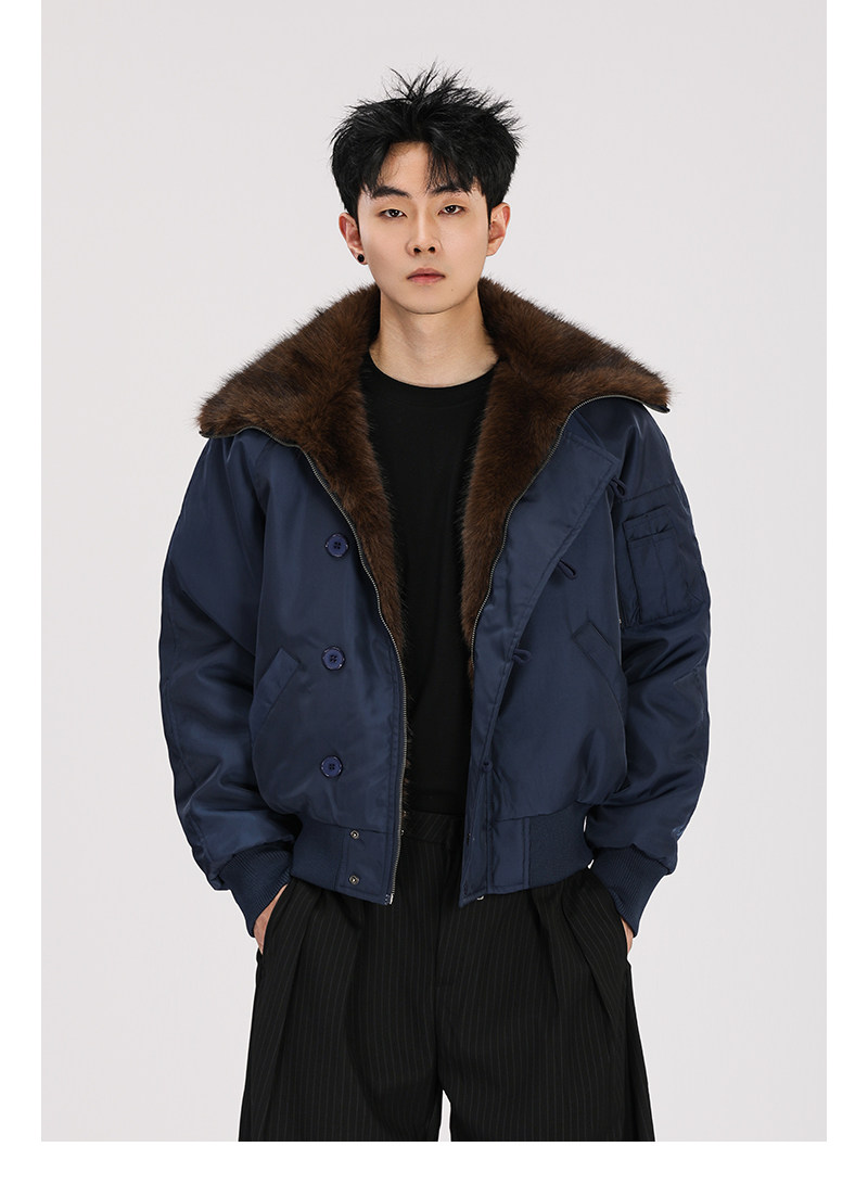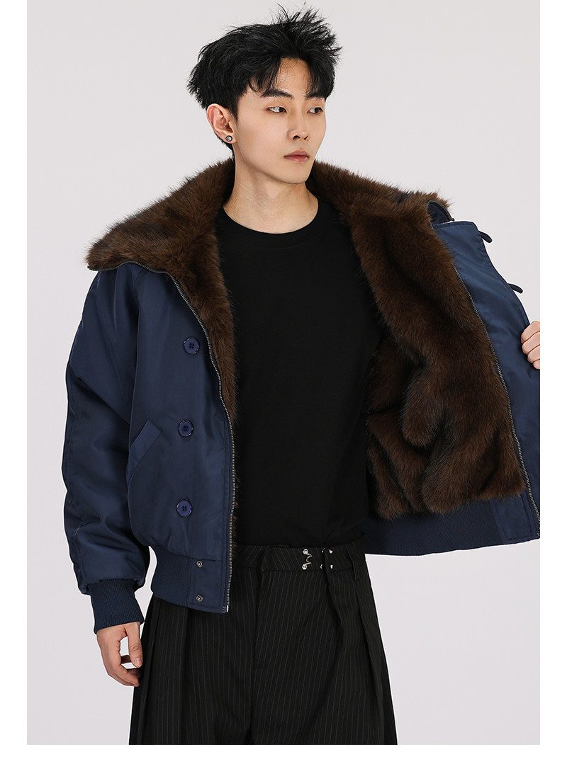 A Carton American-Style Fur Collar Jacket, Mountain Carving Cotton Coat, Unisex Winter Design, Thickened Jacket, Casual Cotton Clothing
