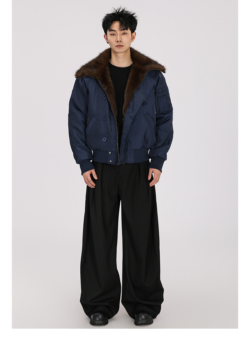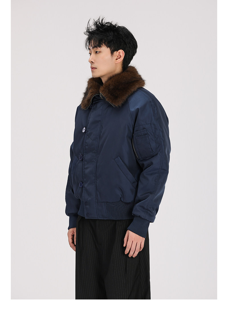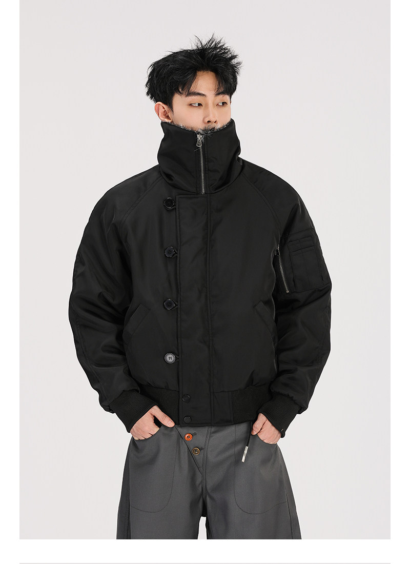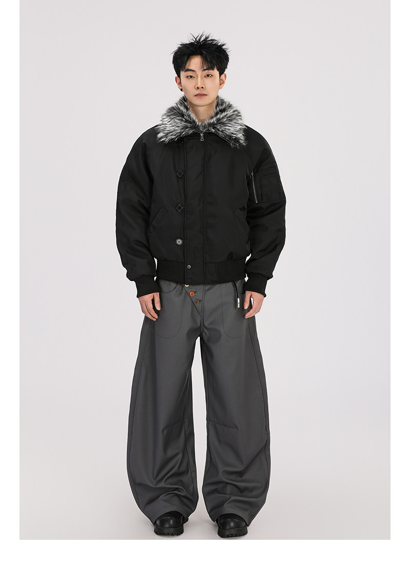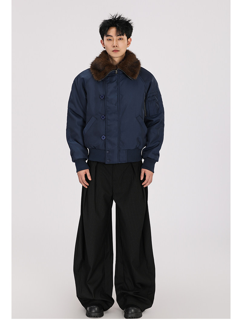 A Carton American-Style Fur Collar Jacket, Mountain Carving Cotton Coat, Unisex Winter Design, Thickened Jacket, Casual Cotton Clothing