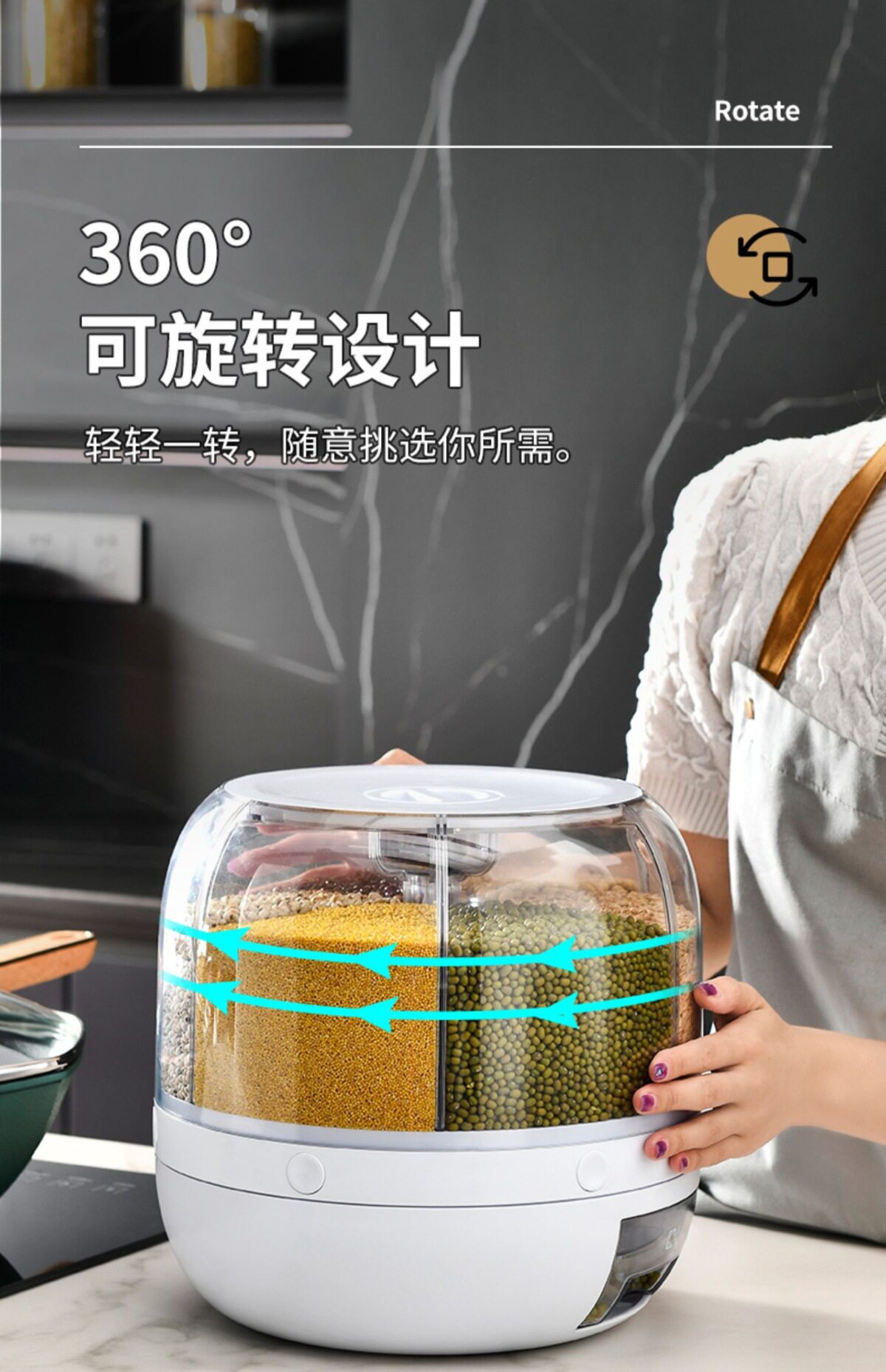Grain Storage Box with Dividers, Rotating Rice Container, Insect-Proof, Moisture-Proof, Sealed, Household 2025 New Model Rice Storage Box, Rice Jar