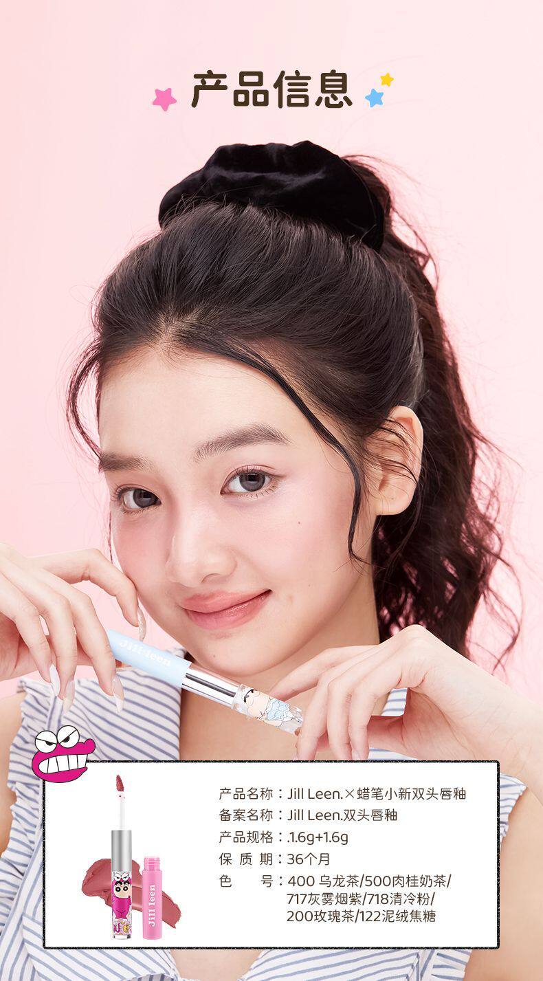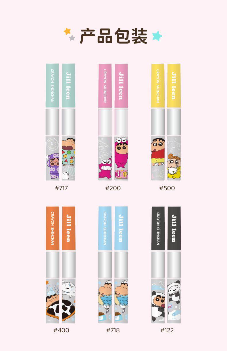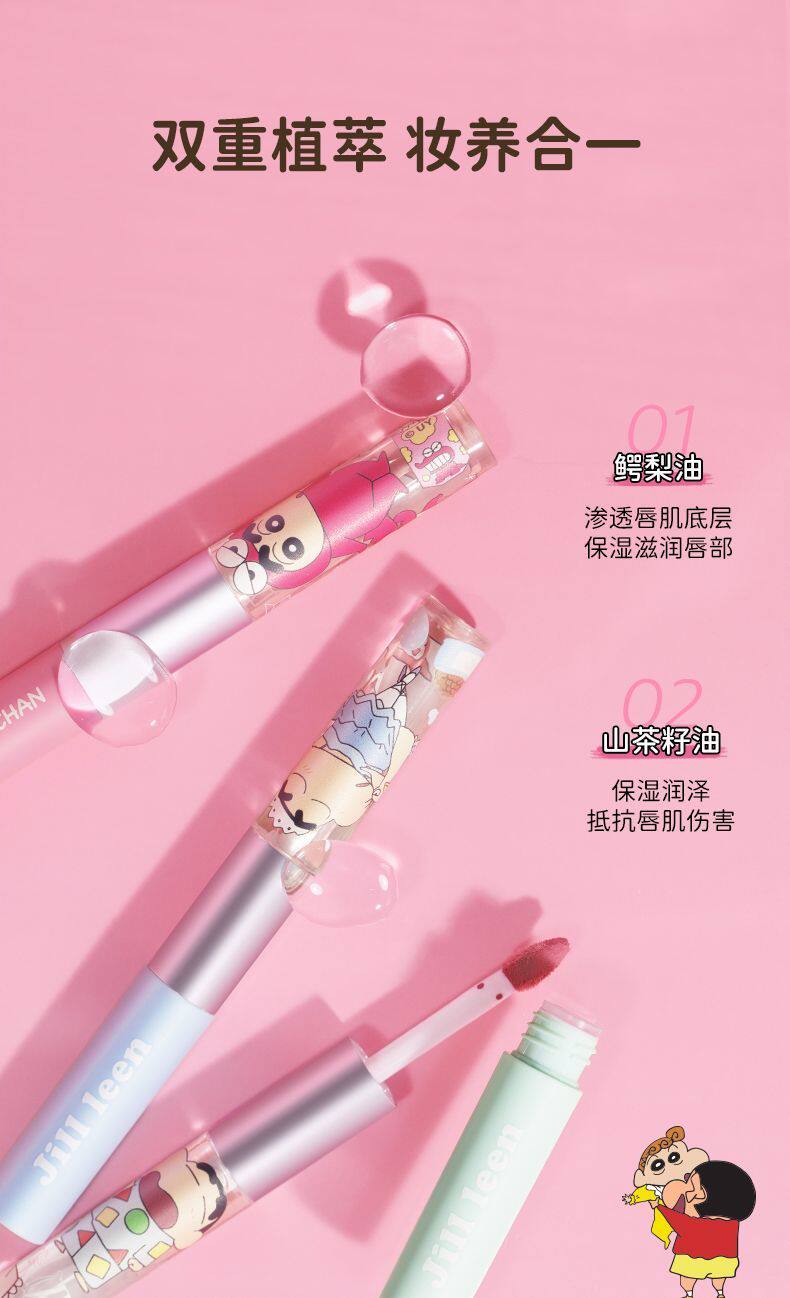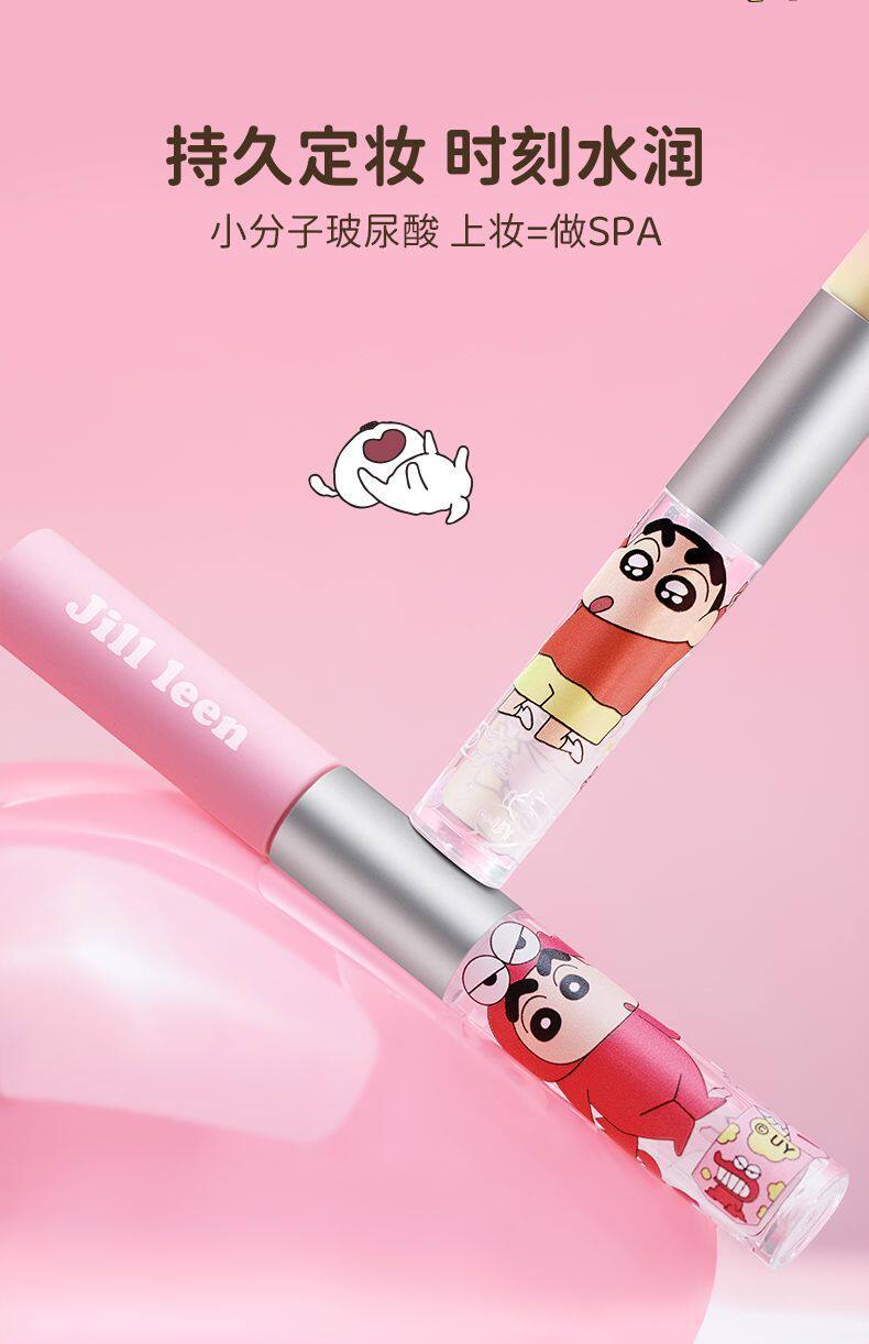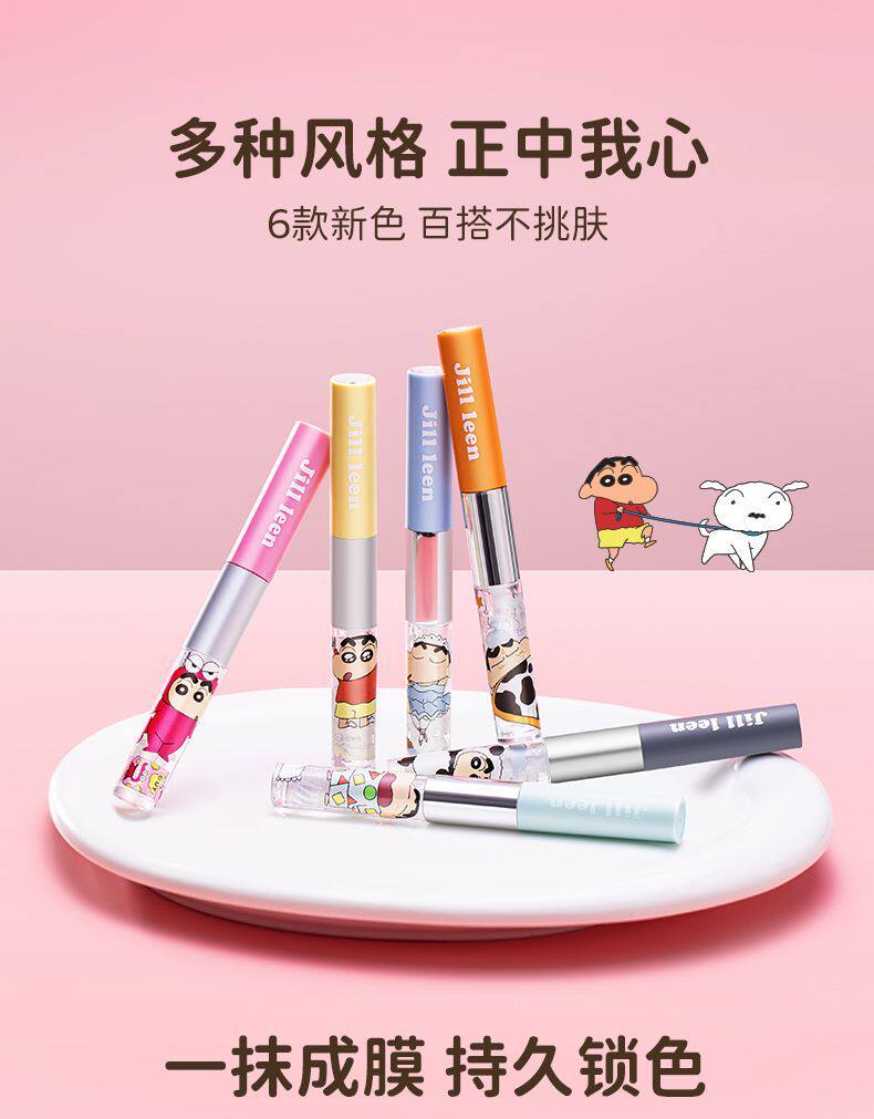 Jillleen Crayon Shin-Chan Collaboration Double-Ended Lip Glaze Matte Mirror Light Mist Velvet Lip Mud Women's Water Gloss Raincoat