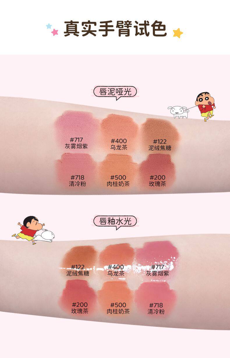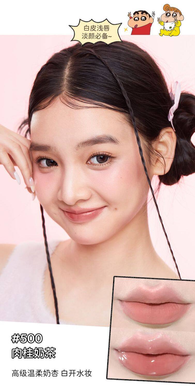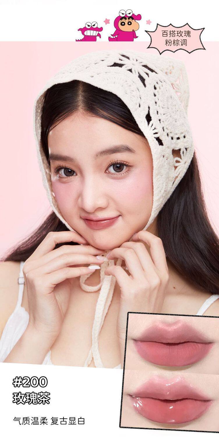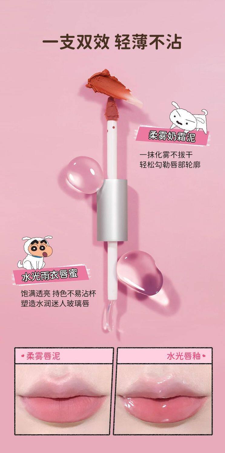 Jillleen Crayon Shin-Chan Collaboration Double-Ended Lip Glaze Matte Mirror Light Mist Velvet Lip Mud Women's Water Gloss Raincoat