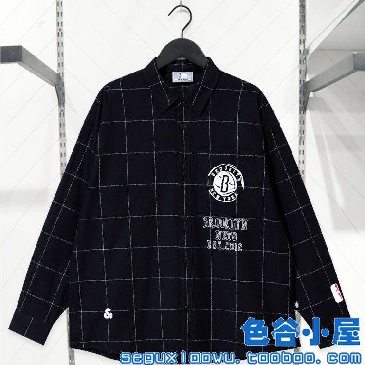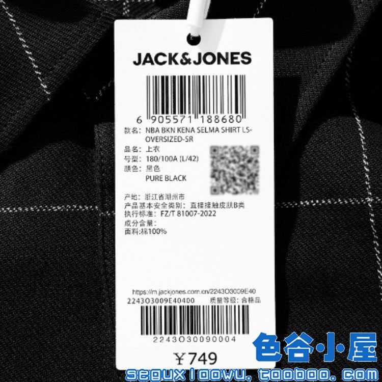 Jack Jones Collaboration Men's Black Loose Large Plaid Long-Sleeve Shirt 2243O3009