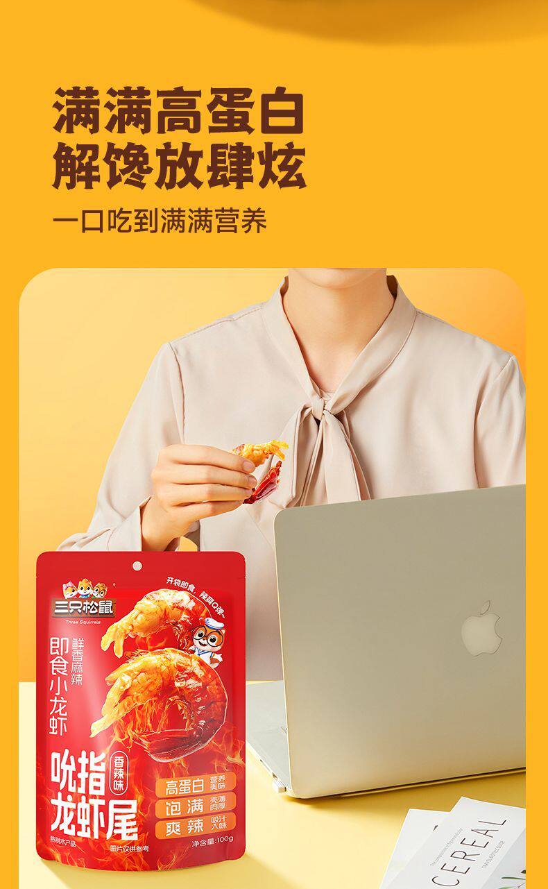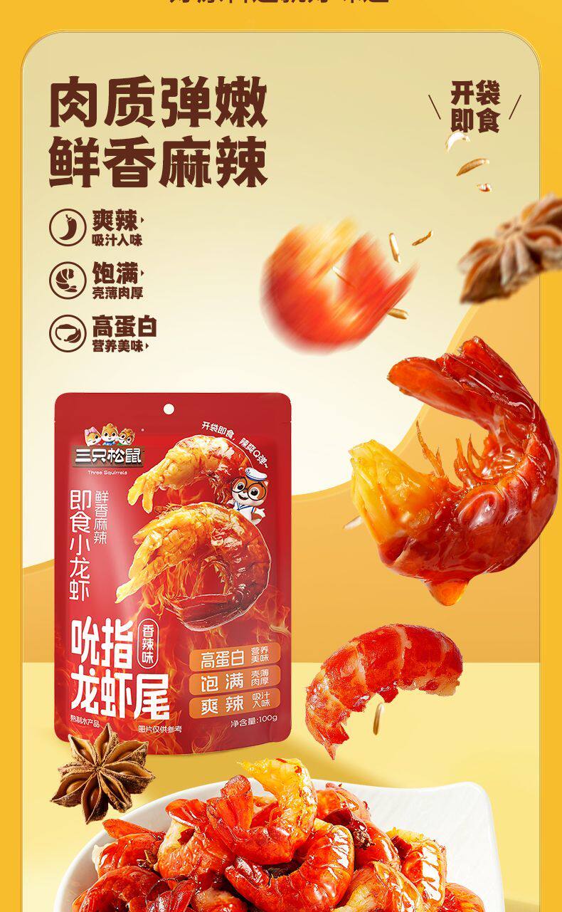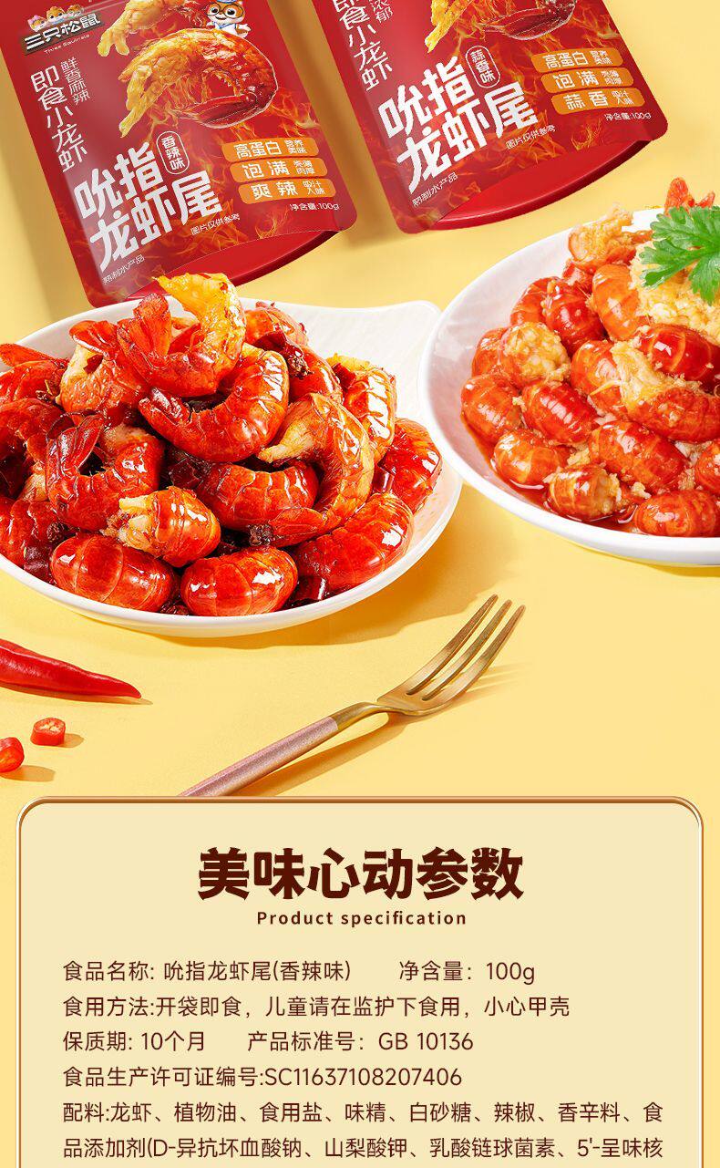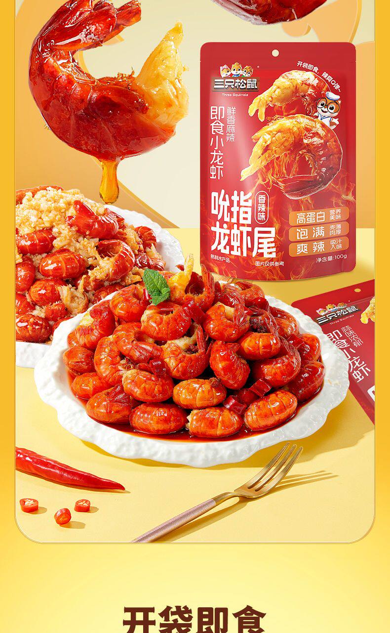 Three Squirrels Spicy Lobster Tails and Crayfish 100g - Spicy Ready-To-Eat Snack for Satisfying Cravings While Watching Shows