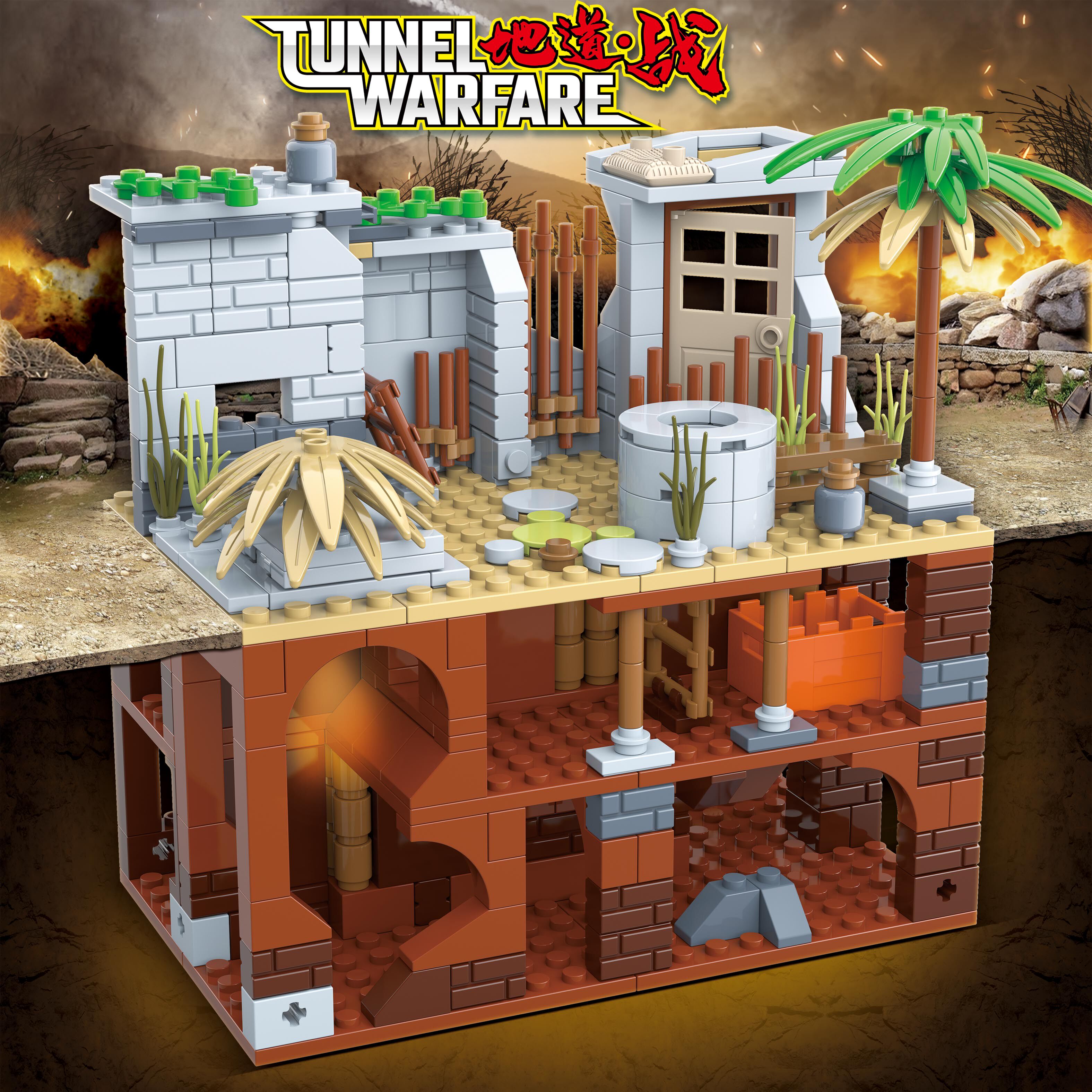 Suitable for Lego Bricks, Underground War Minifigures, Assembled Eighth Route Army Figures, Guerrilla Ruins, Trenches, Children's Toys