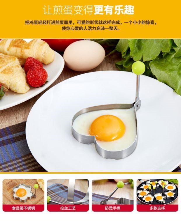 New Antibacterial Fried Egg Mold, Non-Stick Shaping Tool for Poached Eggs, Burgers, and Beef Patties, Heart-Shaped Breakfast Mold