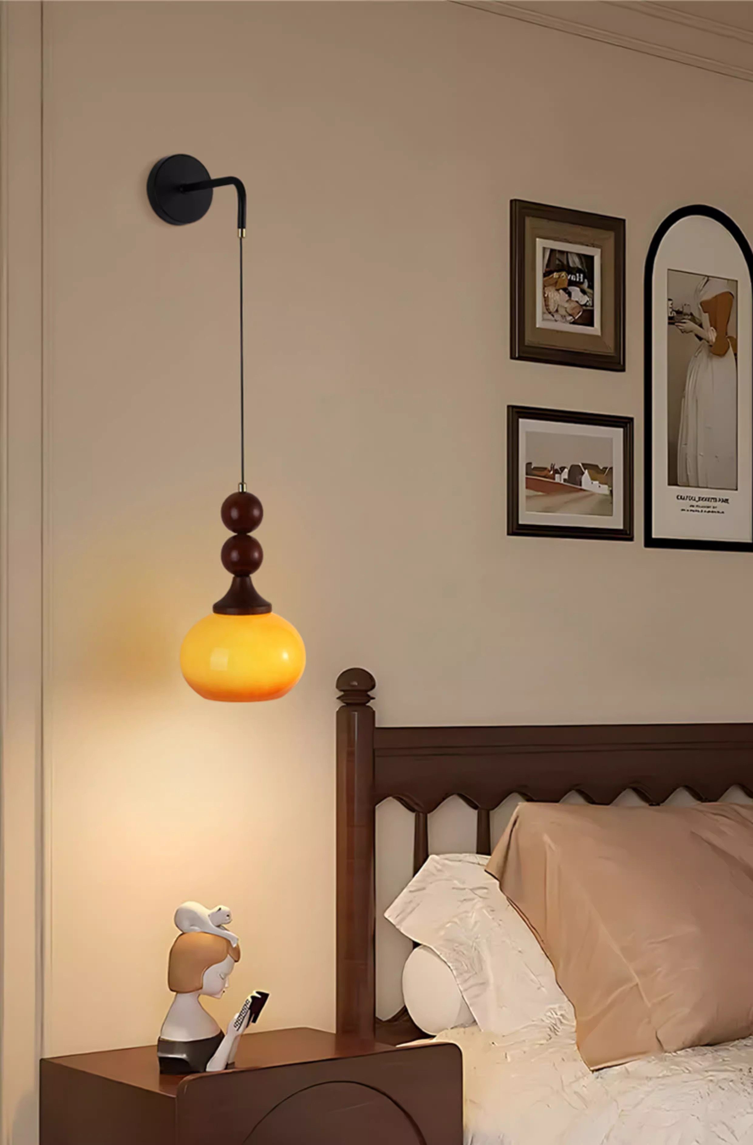 Retro Master Bedroom Bedside Chandelier with a High-End Feel, French Mid-Century Style, Solid Wood Gradient Color, American-Style Adjustable Small Chandelier