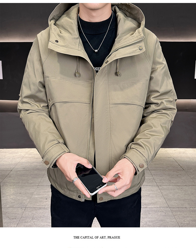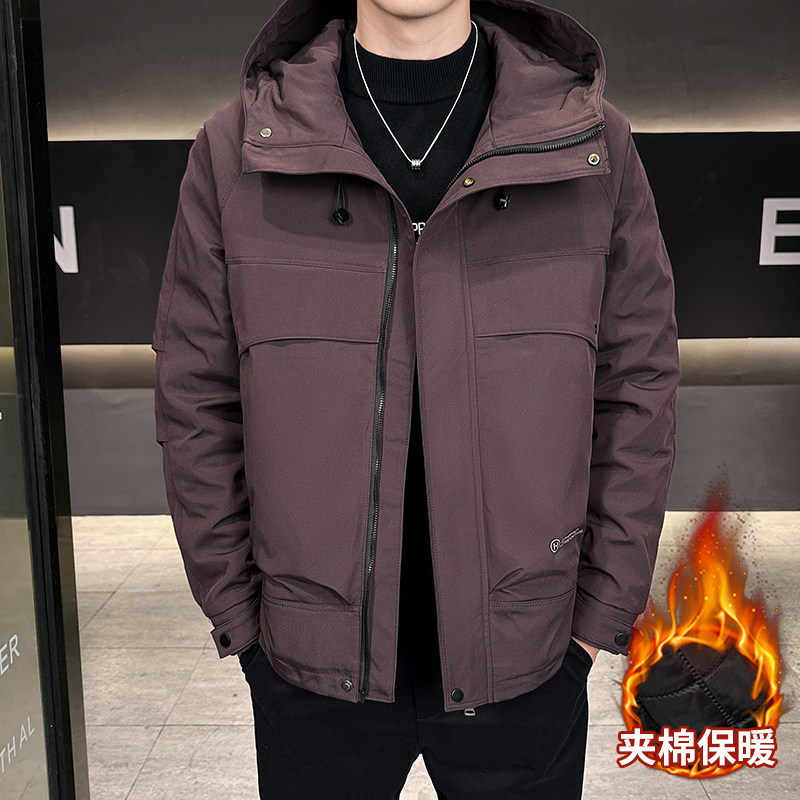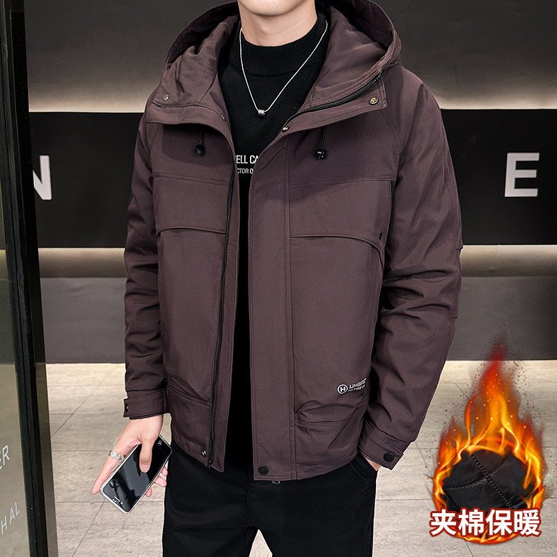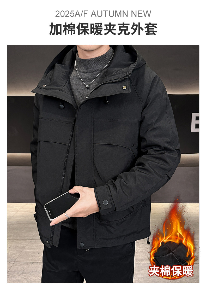 Men's Jacket 2025 Autumn and Winter Loose Trendy Brand Double Cotton Workwear Jacket Warm Thickened Hooded Cotton Coat