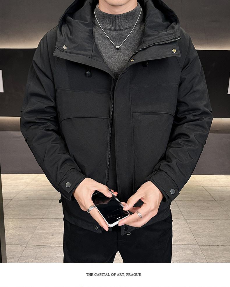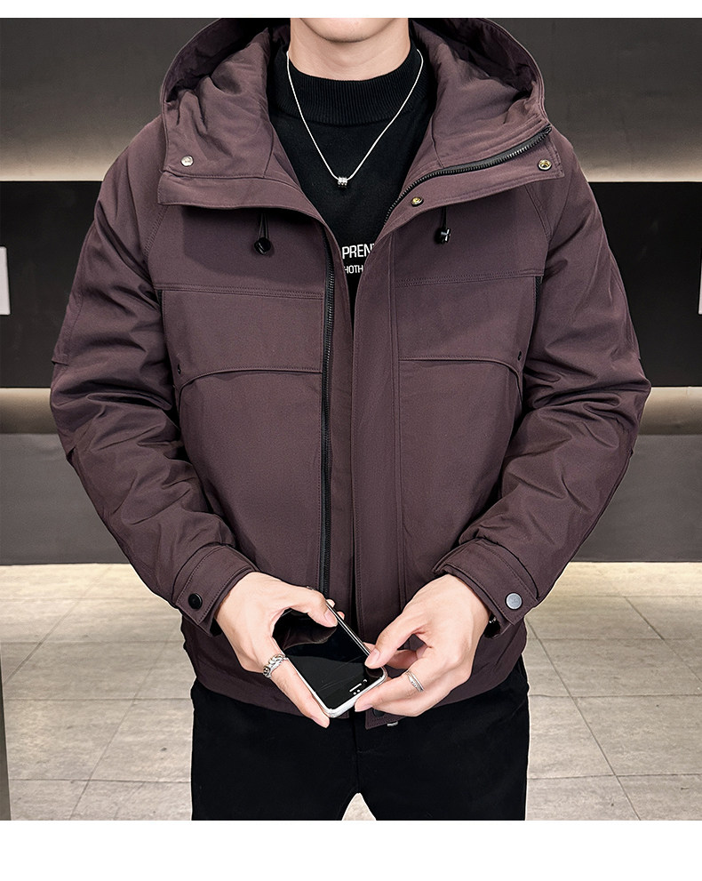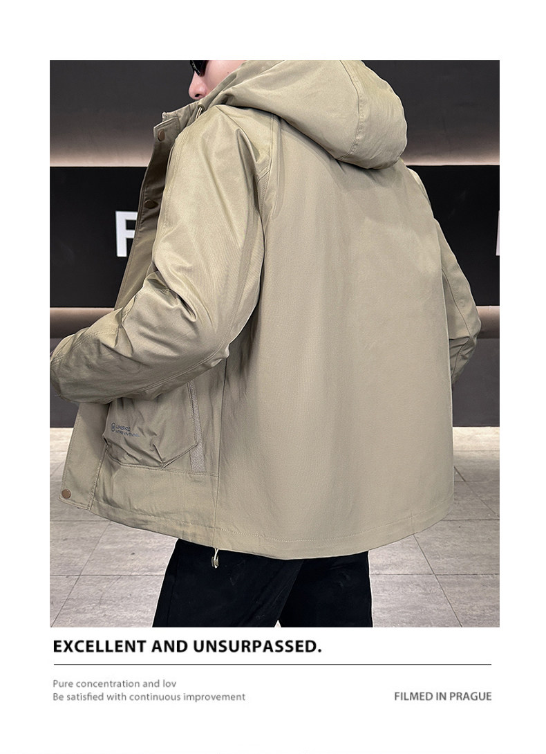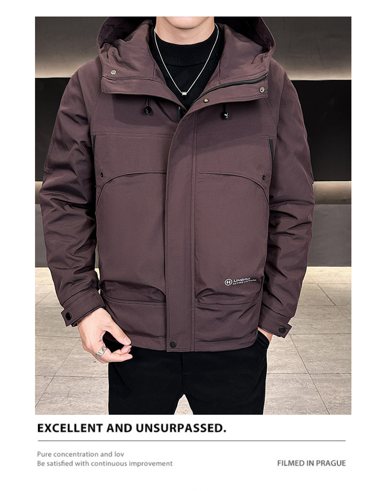 Men's Jacket 2025 Autumn and Winter Loose Trendy Brand Double Cotton Workwear Jacket Warm Thickened Hooded Cotton Coat