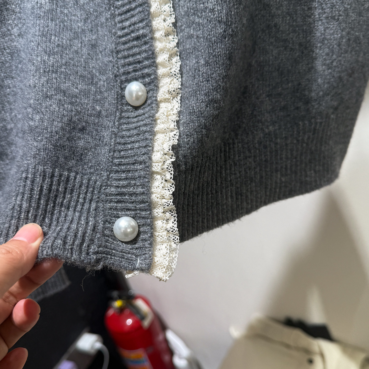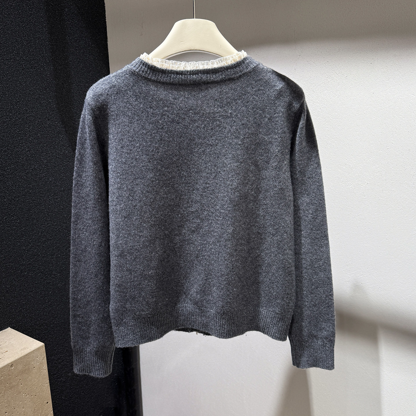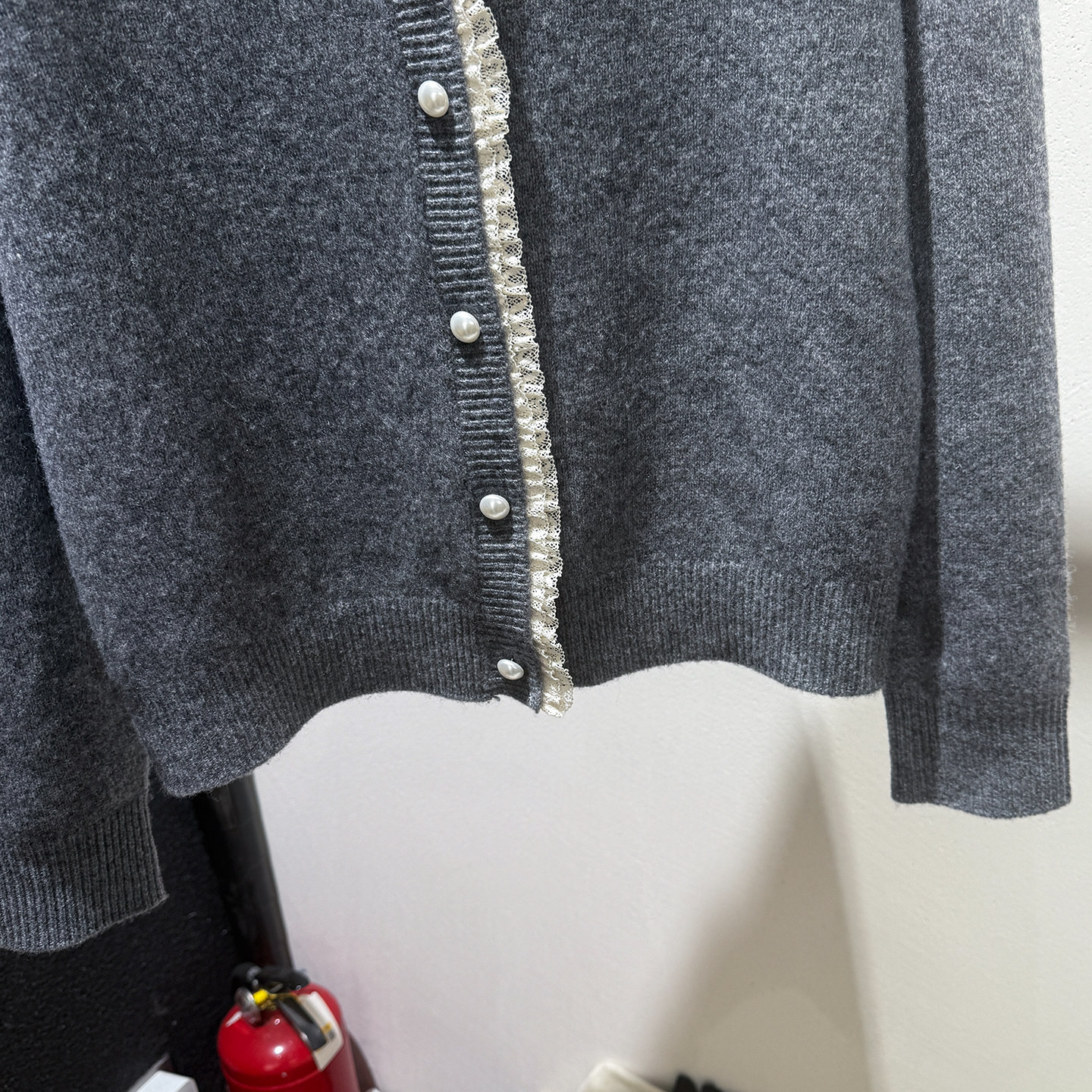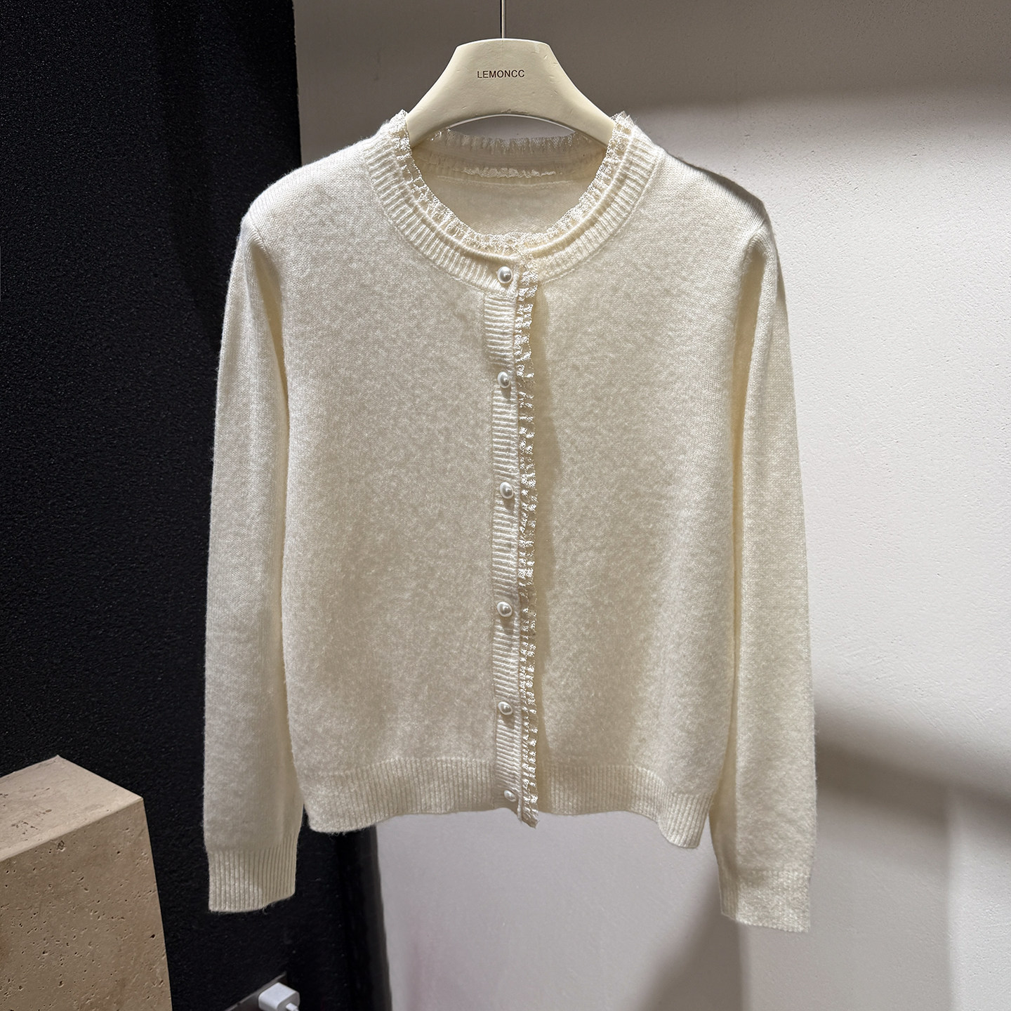 [Special Clearance] Lace-Trimmed Pearl Button 100% Wool Round-Neck Knitted Cardigan Sweater Jacket for Women