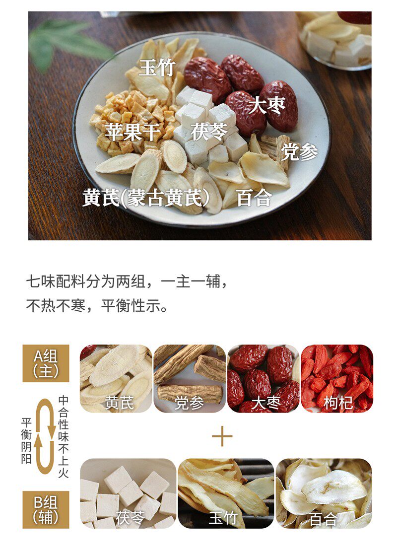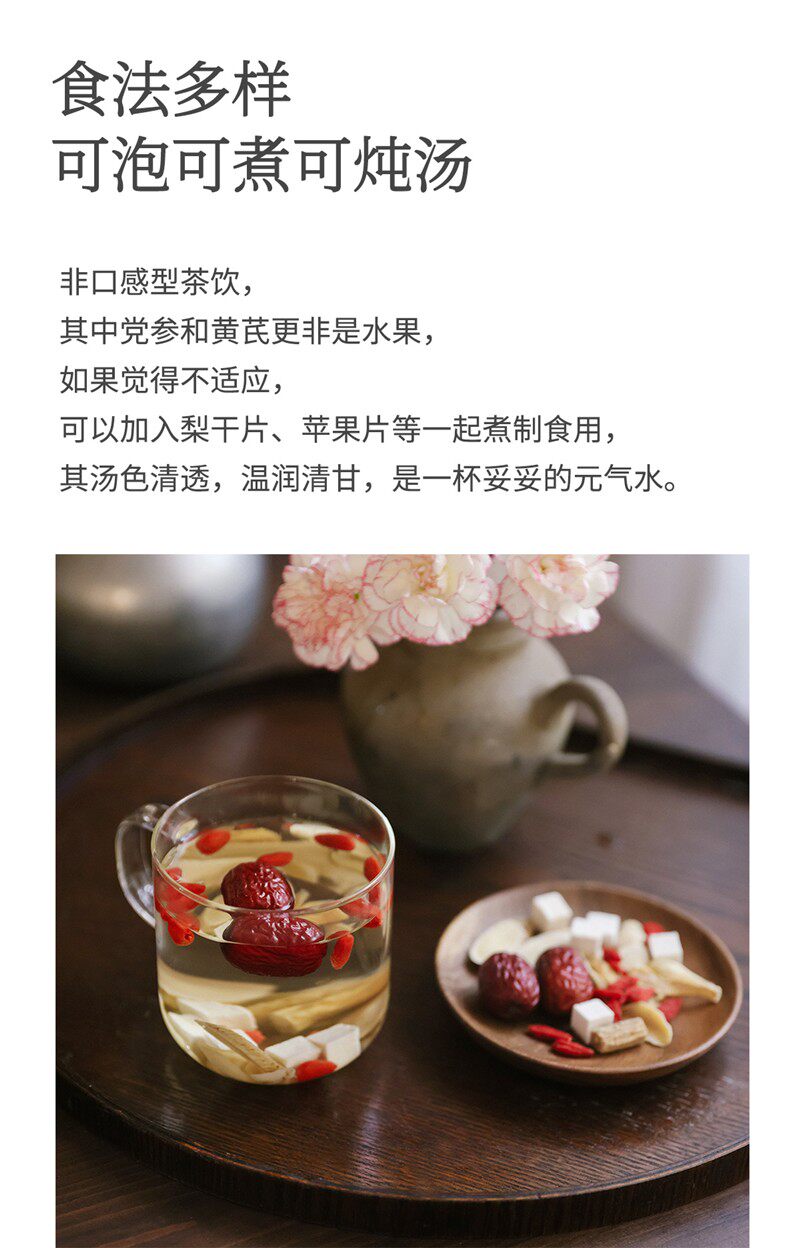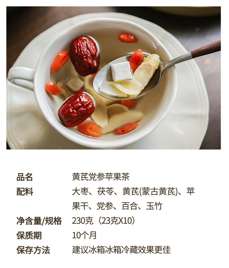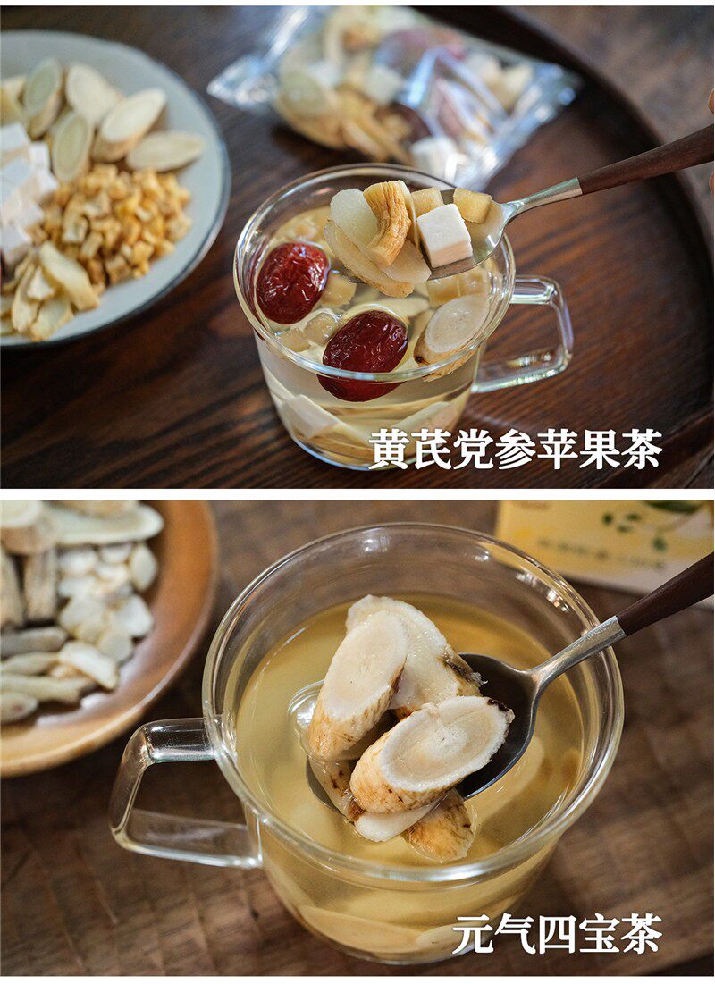 Taste Astragalus and Codonopsis Tea [Jujube, Poria, Astragalus (Astragalus Mongholicus), Wolfberry, Codonopsis, Lily, Polygonatum Odoratum],Astragalus and Codonopsis Tea [2 Boxes, 20 Bags in Total],Astragalus Codonopsis Apple Tea [2 Boxes, 20 Bags in Total],1 Box of Astragalus and Codonopsis Tea + 1 Box of Astragalus, Codonopsis and Apple Tea,Vitality Four Treasures Tea [Astragalus, Ophiopogon Japonicus, Codonopsis Pilosula, American Ginseng],Yuanqi Four Treasures Tea [2 Boxes, 16 Bags in Total],1 Box of Astragalus and Codonopsis Tea + 1 Box of Astragalus, Codonopsis and Apple Tea + 1 Box of Vitality Four Treasures Tea,Astragalus, Codonopsis, and Apple Tea [Jujube, Poria, Astragalus (Astragalus Mongolensis), Dried Apple, Codonopsis, Lily, Polygonatum Odoratum]