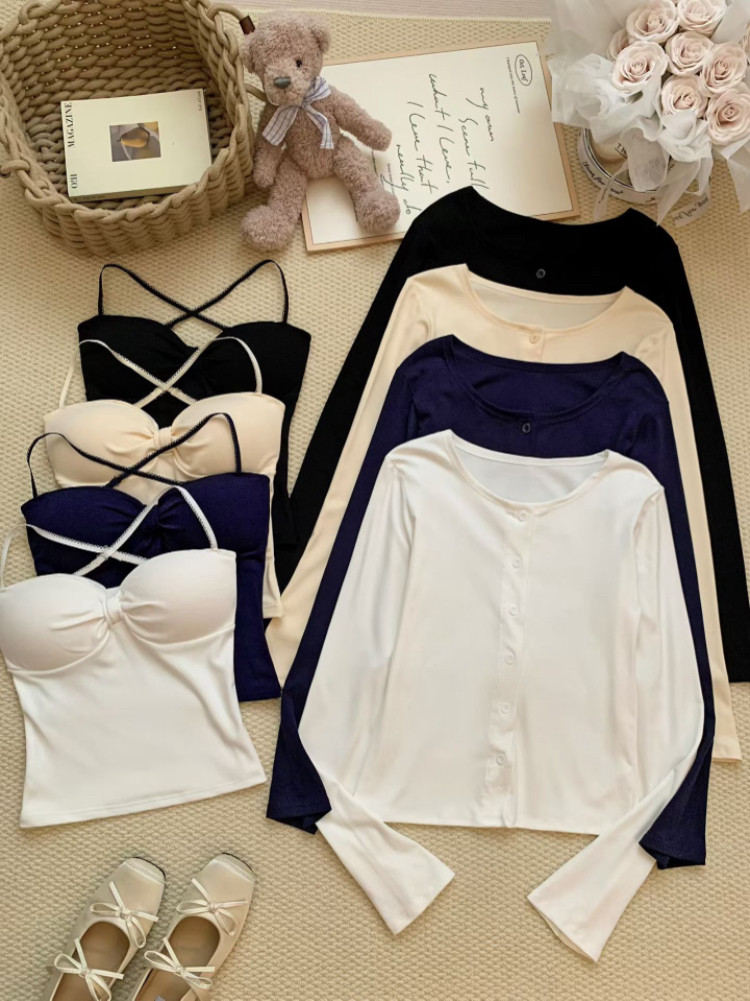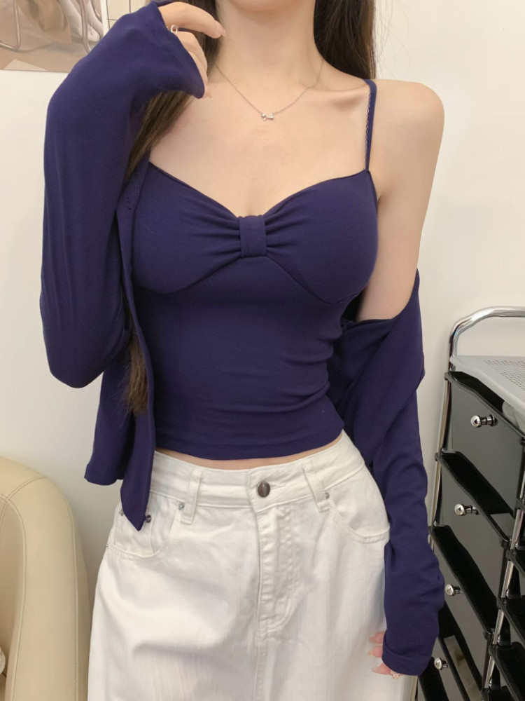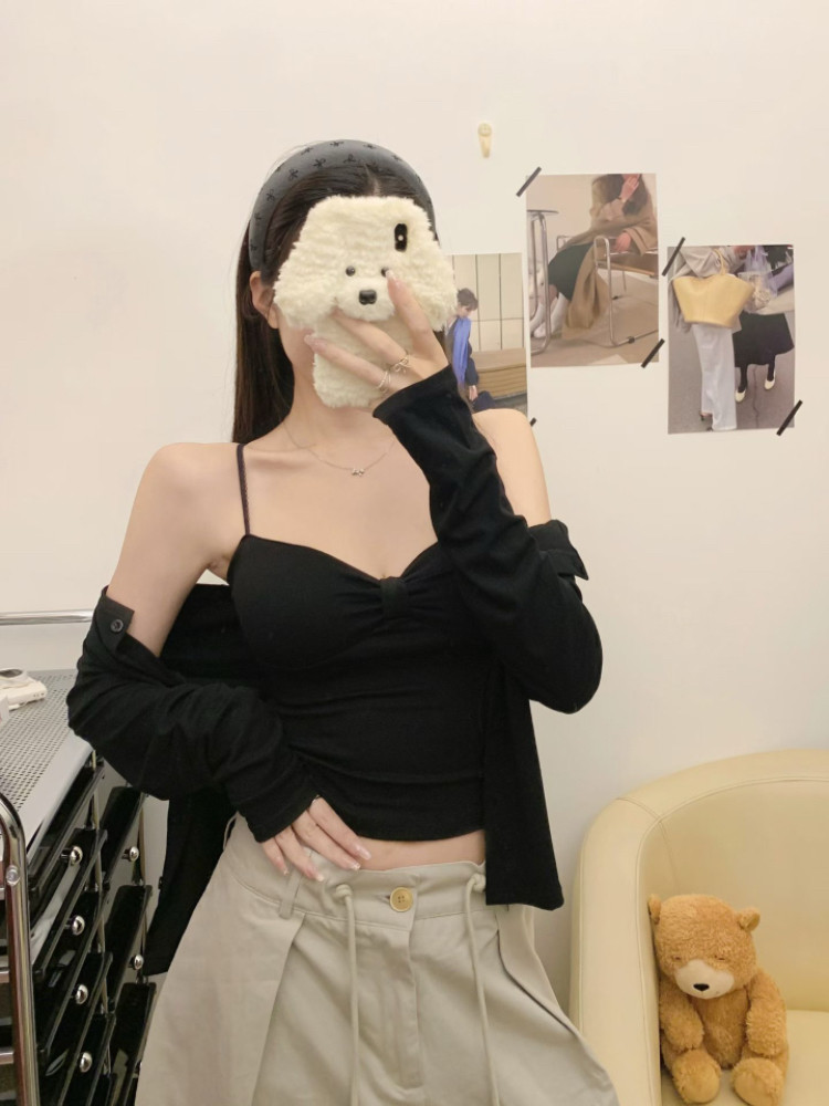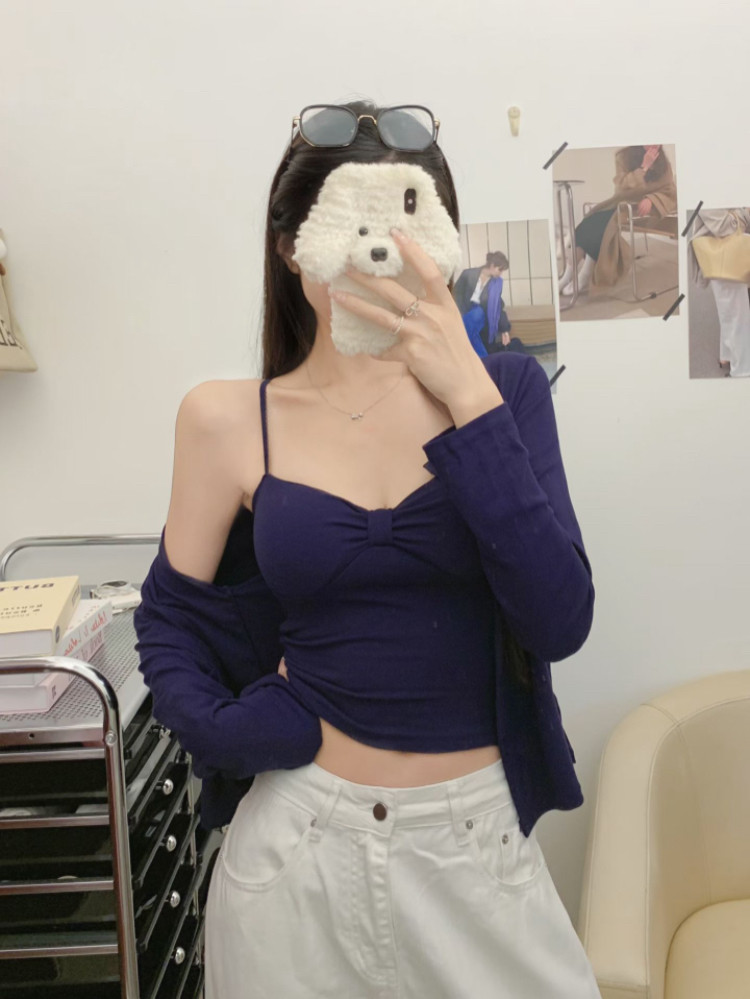 Color Classification White Camisole + White Cardigan,Apricot Sling + Apricot Cardigan,Black Camisole + Black Cardigan,Navy Blue Suspender + Navy Blue Cardigan