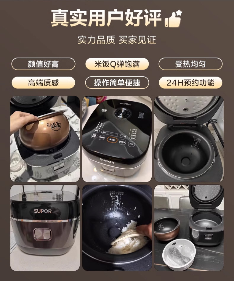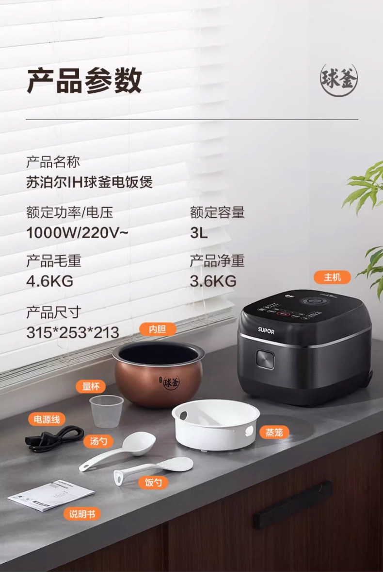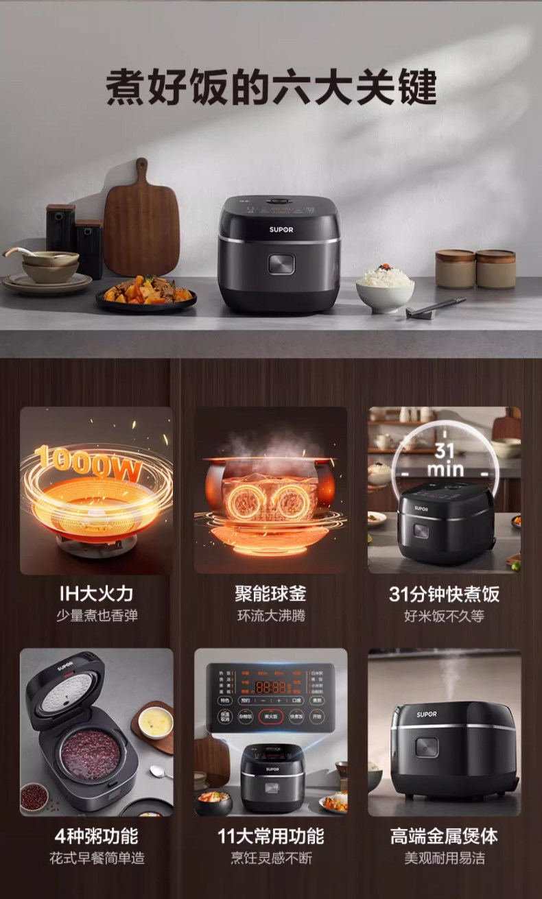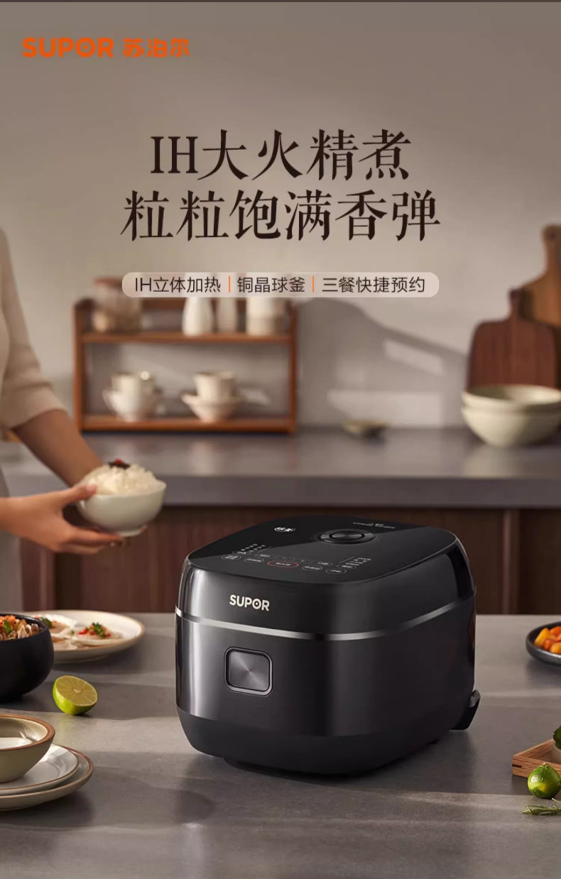 Supor Electric Rice Cooker for Home Use, 3-Liter Ih Ball Kettle Rice Cooker, Multifunctional Smart Wood-Fired Rice Cooker, Official Flagship Store, for 2-4 People