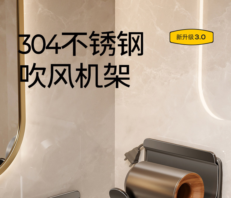 German High-End 304 Stainless Steel Hair Dryer Holder, No-Drill Bathroom Shelf, Wall-Mounted Bathroom Hair Dryer Stand