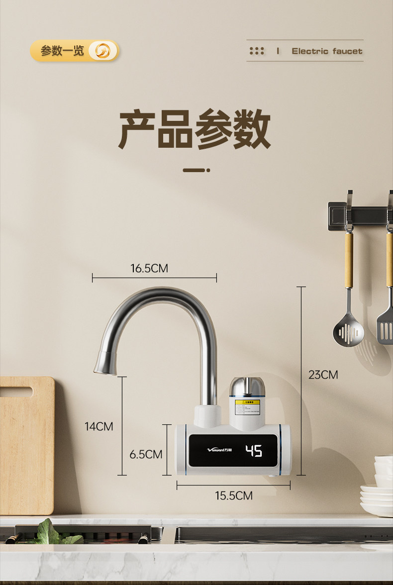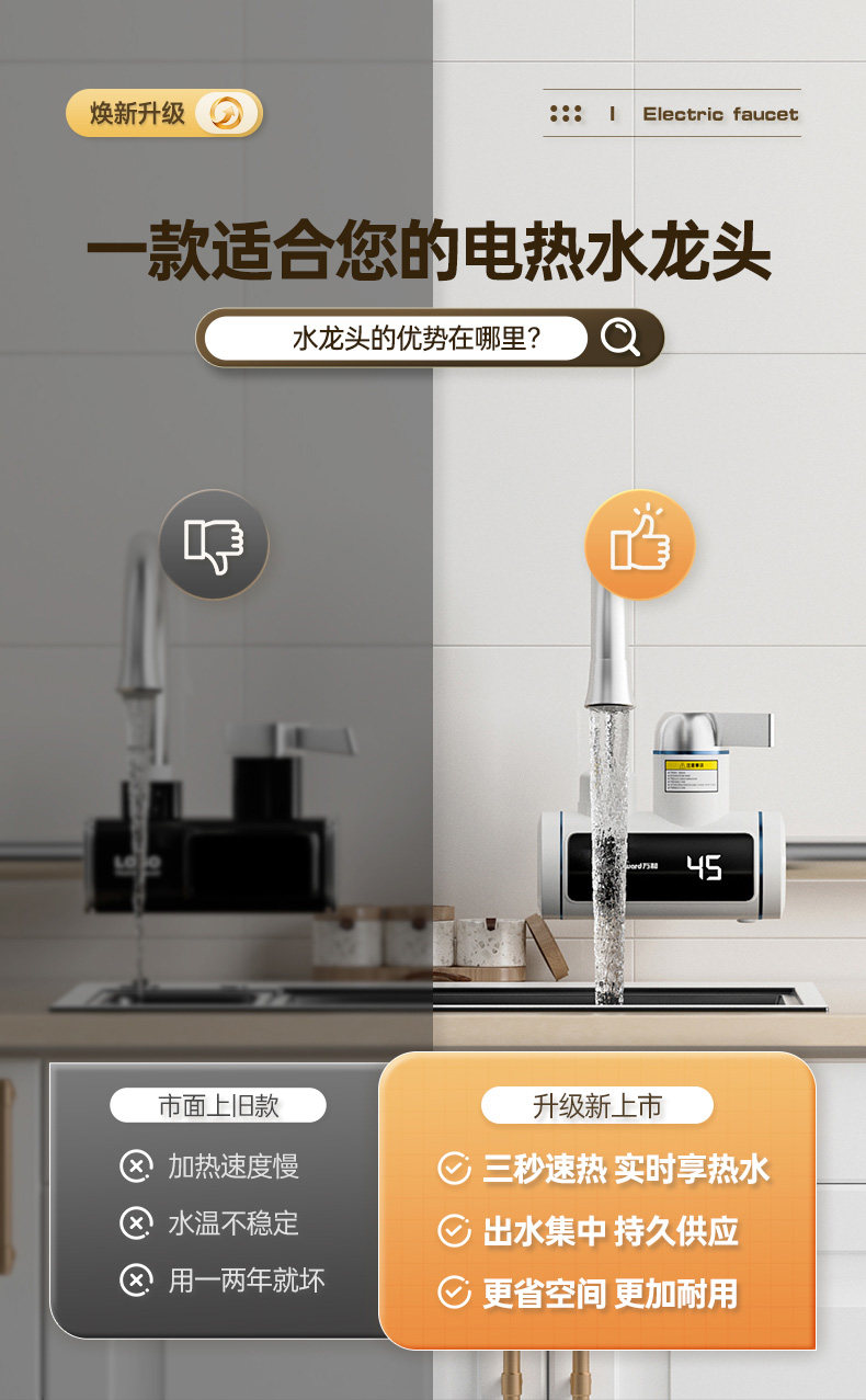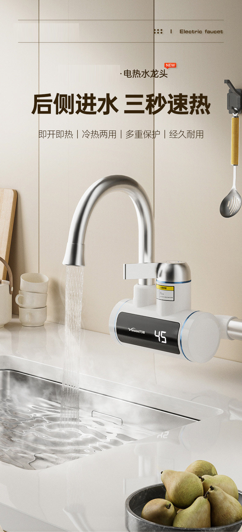 Household Electric Hot Water Faucet with Instant Heating, Side Inlet, Kitchen Appliance, Water Heater, Small-Sized Water Heater