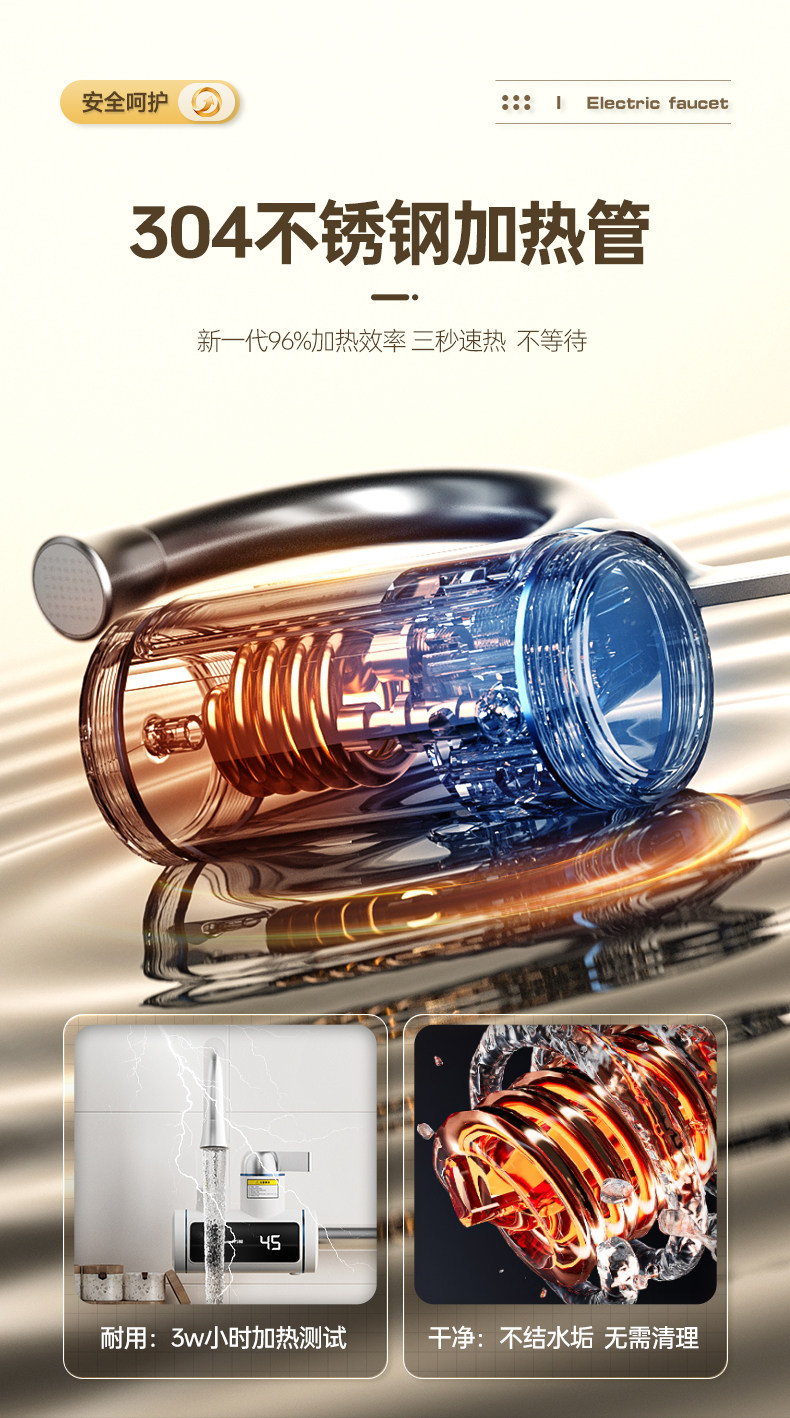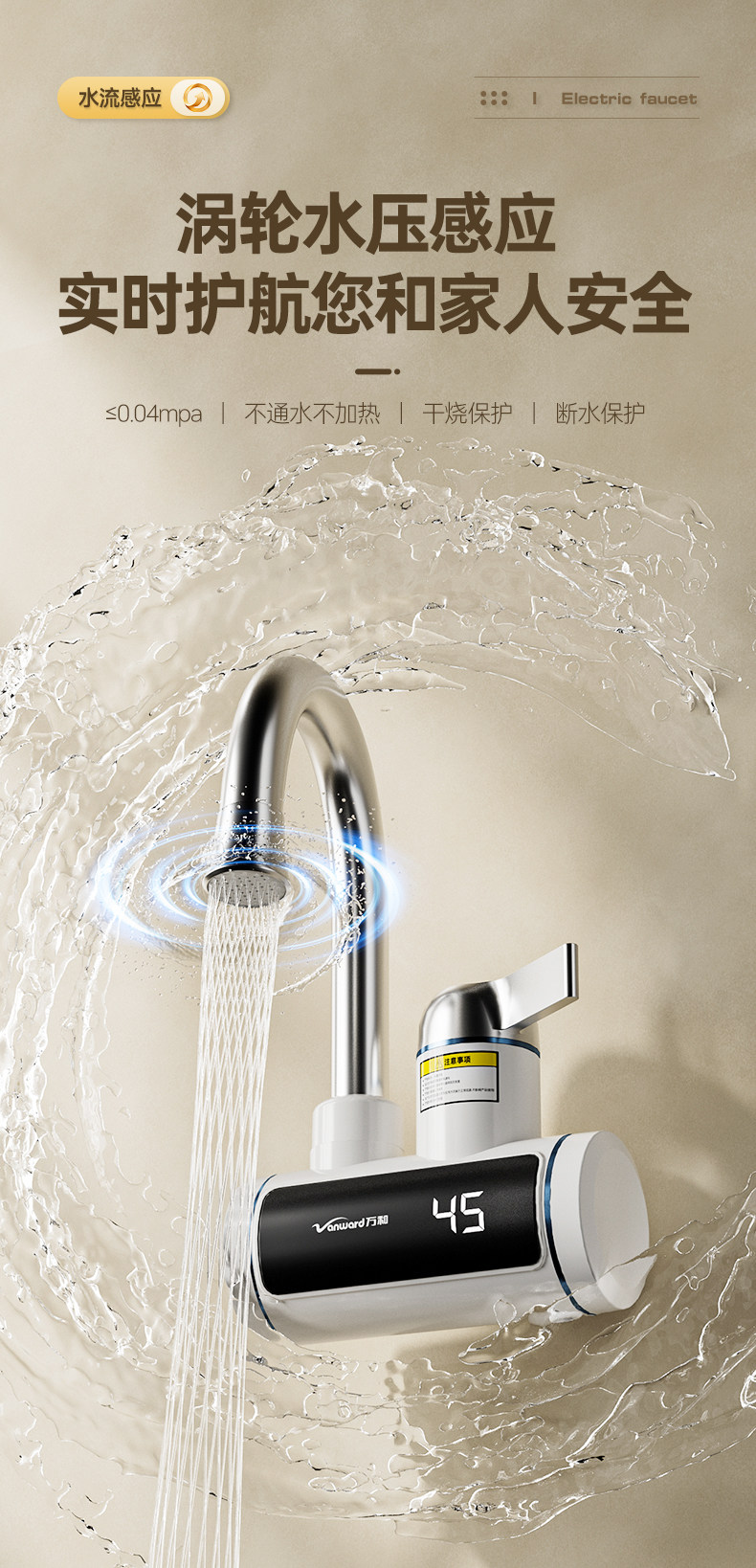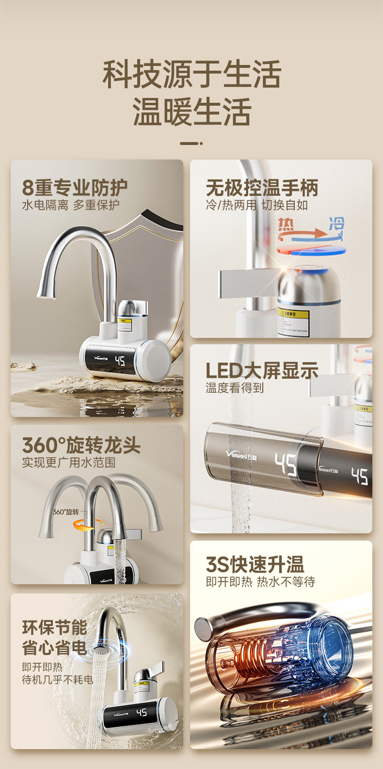Household Electric Hot Water Faucet with Instant Heating, Side Inlet, Kitchen Appliance, Water Heater, Small-Sized Water Heater