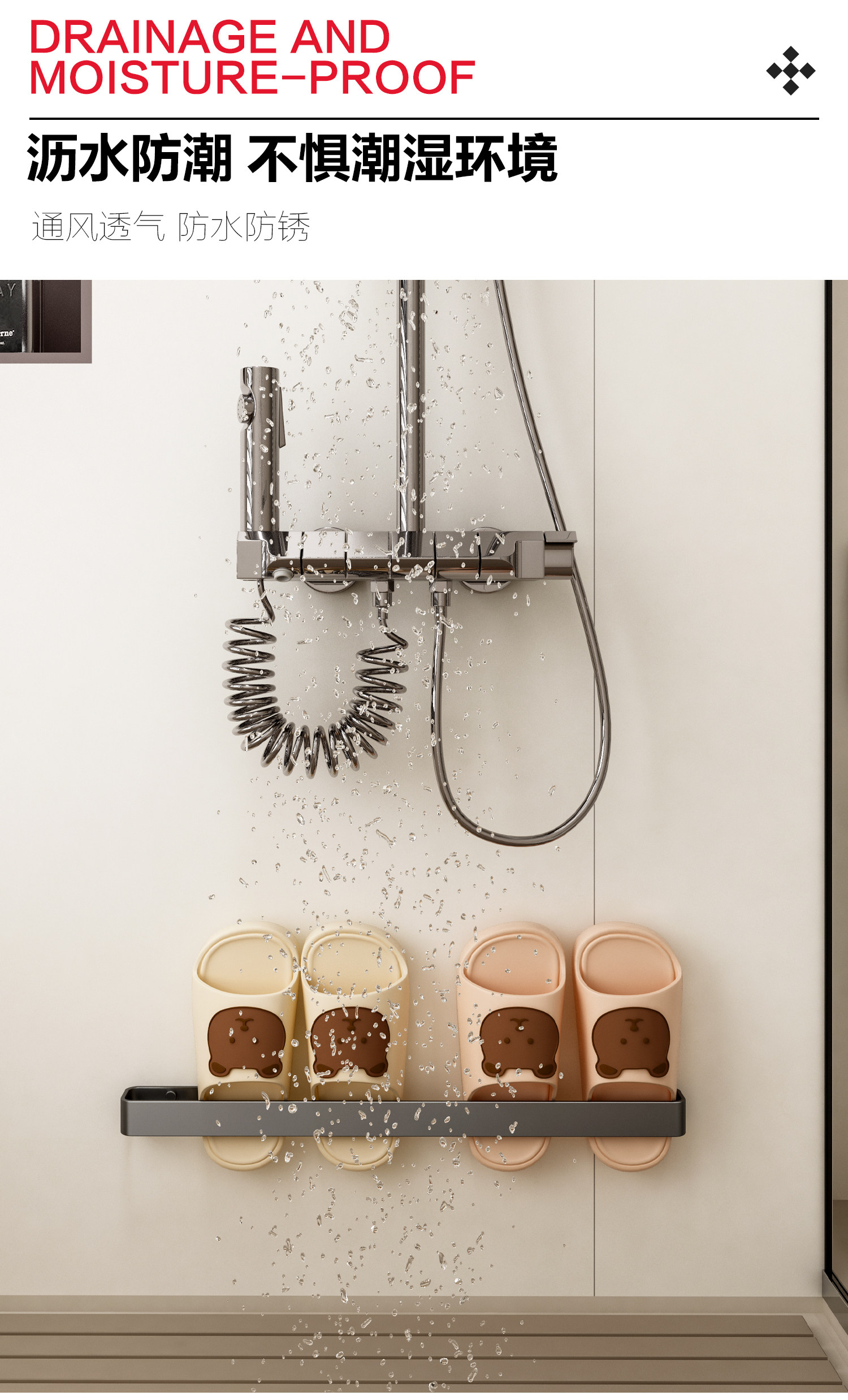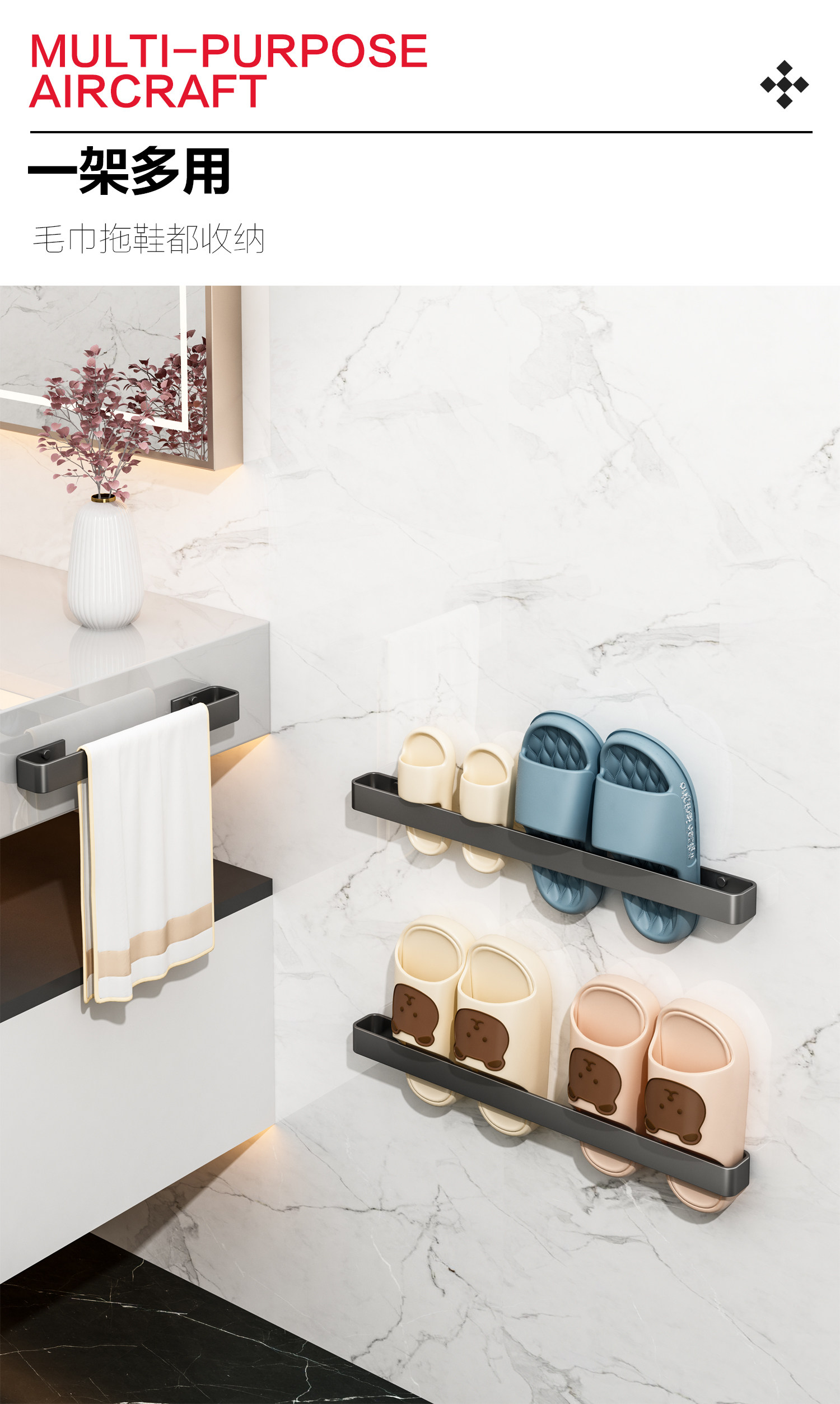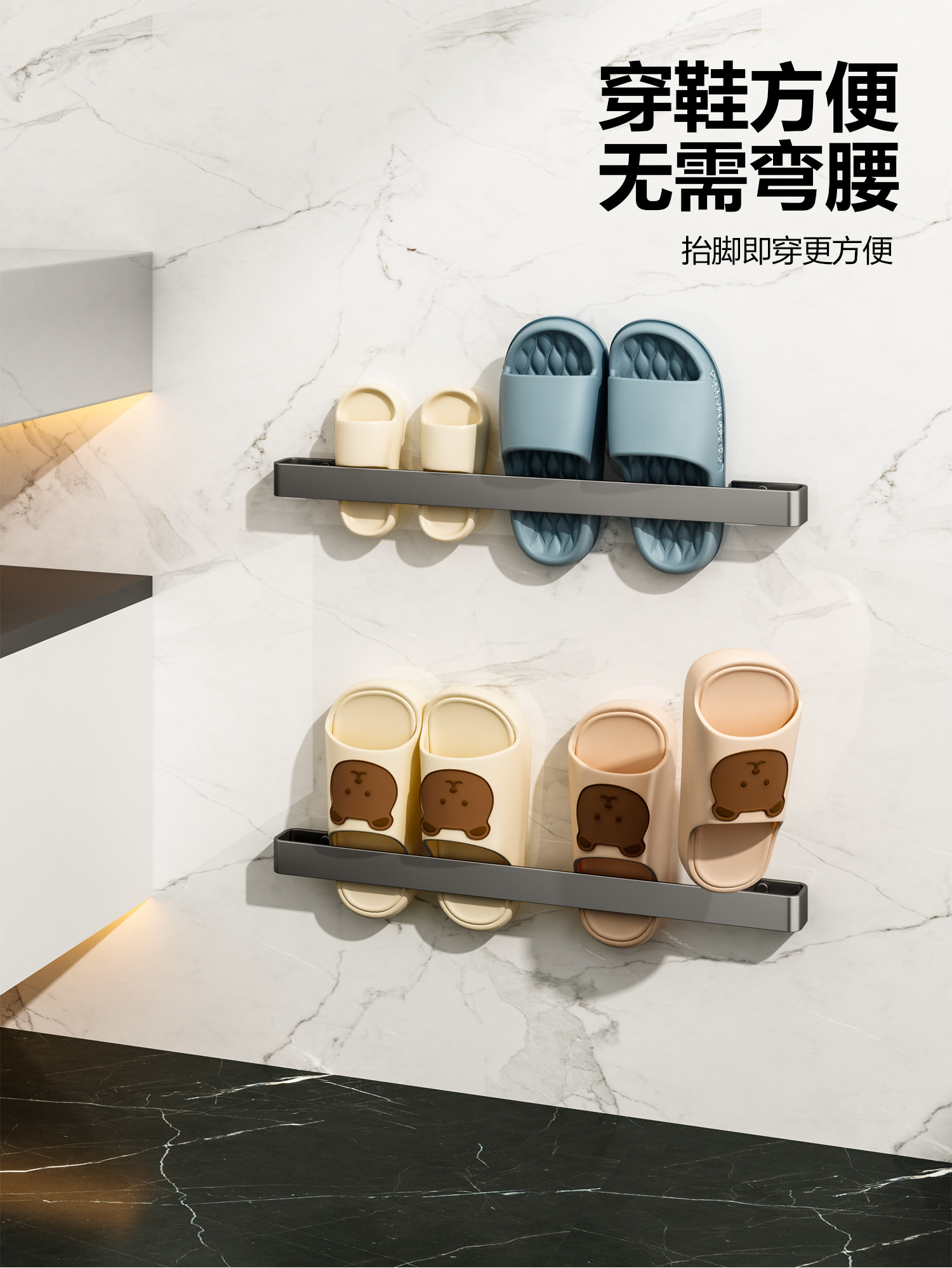Bathroom Slipper Rack, Toilet Slipper Storage Rack, Wall-Mounted Slipper Draining Rack, Shoe Storage Organizer