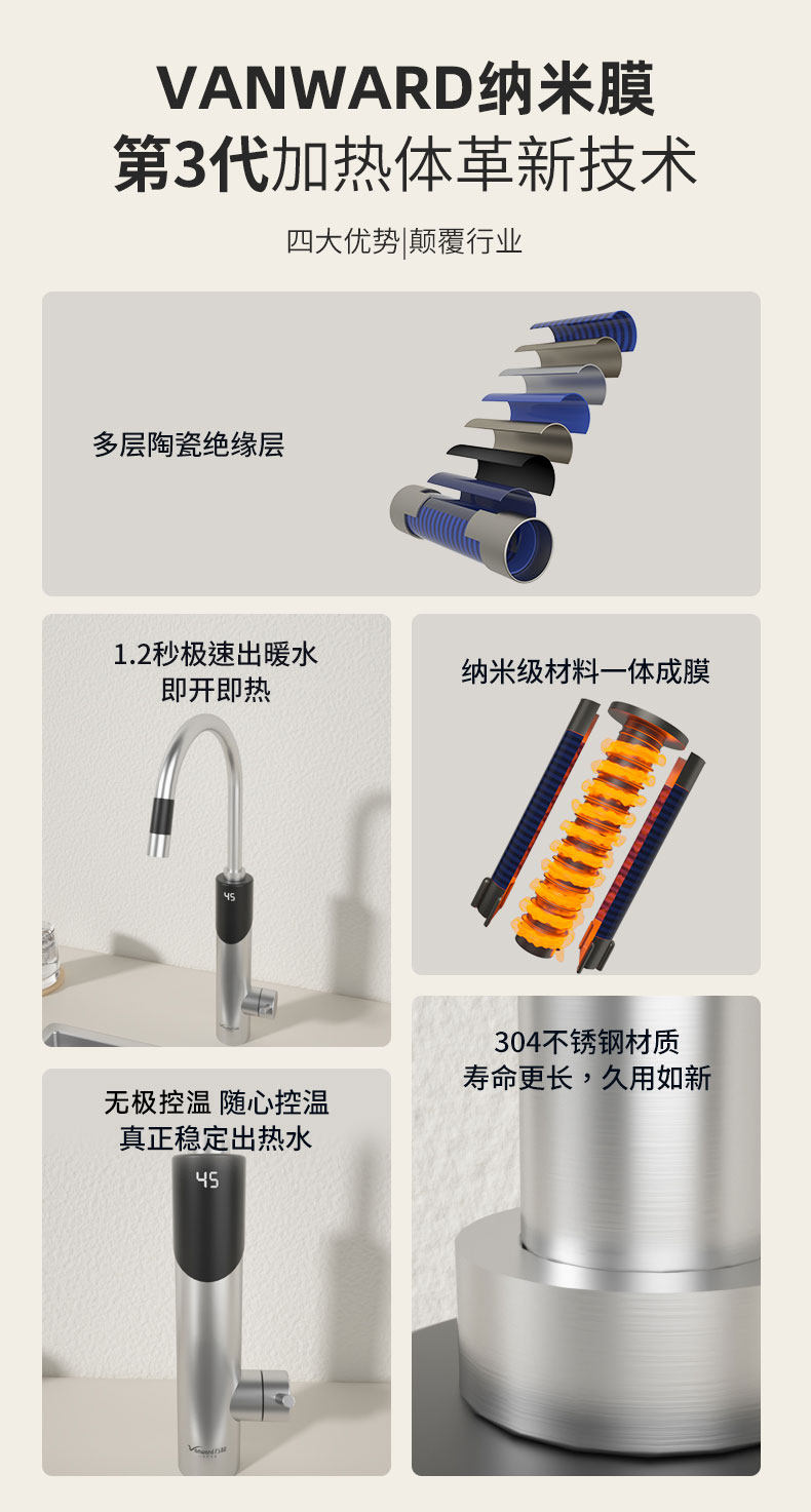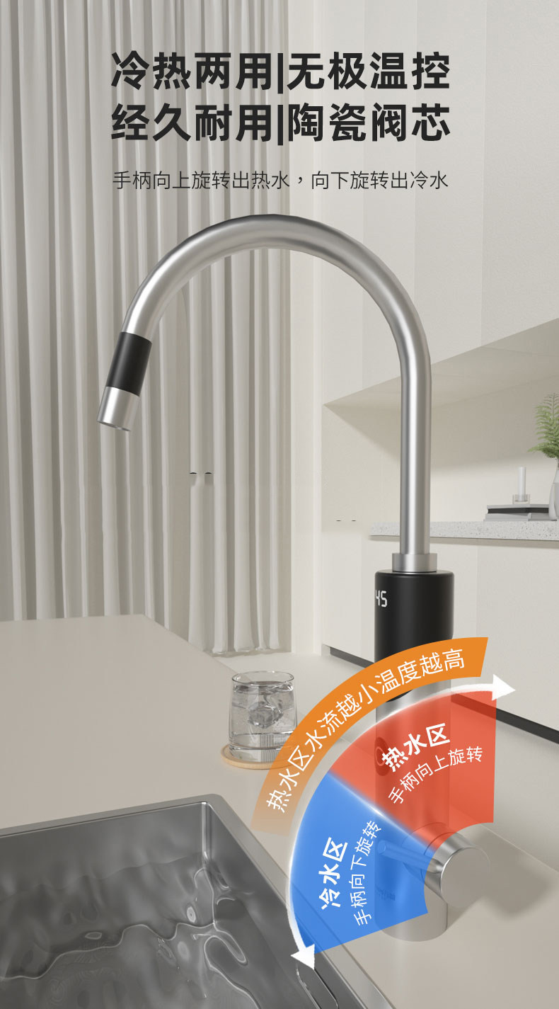 Electric Hot Water Faucet, Fast Heating, Instant Hot Water for Bathroom, Household Kitchen Appliance, Tap Water Hot and Cold Water Heater