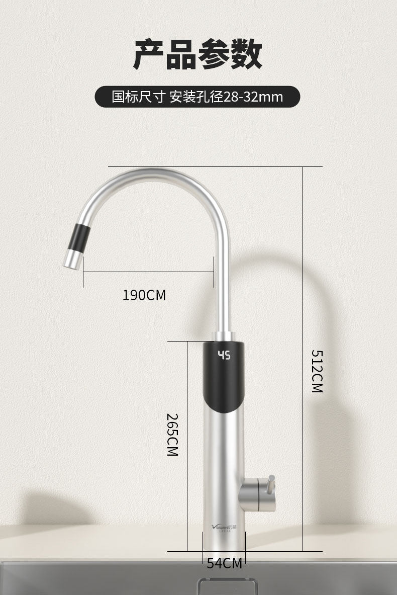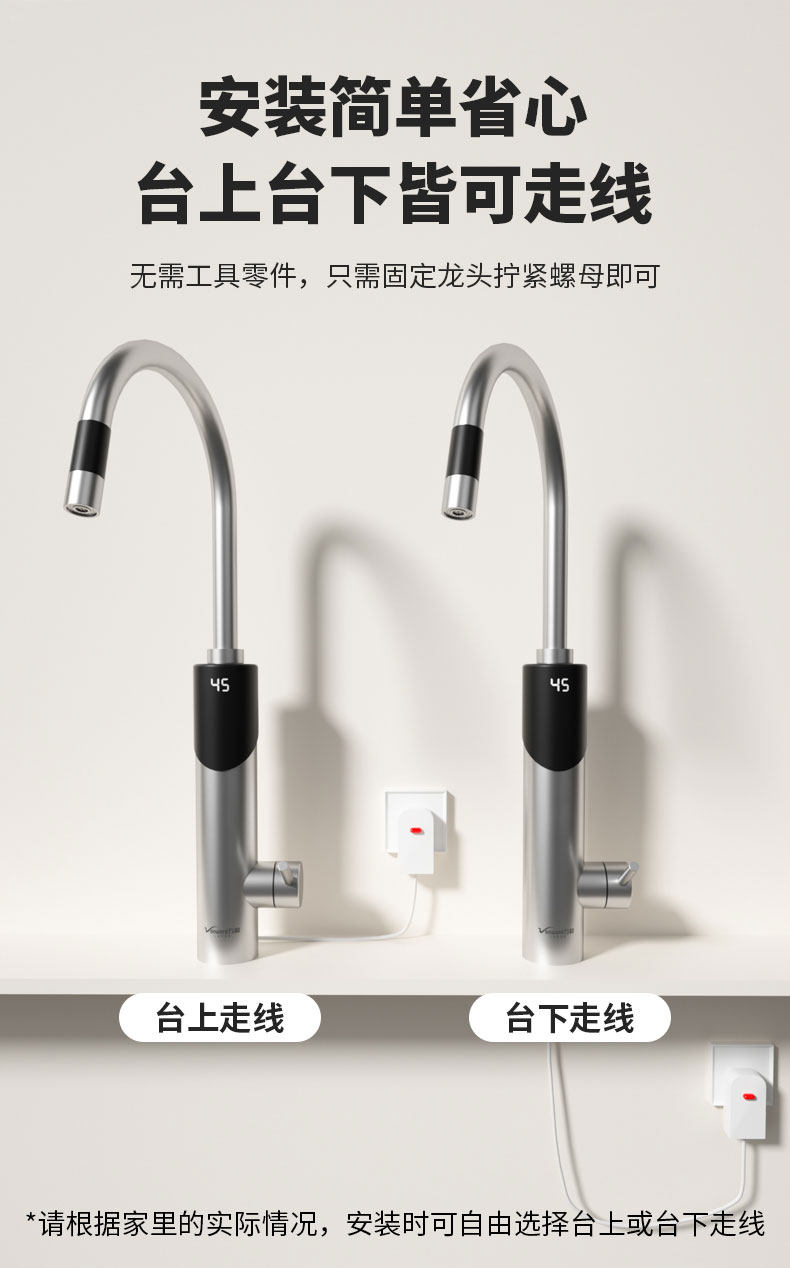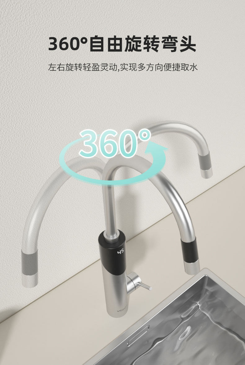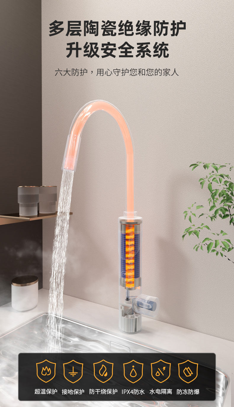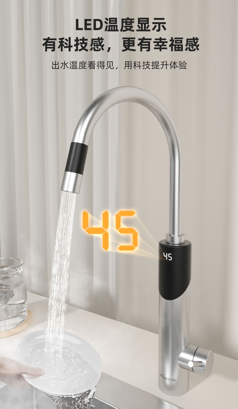 Electric Hot Water Faucet for Home Kitchen, Bathroom, Balcony, Stainless Steel Small-Scale Inverter Water Heater