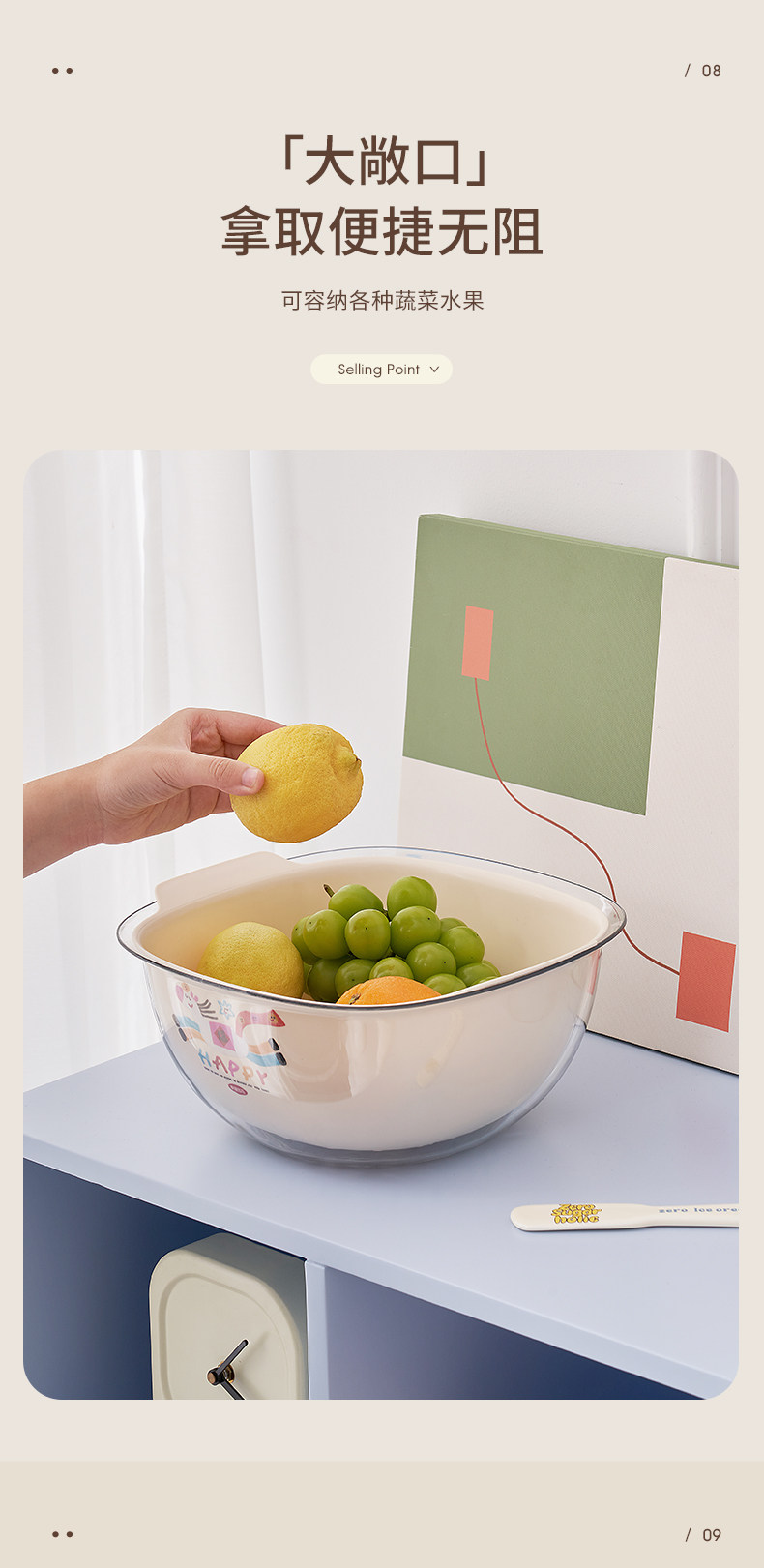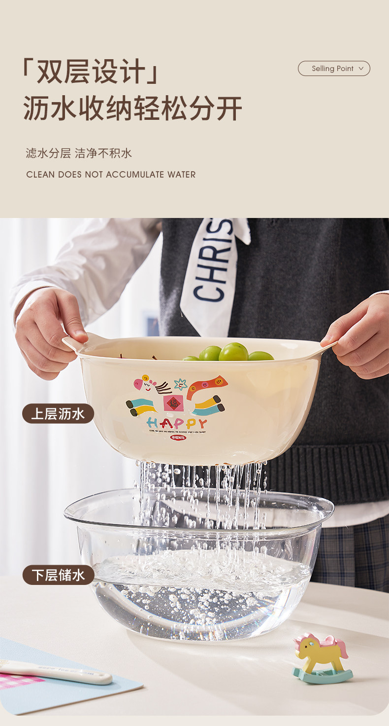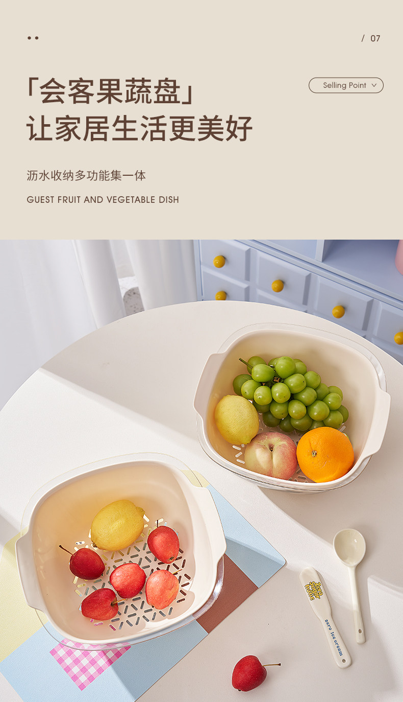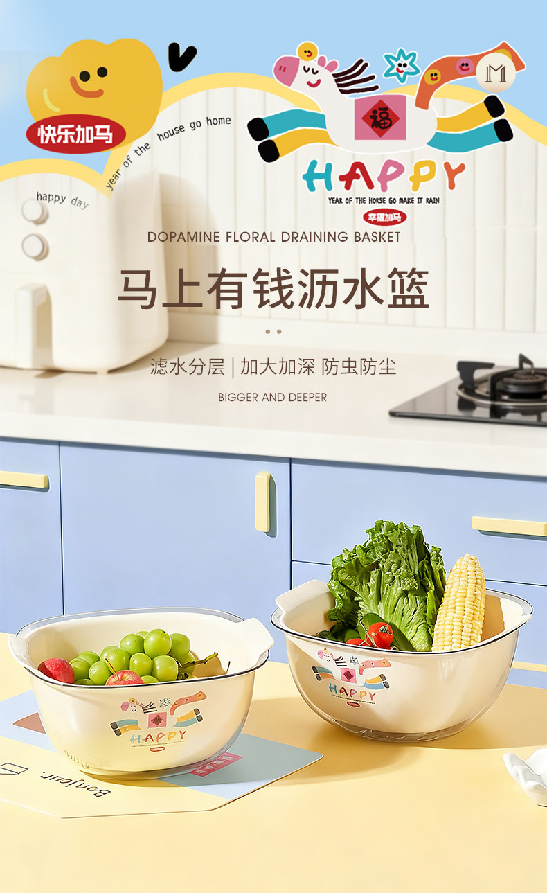 Color Classification "Get Rich Quick Series - Fruit & Vegetable Drain Basket",【Special Offer: Two-Pack】 Kitchen Essential: Vegetable Washing Basket & Fruit Drainer