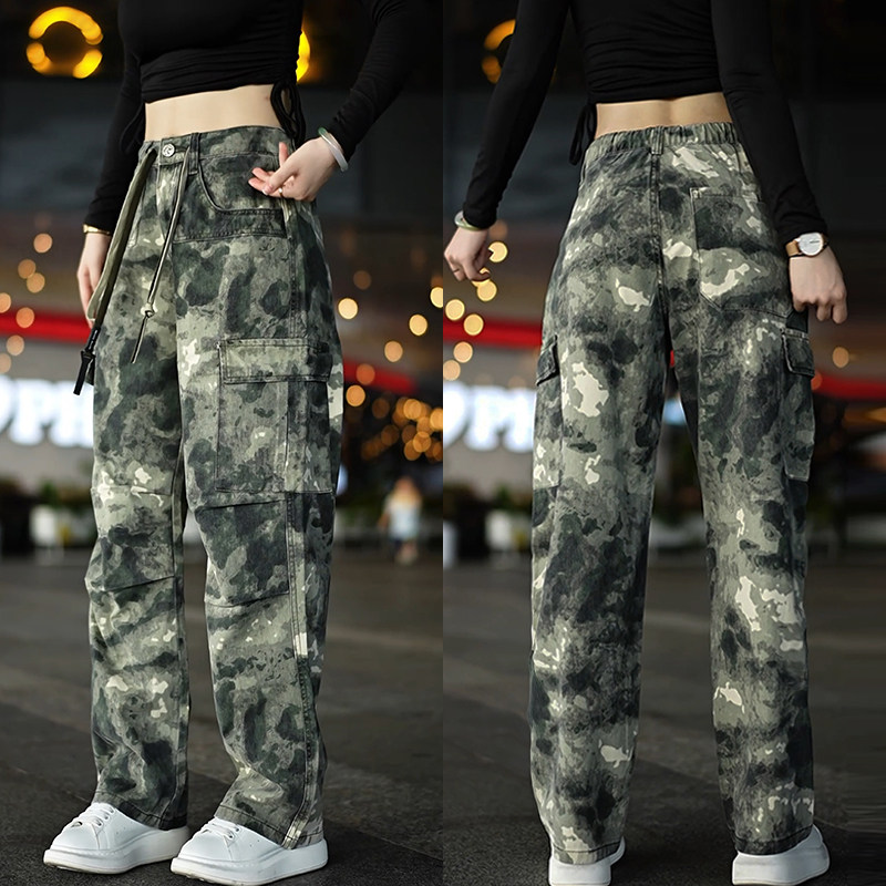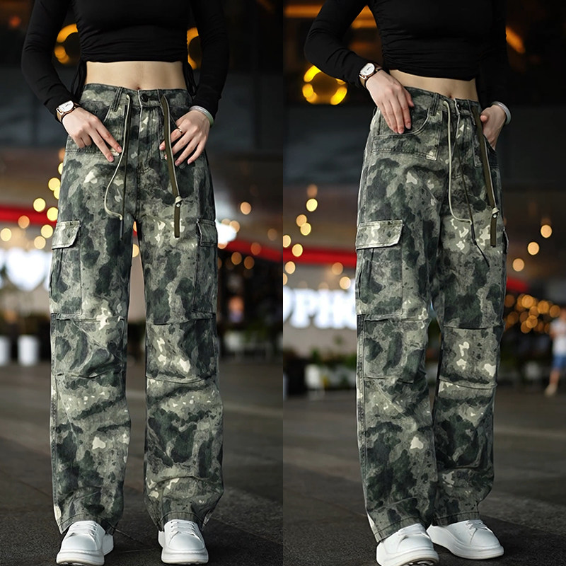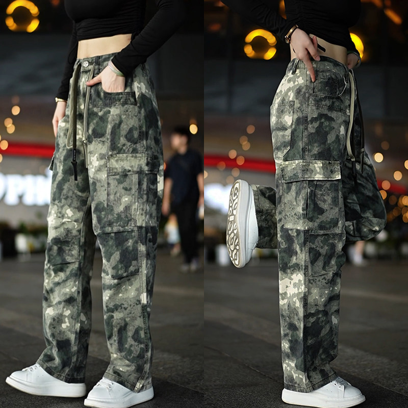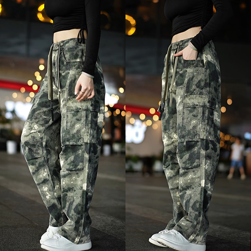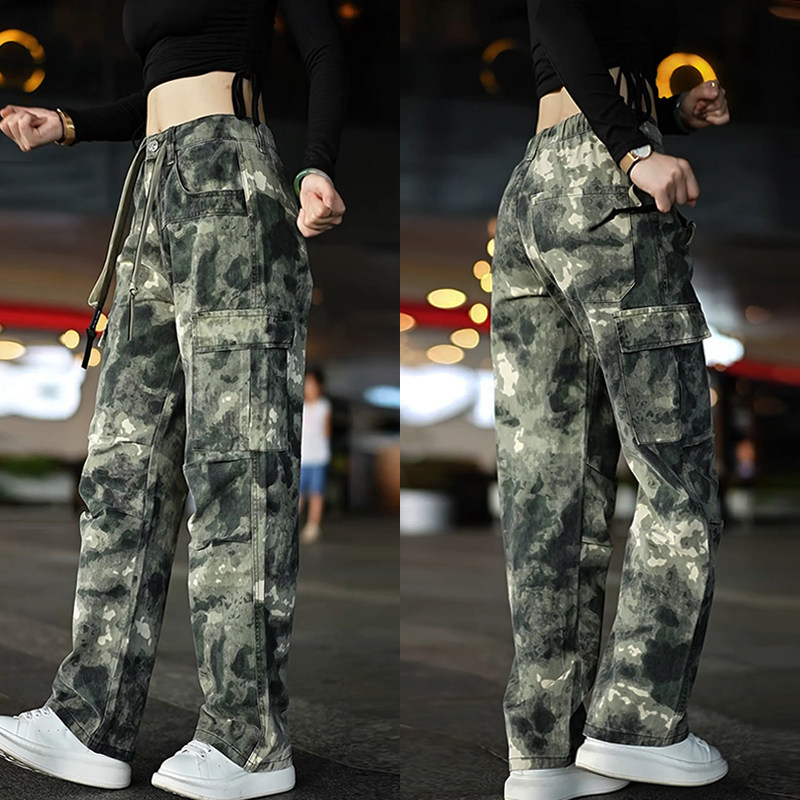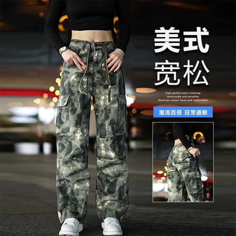 American workwear jeans for men, street style handsome tie-dyed wide-leg pants, high-end retro pure cotton loose straight casual pants