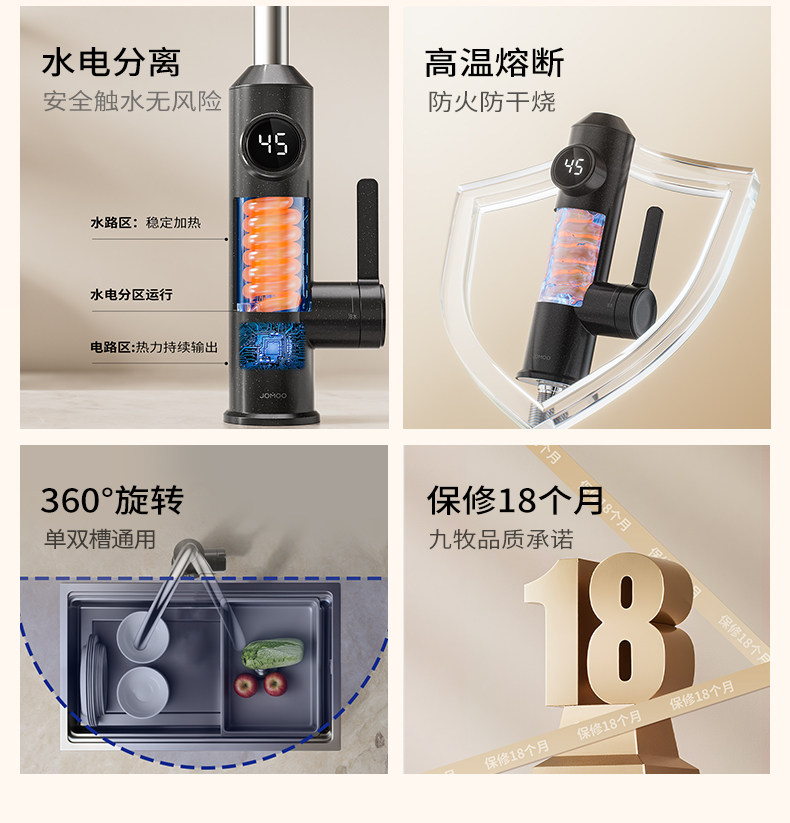 Jomoo Electric Water Heater Faucet, Instant Hot Water, Compact Kitchen Water Heater for Hot and Cold Water