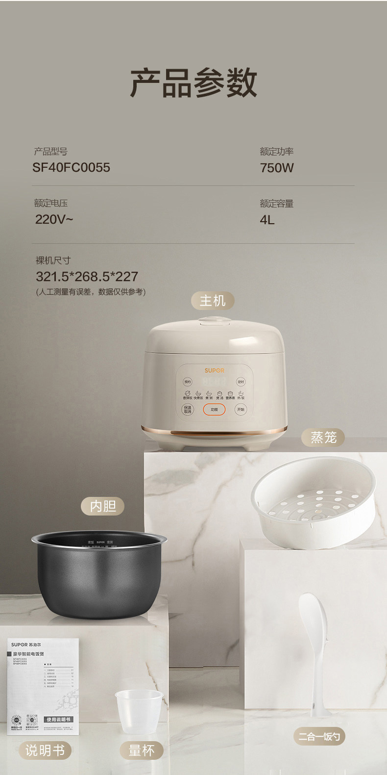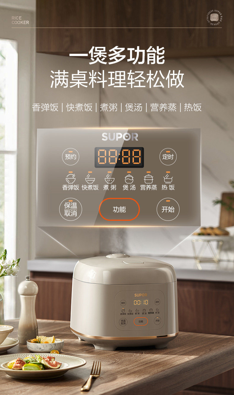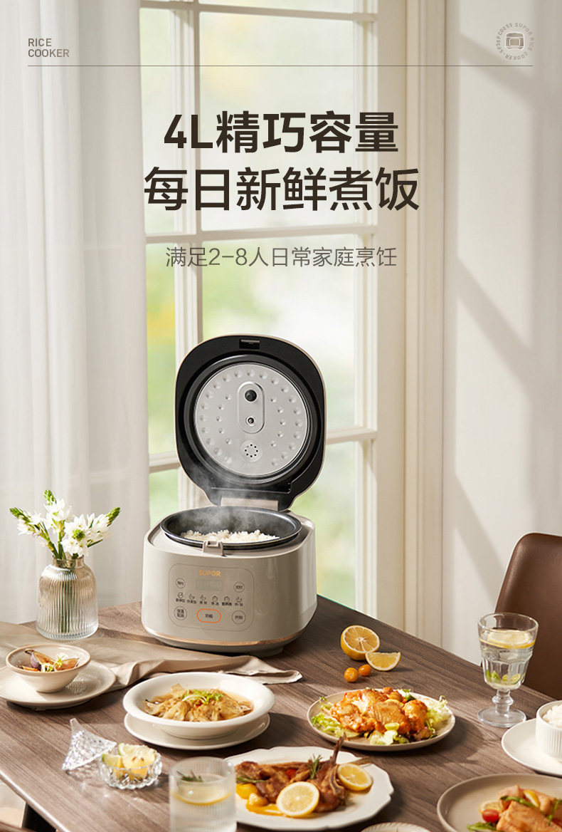 Supor Electric Rice Cooker for Home Use, Small Size, 4-Liter Large Capacity, Suitable for 3-8 People, Multifunctional Smart Rice Cooker, 2025 New Model