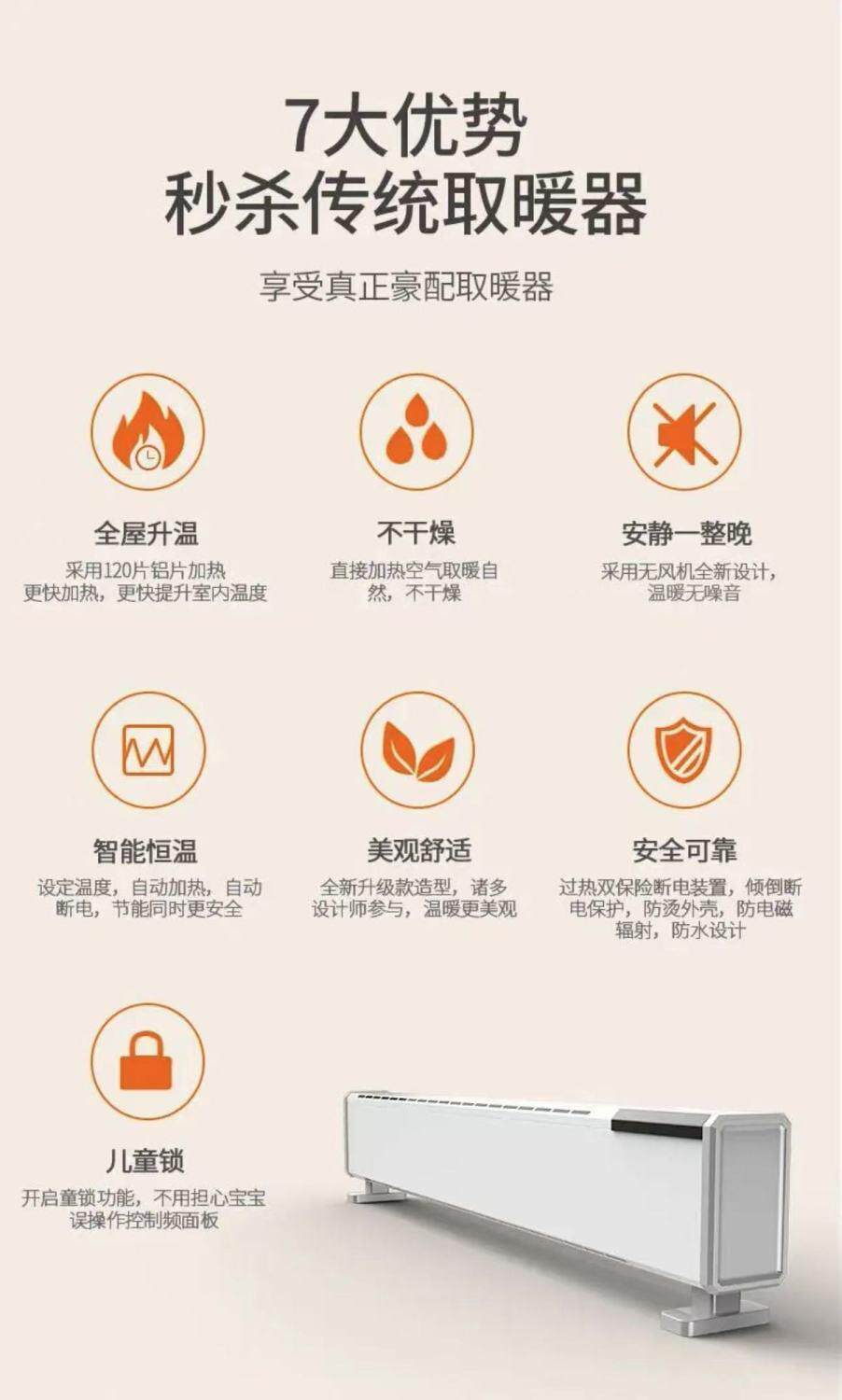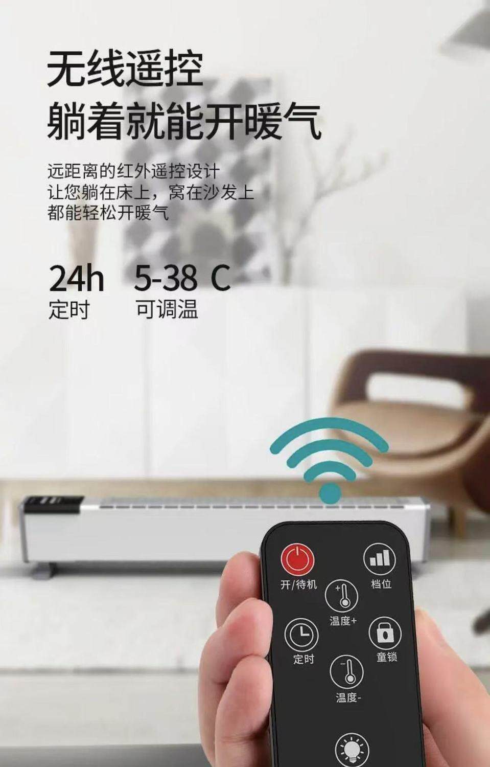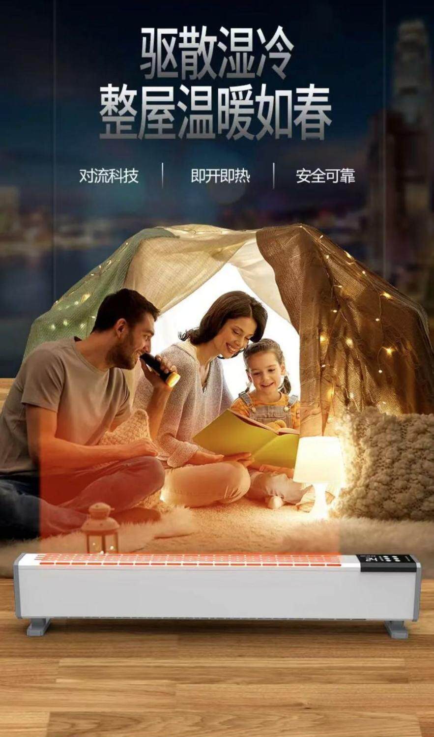 Baseboard Graphene Heater for Home Use, Fast Heating, Energy-Saving, Clearance Sale, Suitable for Bedroom and Bathroom, with Humidifying and Waterproof Features